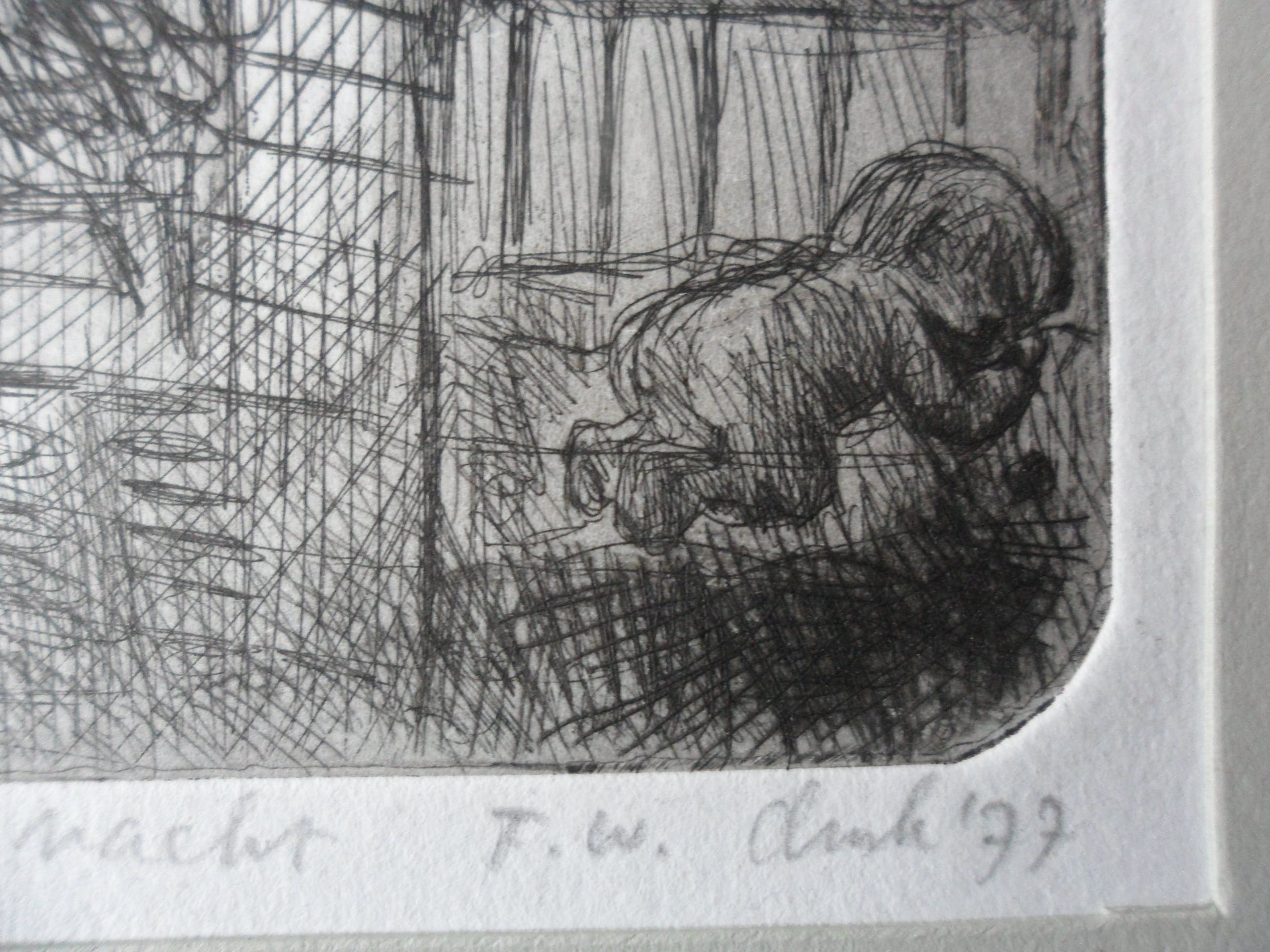 De ets is in potlood gemonogrammeerd 'FW': Frits Lindeman (1945)