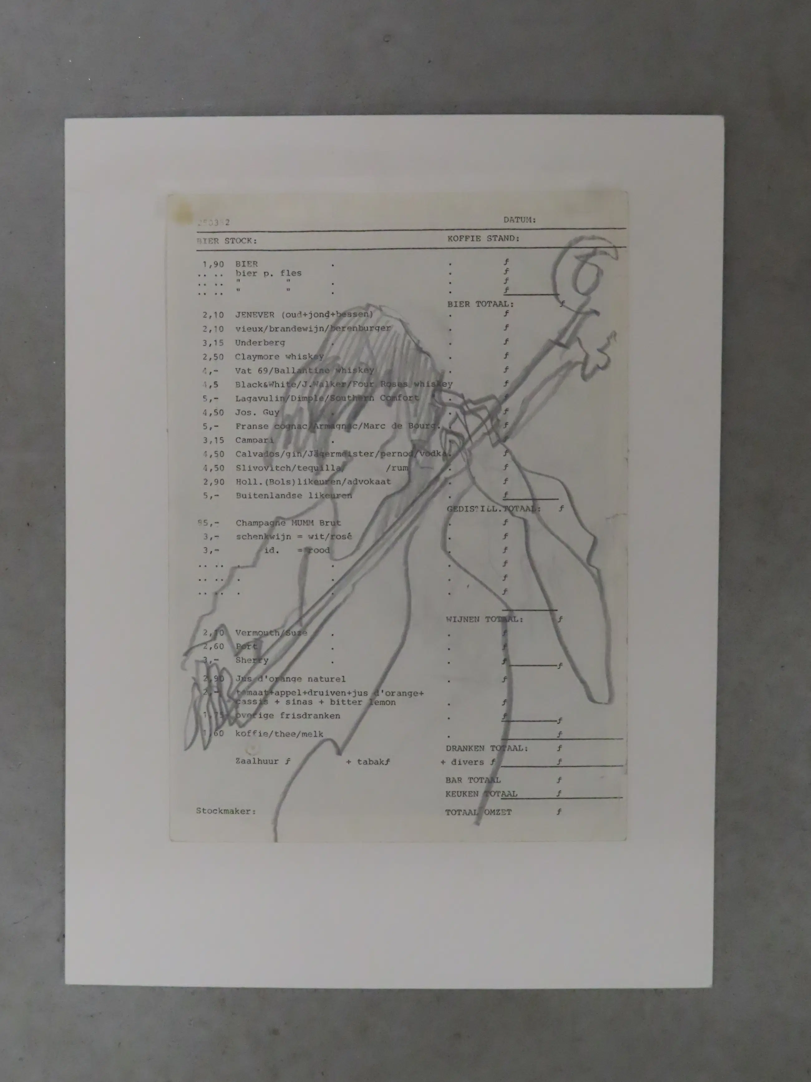 Getekend op de achterzijde van een prijstlijst, met signatuur en opdracht op de passe-partout.