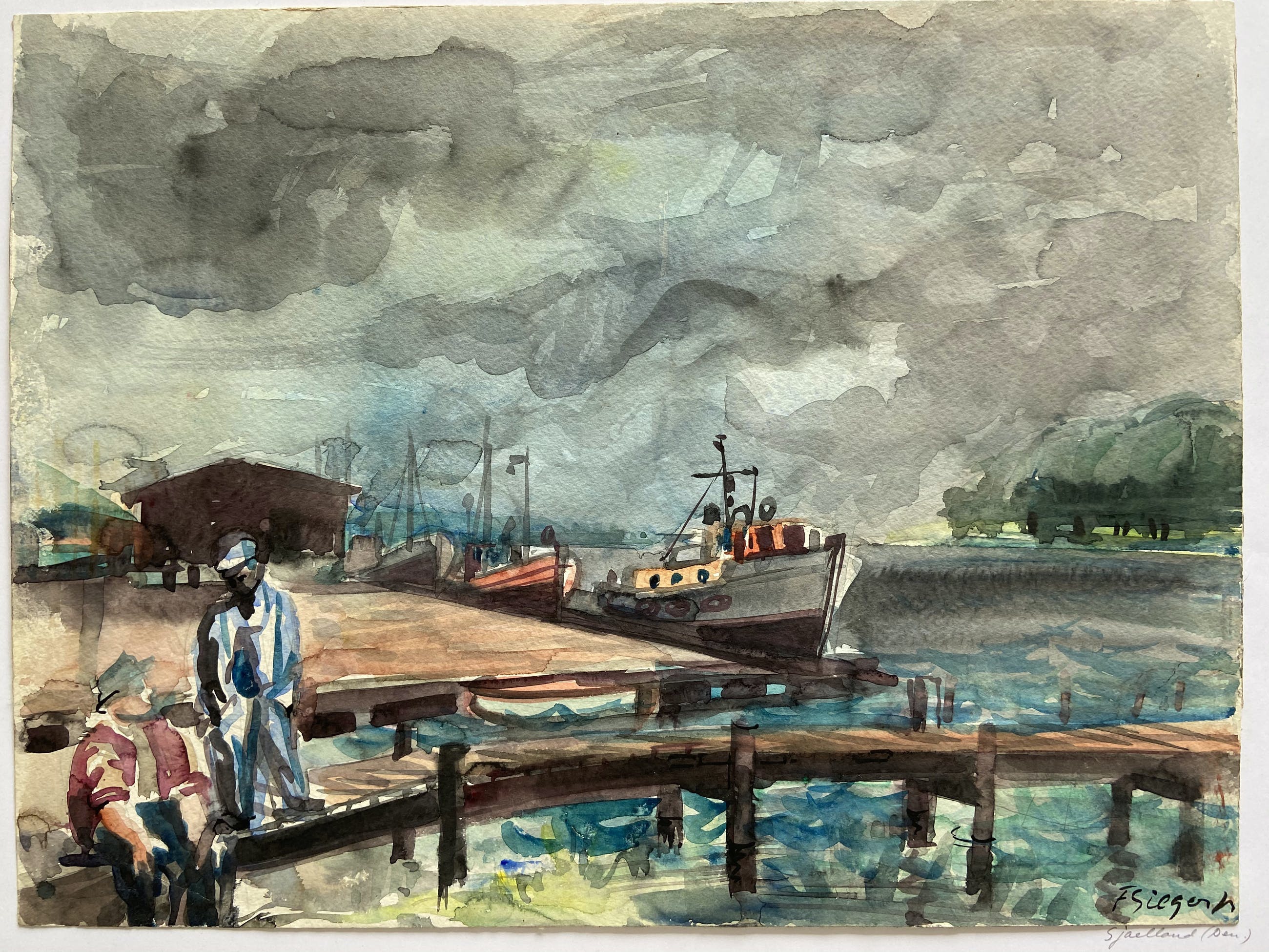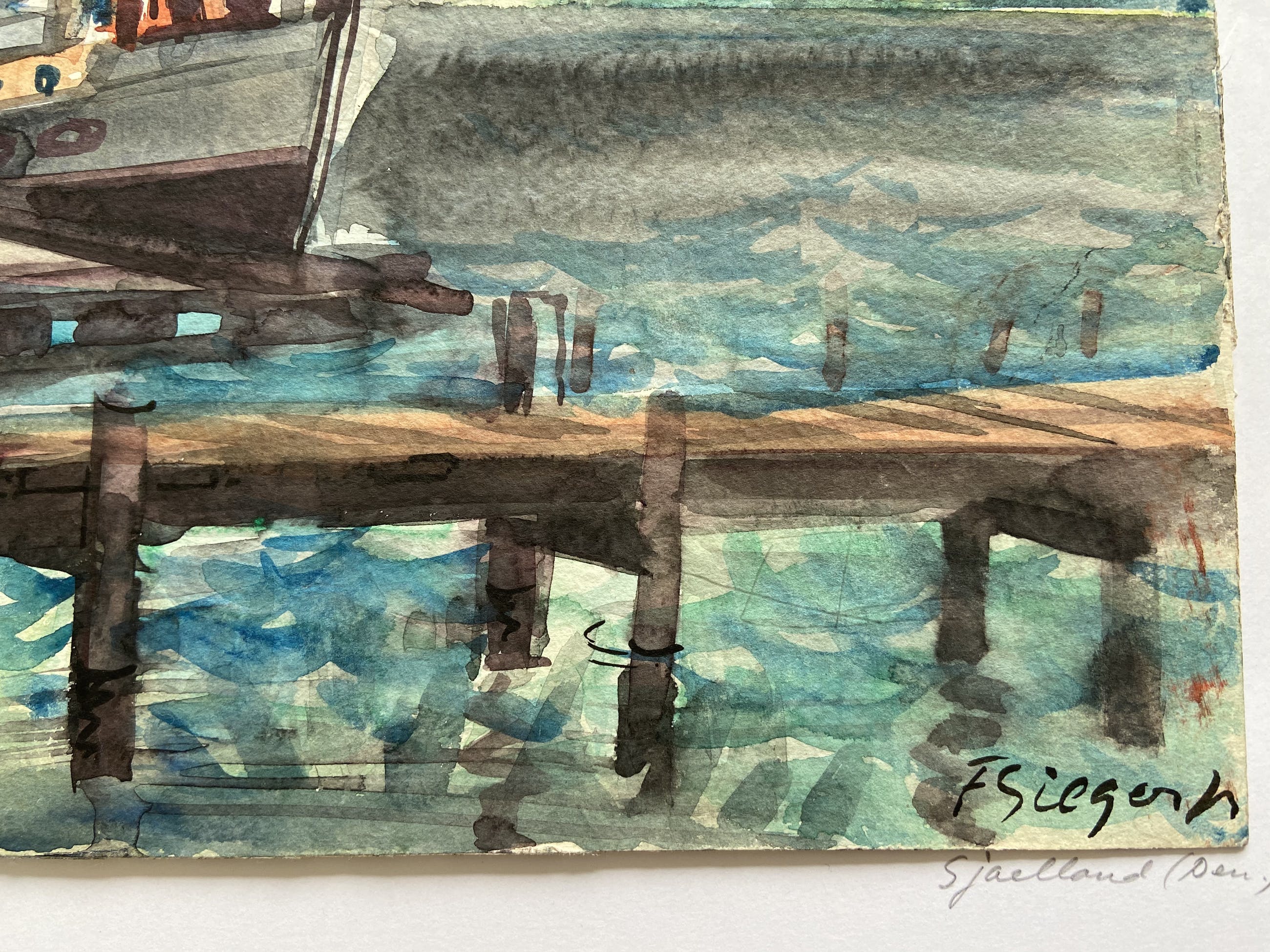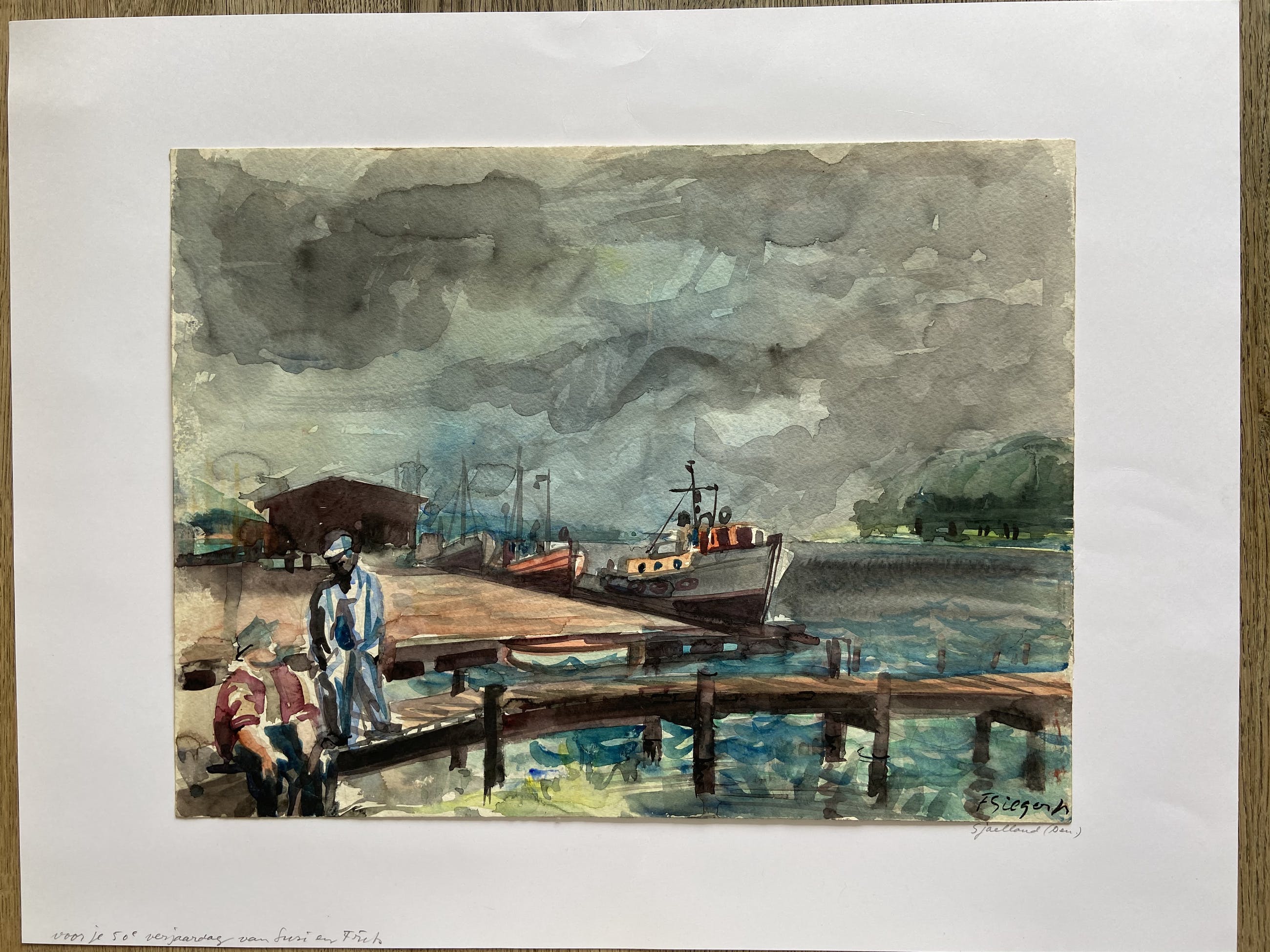 Aquarel van Frits Sieger jr. van Sjaelland in Denemerken. met opdracht: "voor je 50ste verjaardag van Susi en Frits"