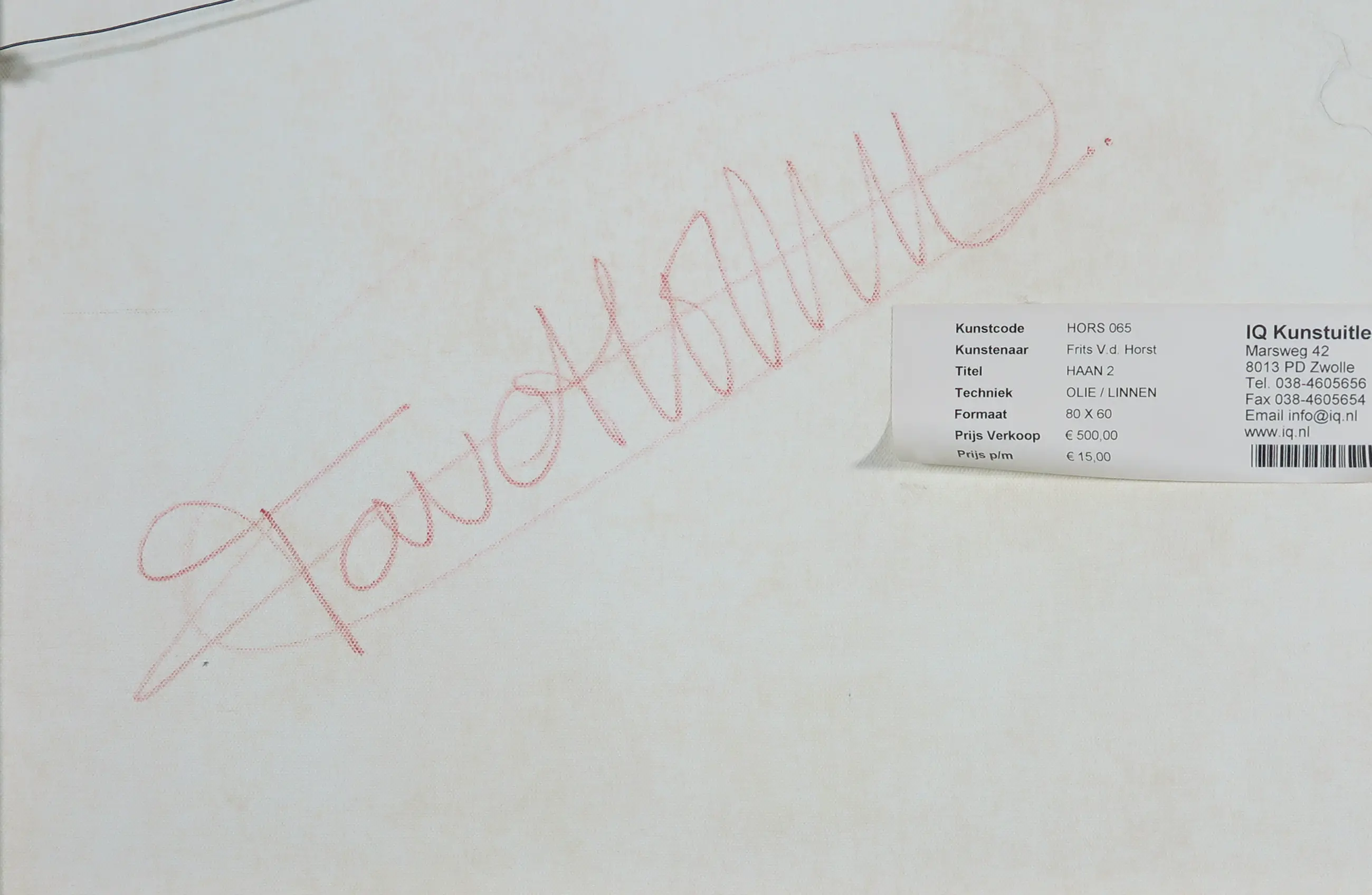 Bezichtigen: De aankoop valt onder de aankoopgarantie van Kunstveiling. Wilt u toch een werk bezichtigen voordat u een bod uitbrengt, dan is dat mogelijk op afspraak op de vestiging van Kunstveiling in Amstelveen (Dinsdag t/m vrijdag tussen 11.00 - 17.15 uur). Neemt u hiervoor contact met ons op.