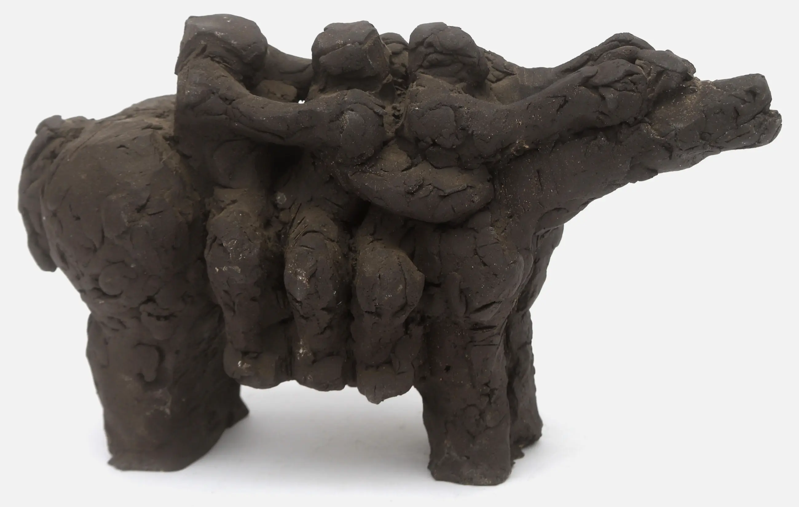Keramieken beeld van Frits van Eeden. Voorstelling van een paard met 3 ruiters. Afmetingen beeld: H16 x b28 x d6cm. Het beeld is niet gesigneerd door de kunstenaar. De authenticiteit van het aangeboden werk wordt volledig gegarandeerd. Een certificaat van echtheid kan, op aanvraag, worden gemaild.