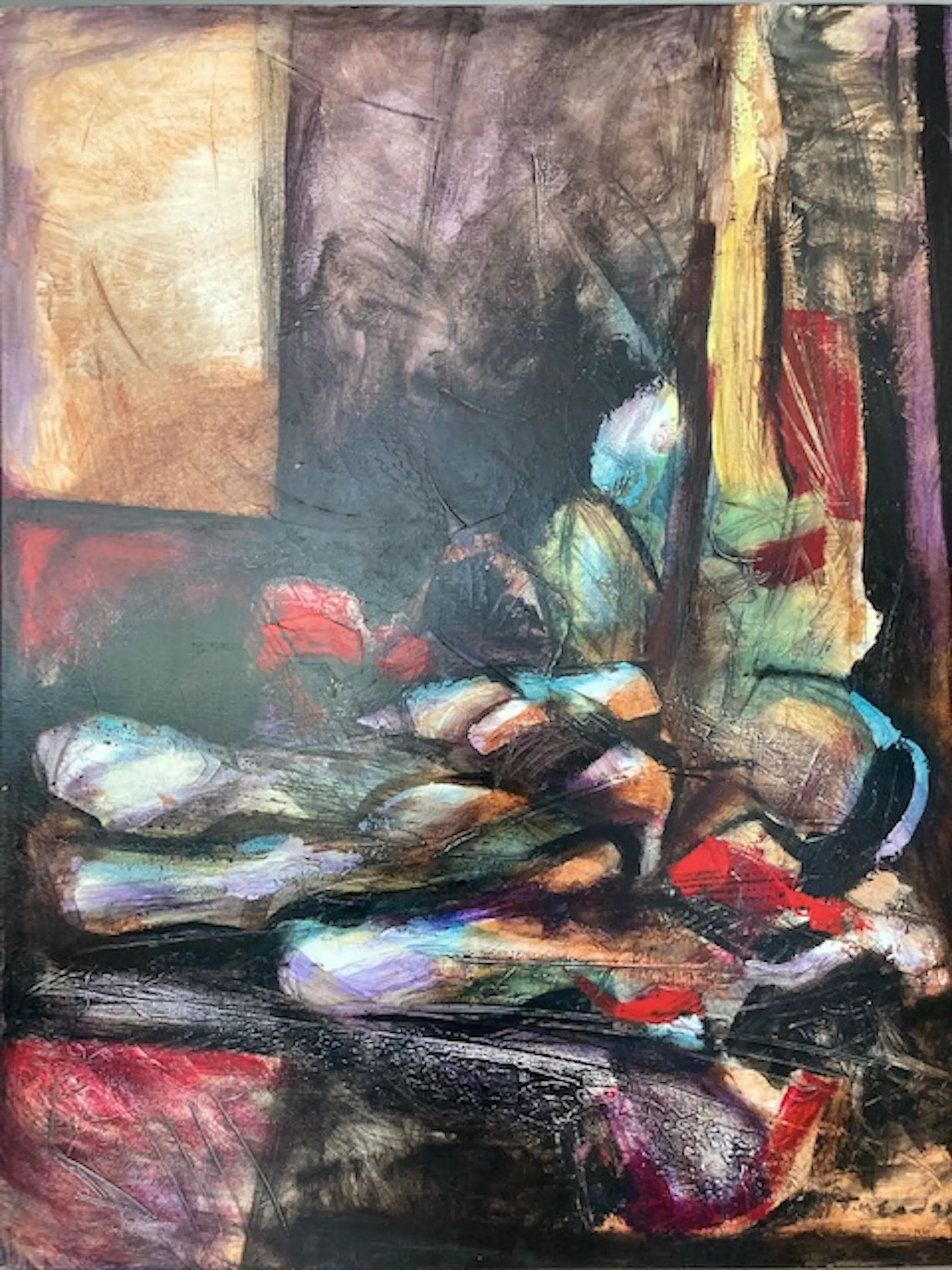 Prachtig origineel kleurrijk werk van Frits van Eeden. Ook zo, zonder in te lijsten, aan de wand te hangen.