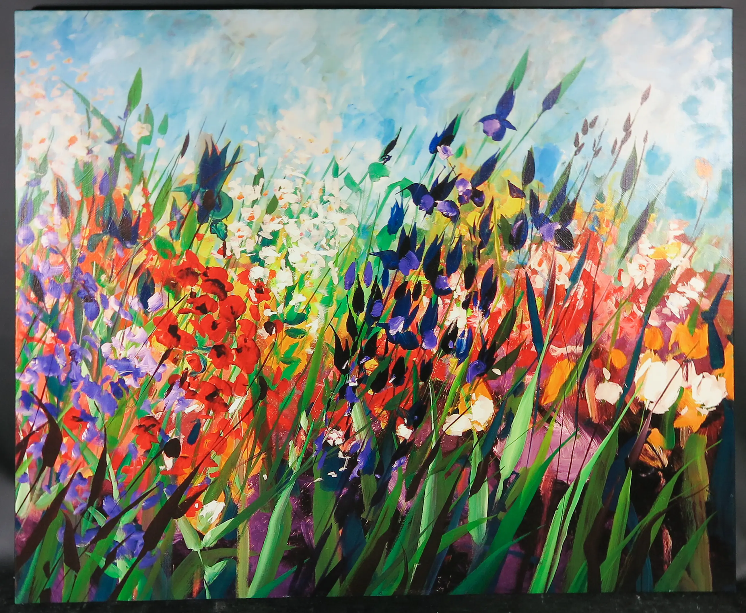 | Wat lichte slijtagesporen aan de randen en hoeken van het canvas. (Zie detailfoto's) | |