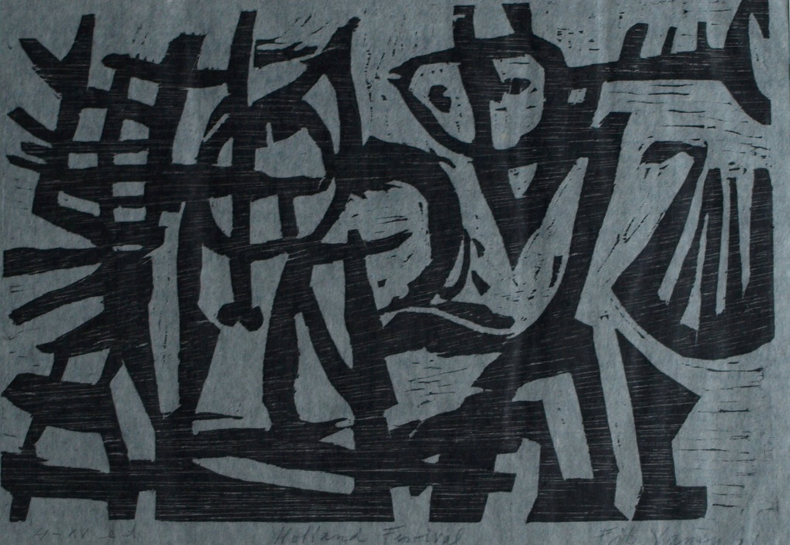 Een werk uit 1961 van de Nederlandse kunstenaar Frits Vanèn (1933-1991) met een voorstelling van het ‘Holland Festival’.