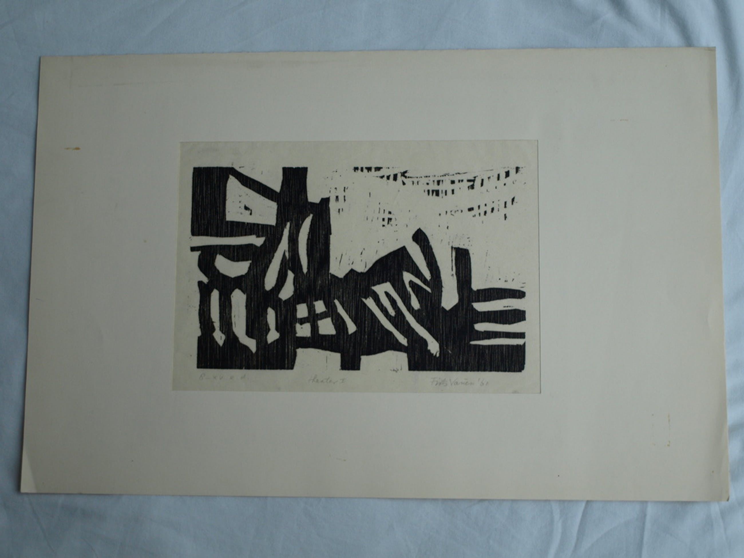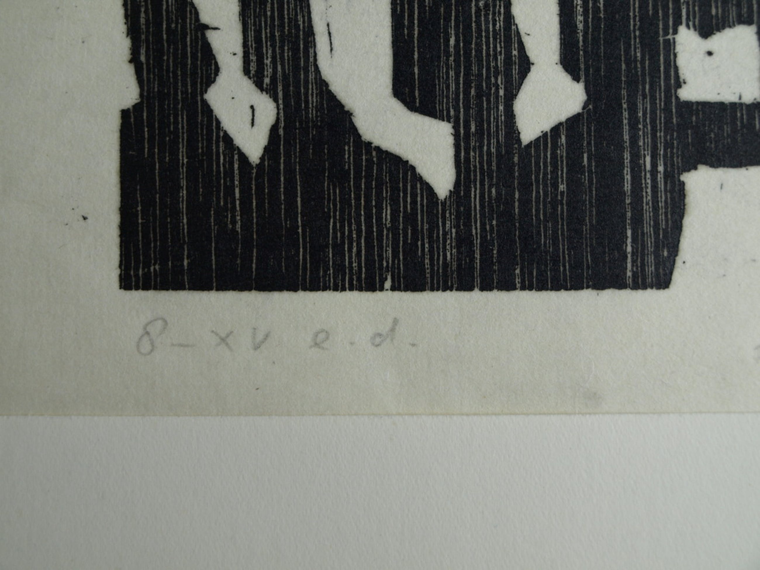 -Afgedrukt op ‘Japans’ papier in een oplage van 15 exemplaren. Dit is nr 8. Een eigen druk van de kunstenaar.