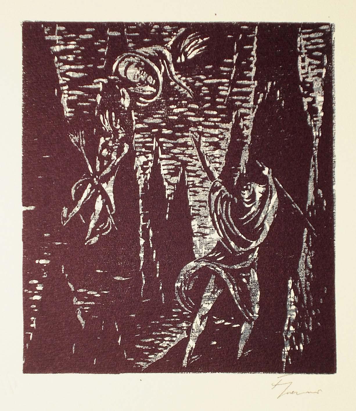 Technik: Linolschnitt, 2-farbiger Handpressendruck