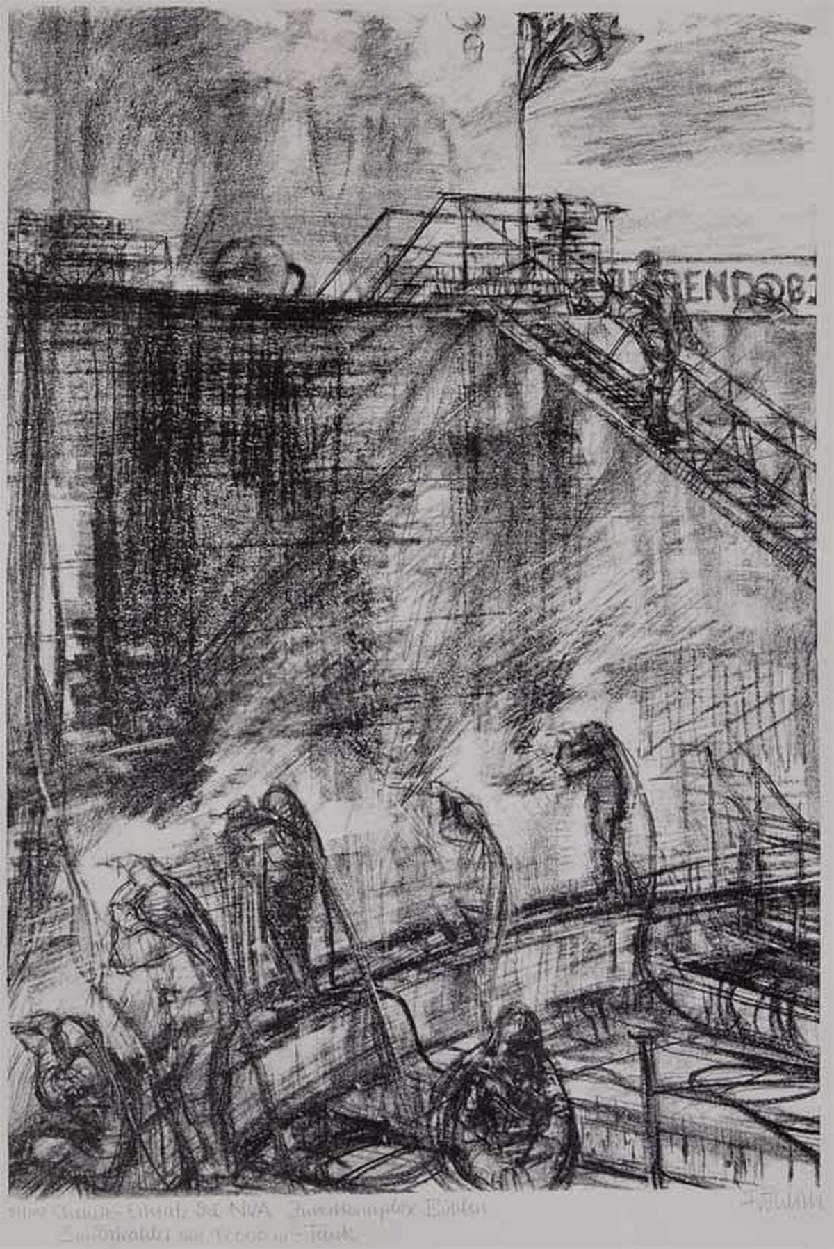 Chemieeinsatz der NVA Investkomplex Böhlen-Sandstrahlen am 12.000 m³ Tank- Der ehemaligen DDR.