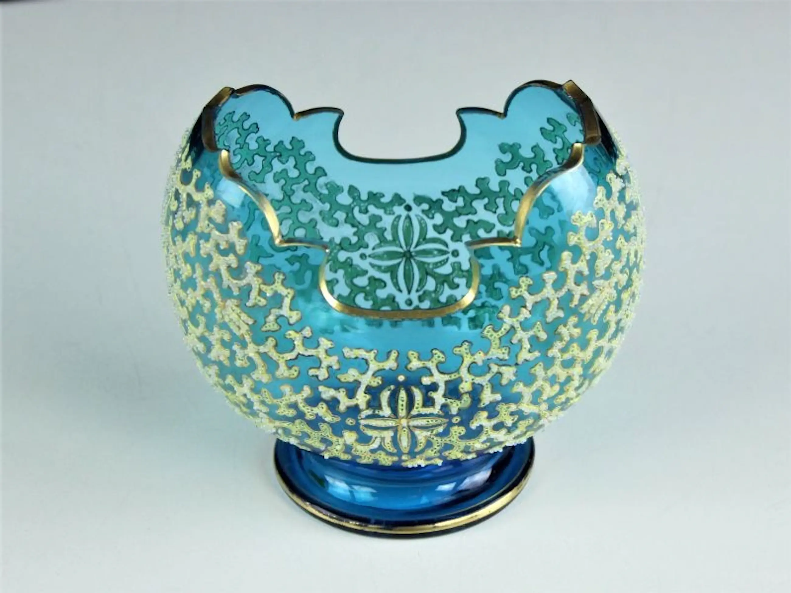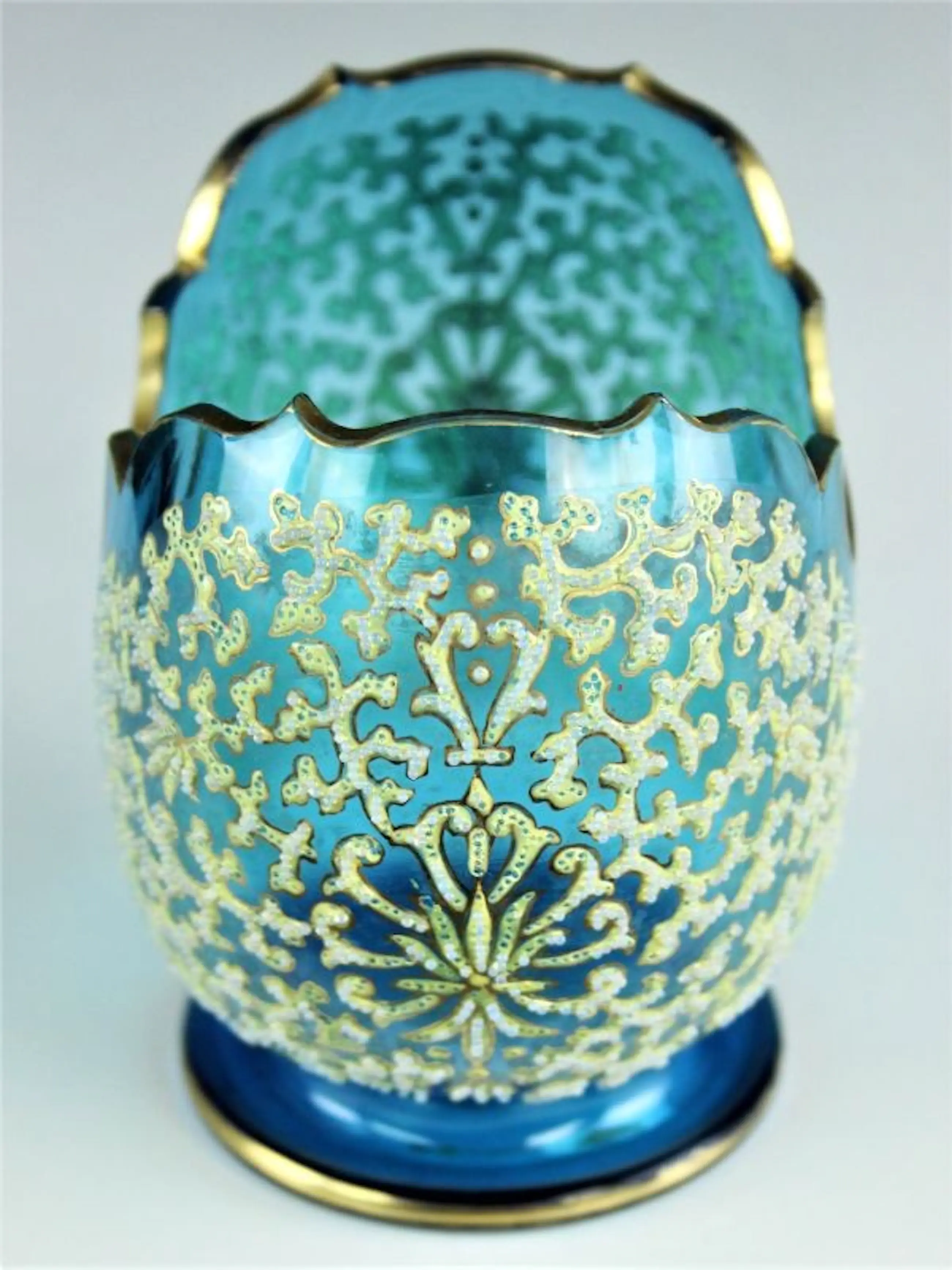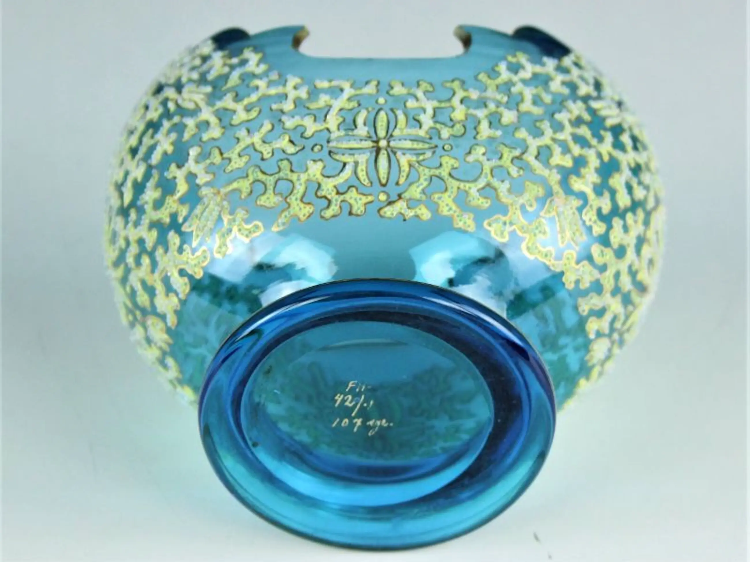 Een prachtig werk in perfecte conditie. Blauw glass ingelegd met goud