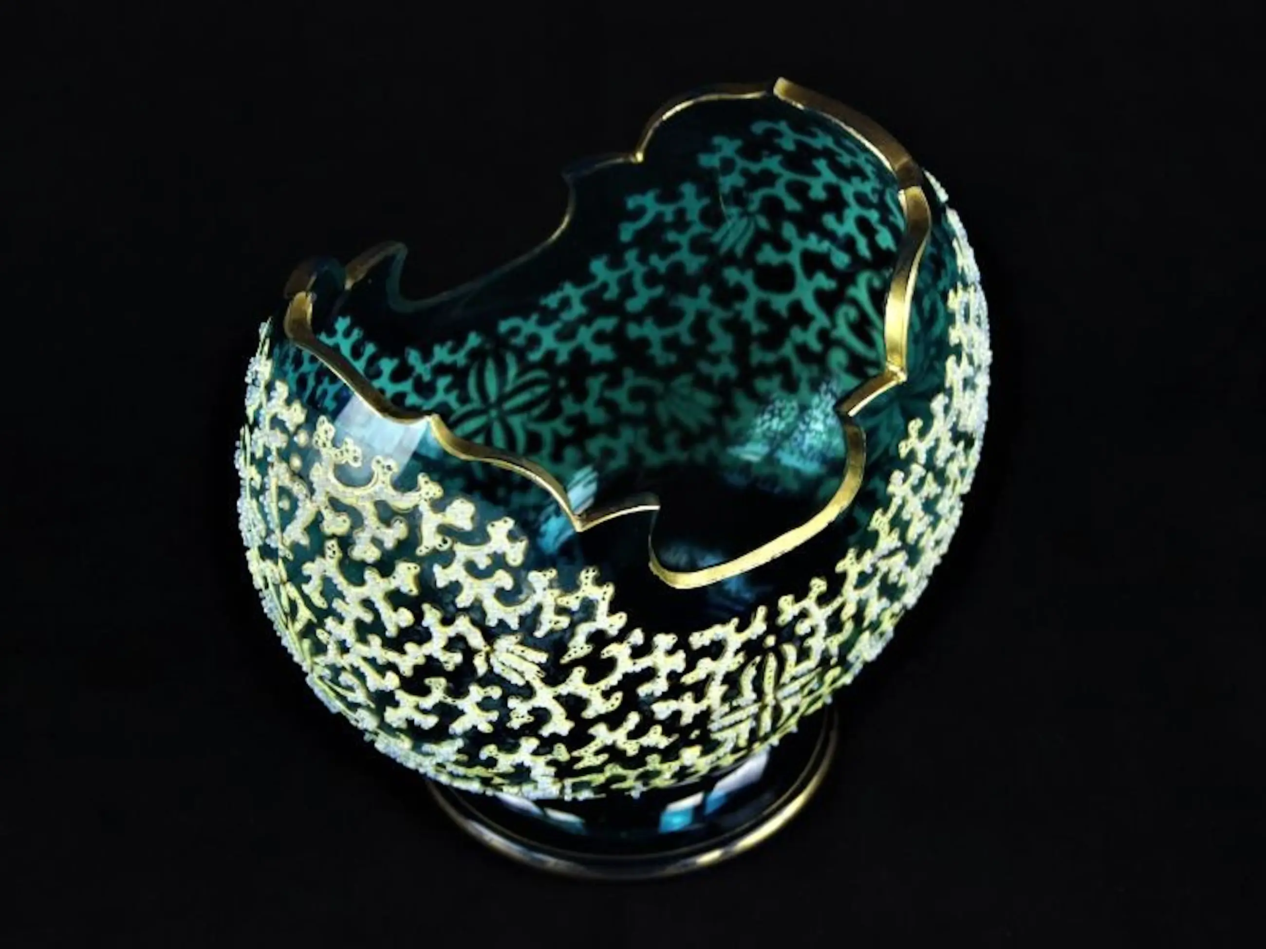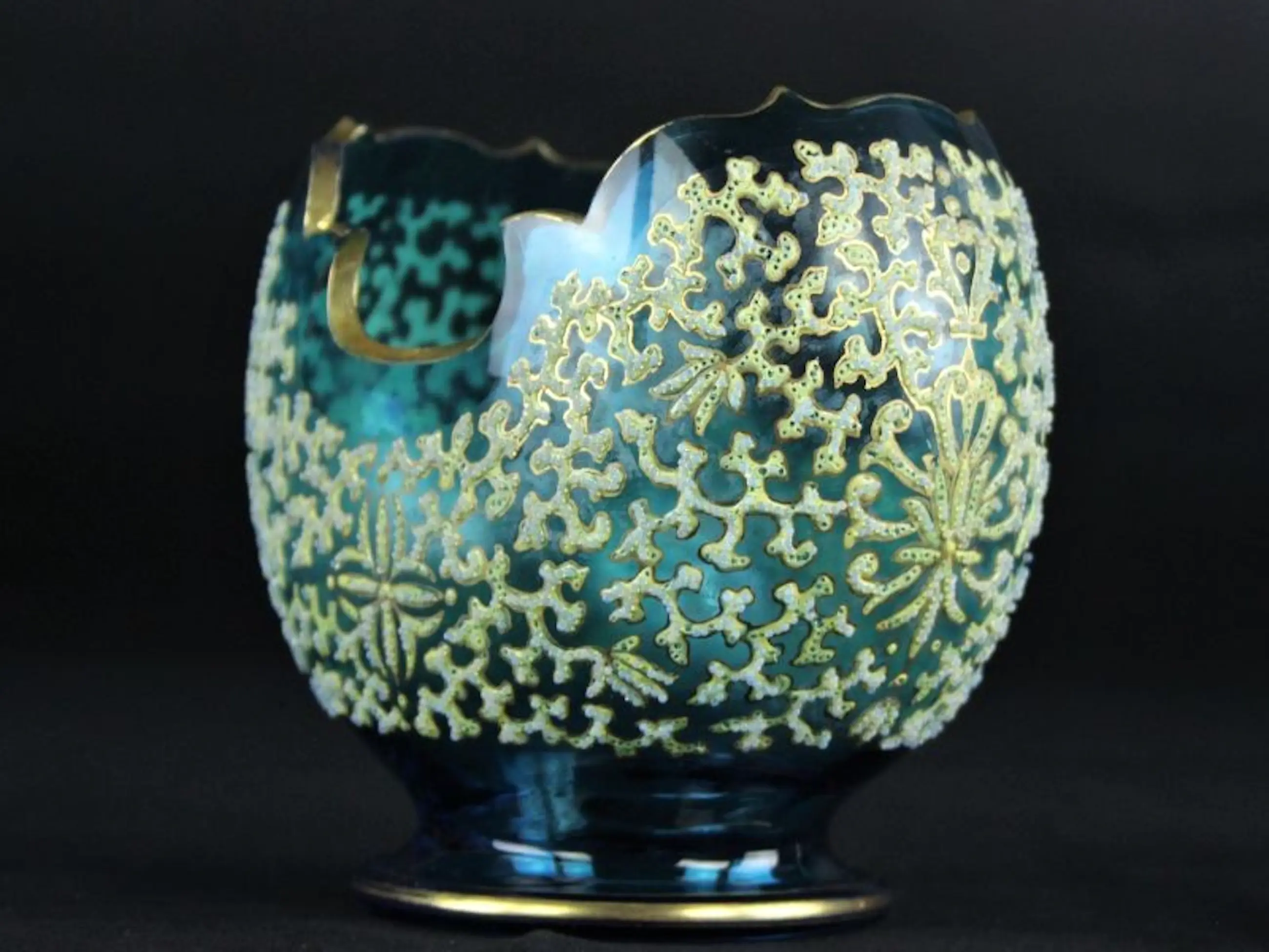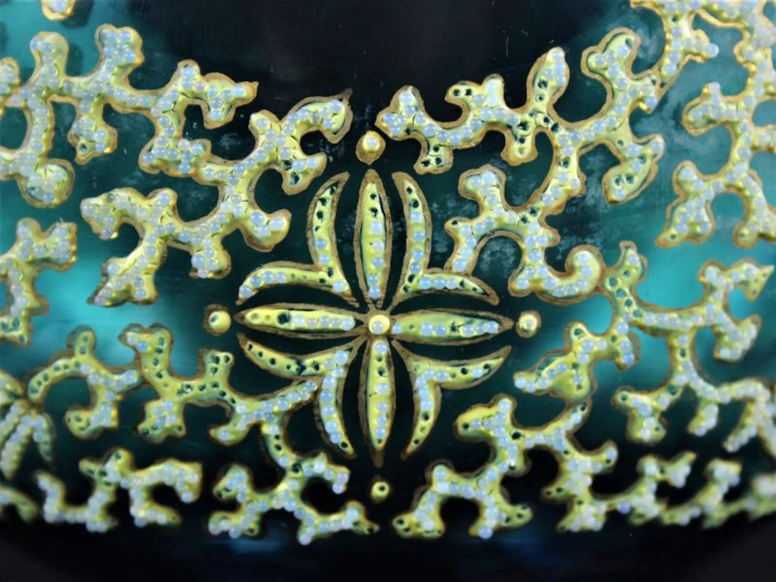 Een prachtig werk in perfecte conditie. Blauw glass ingelegd met goud
