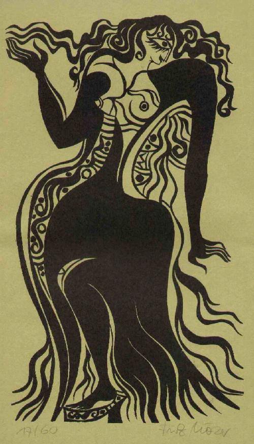 Fritz Möser - HALBAKT - Erotischer Handsignierter OriginalLinolschnitt - Handabzug des Künstlers aus d.SUDETENLAND - Verkocht