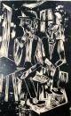 Fritz Schaefler (1888/89-1954). Zwei sitzende Bauern. Holzschnitt.