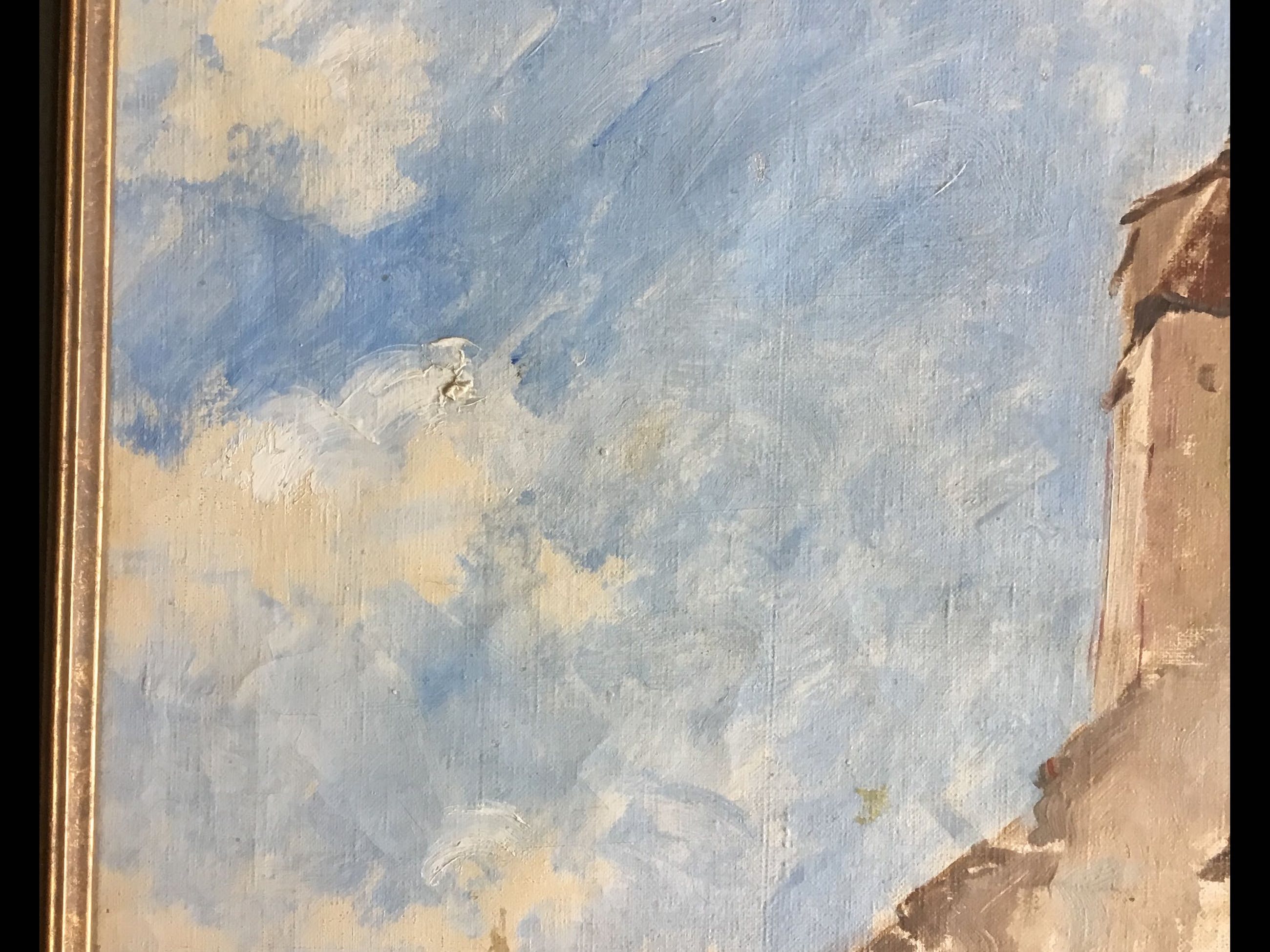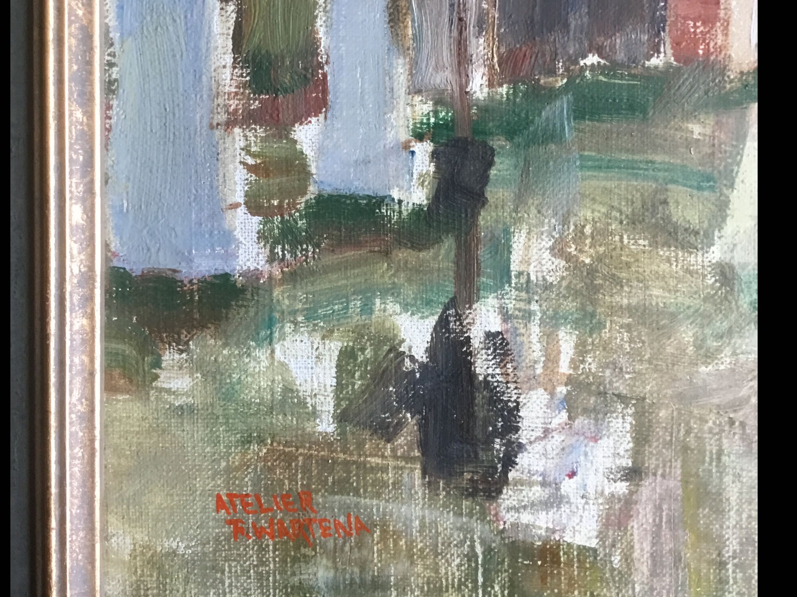 Mooi olieverf schilderij. Ik denk dat het een kerkje is in de buurt van Laren, omdat Froukje Wartema daar gewoond en gewerkt en het is ingelijst door een firma in Laren.