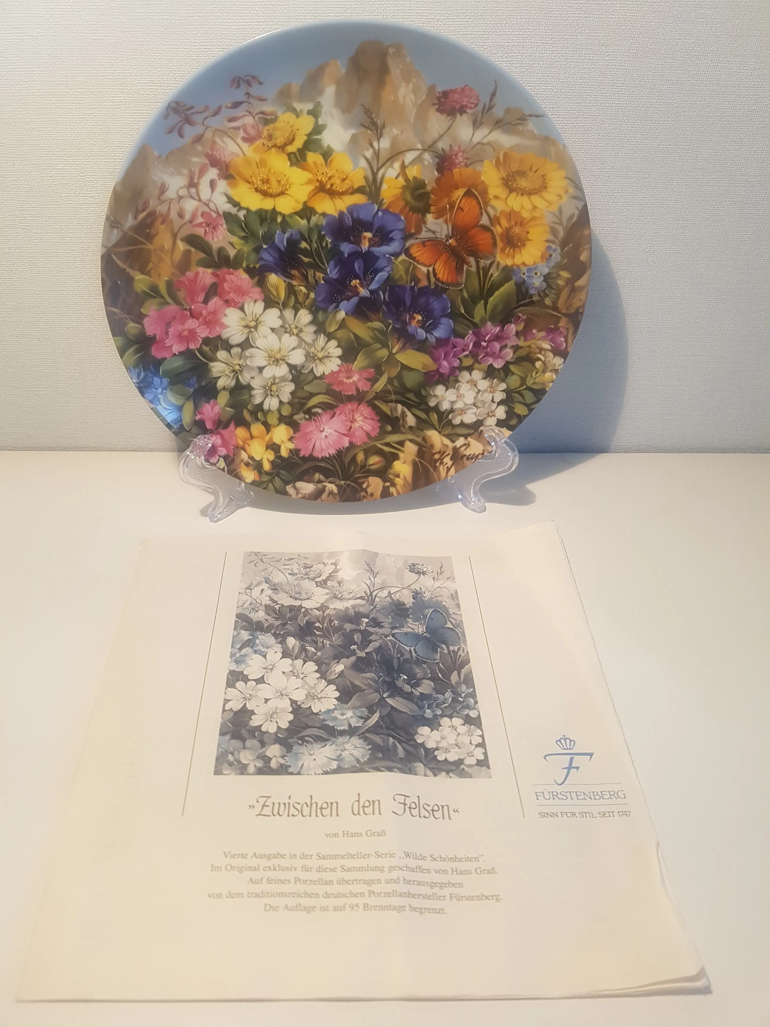 Deze serie 5 sierbordjes van 19 cm rond is in een beperkte uitgave uit gebracht door Furstenberg. geschilderd door Hans Graft.