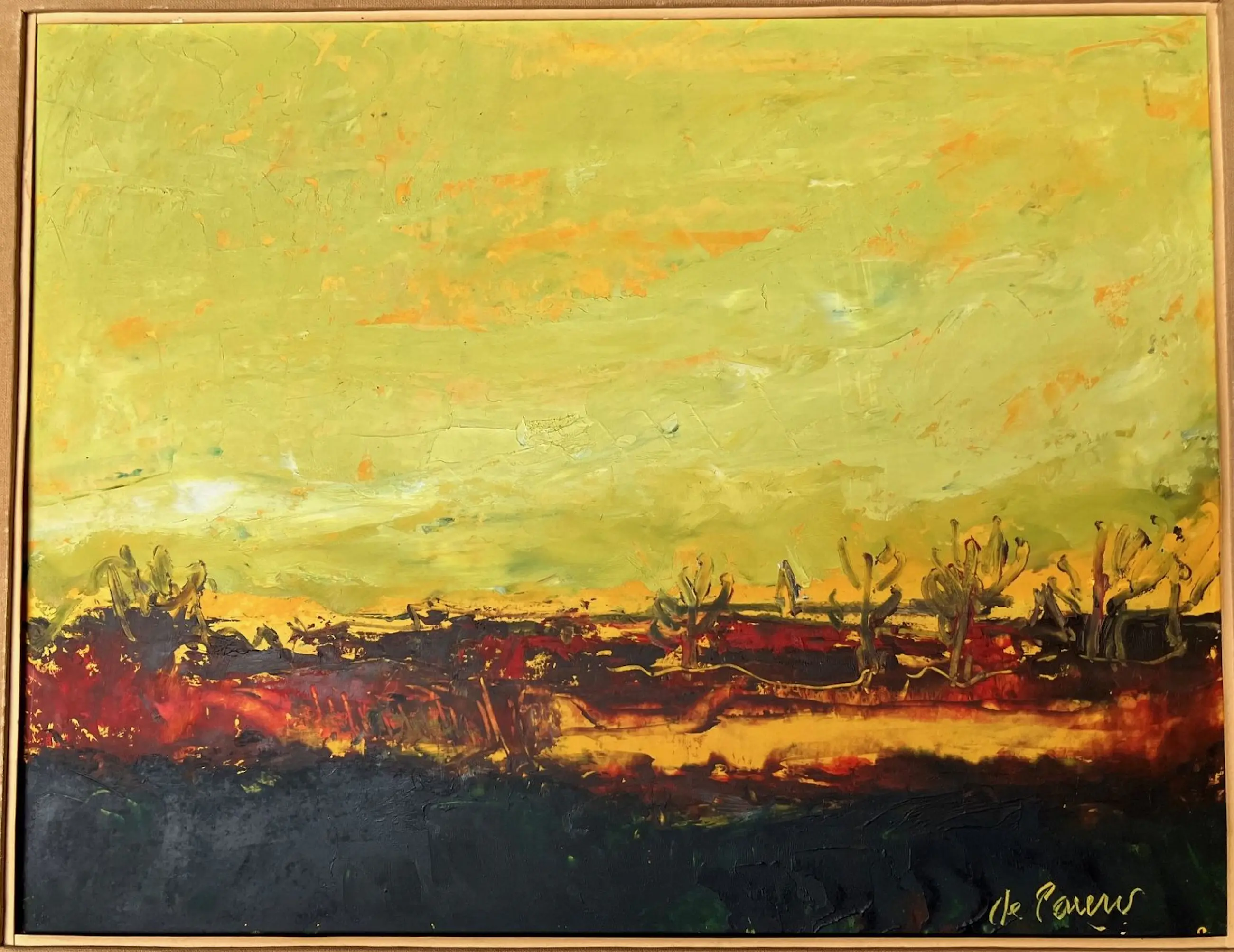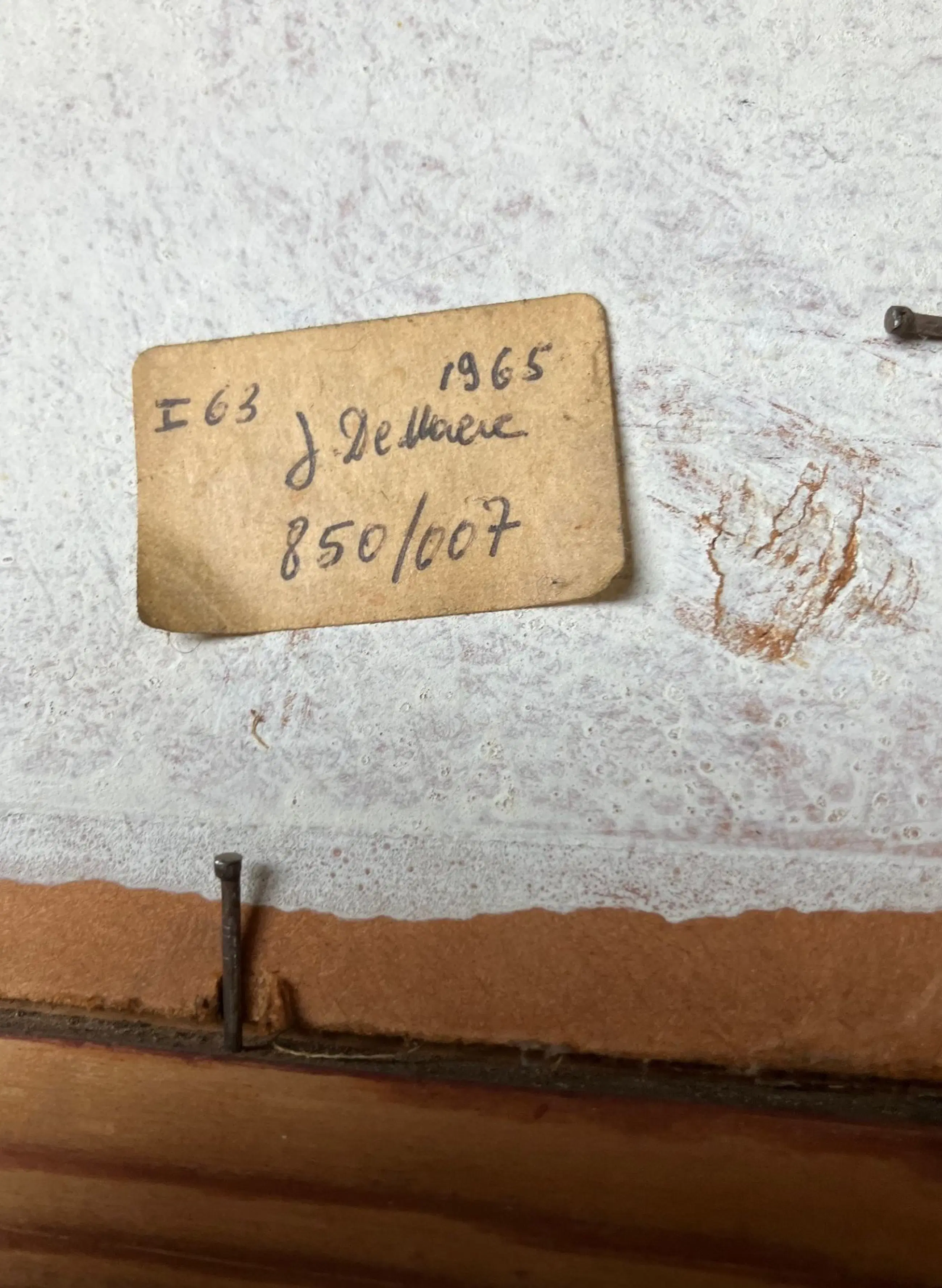 Kunstwerk in uitstekende conditie - het kader is beschadigd en verouderd - heeft een nummer van Galerie Jan de Maere met 1965 op etiket. Kader wordt niet meegeleverd ingeval van postverzending.