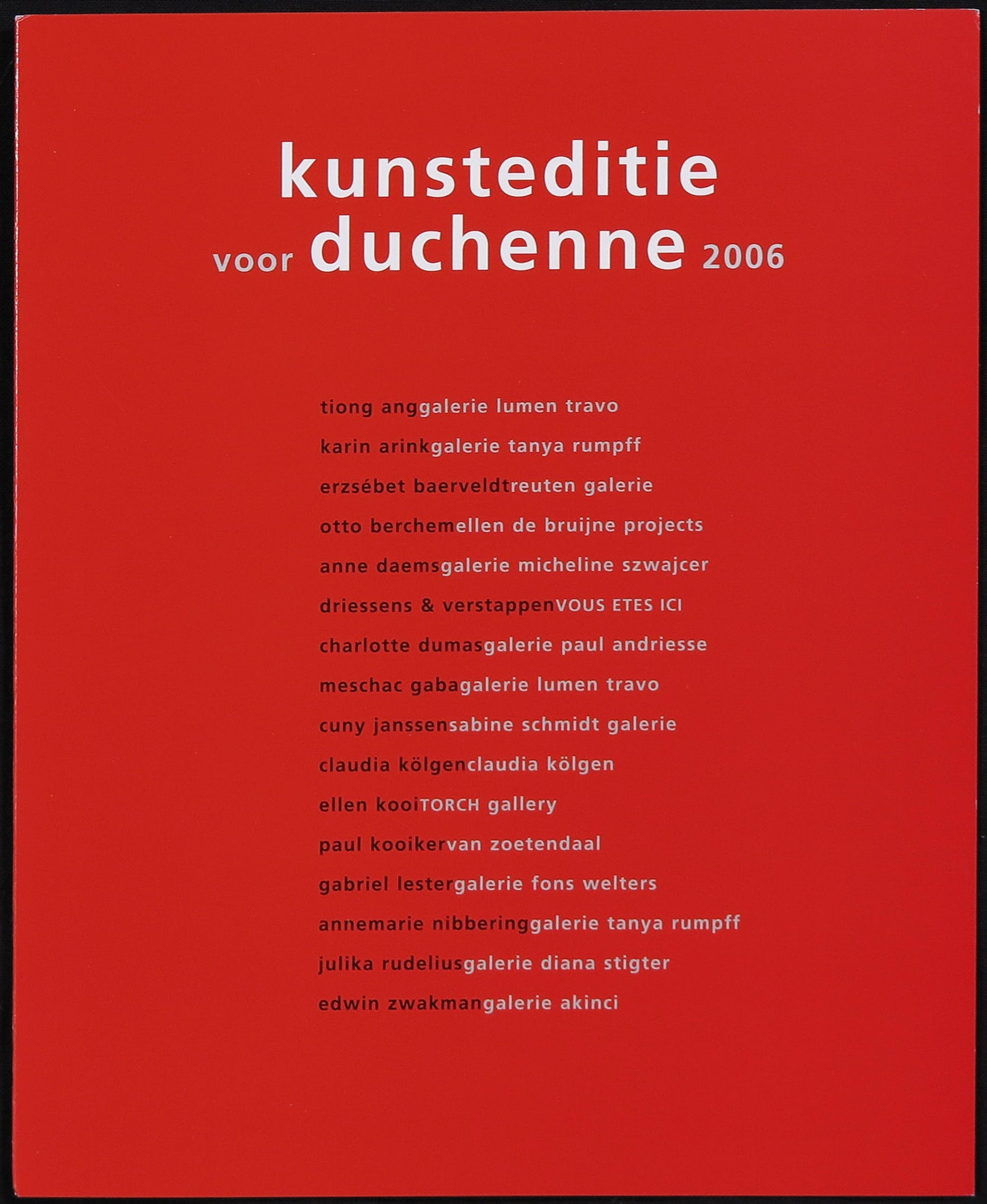 Voor de 'Kunsteditie voor Duchenne’ stelden zestien kunstenaars en hun galeries werk beschikbaar t.b.v. steun aan het wetenschappelijk onderzoek naar de ziekte van Duchenne. Dat resulteerde in een map fotowerken in beperkte oplage met bijdragen van Tiong Ang, Karin Arink, Erzsébet Baerveld, Otto Berchem, Anne Daems, Driessen & Verstappen, Charlotte Dumas, Meschac Gaba, Cuny Janssen, Claudia Kölgen, Ellen Kooi, Paul Kooiker, Gabriel Lester, Annemarie Nibbering, Julika Rudelius en Edwin Zwakman. Alle bijdragende kunstenaars waren op dat moment verbonden aan de Rijksacademie en werden geselecteerd door Hendrik Driesen, directeur van Museum De Pont in Tilburg.