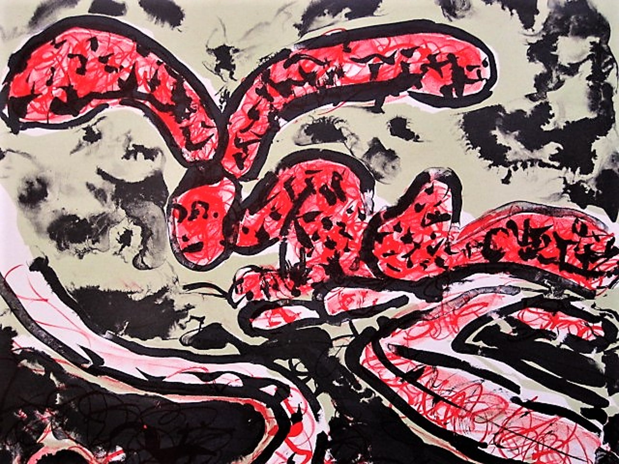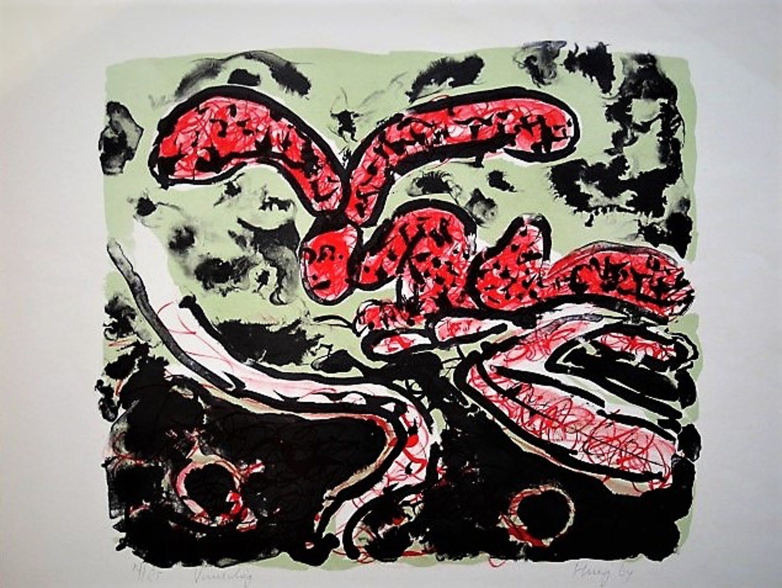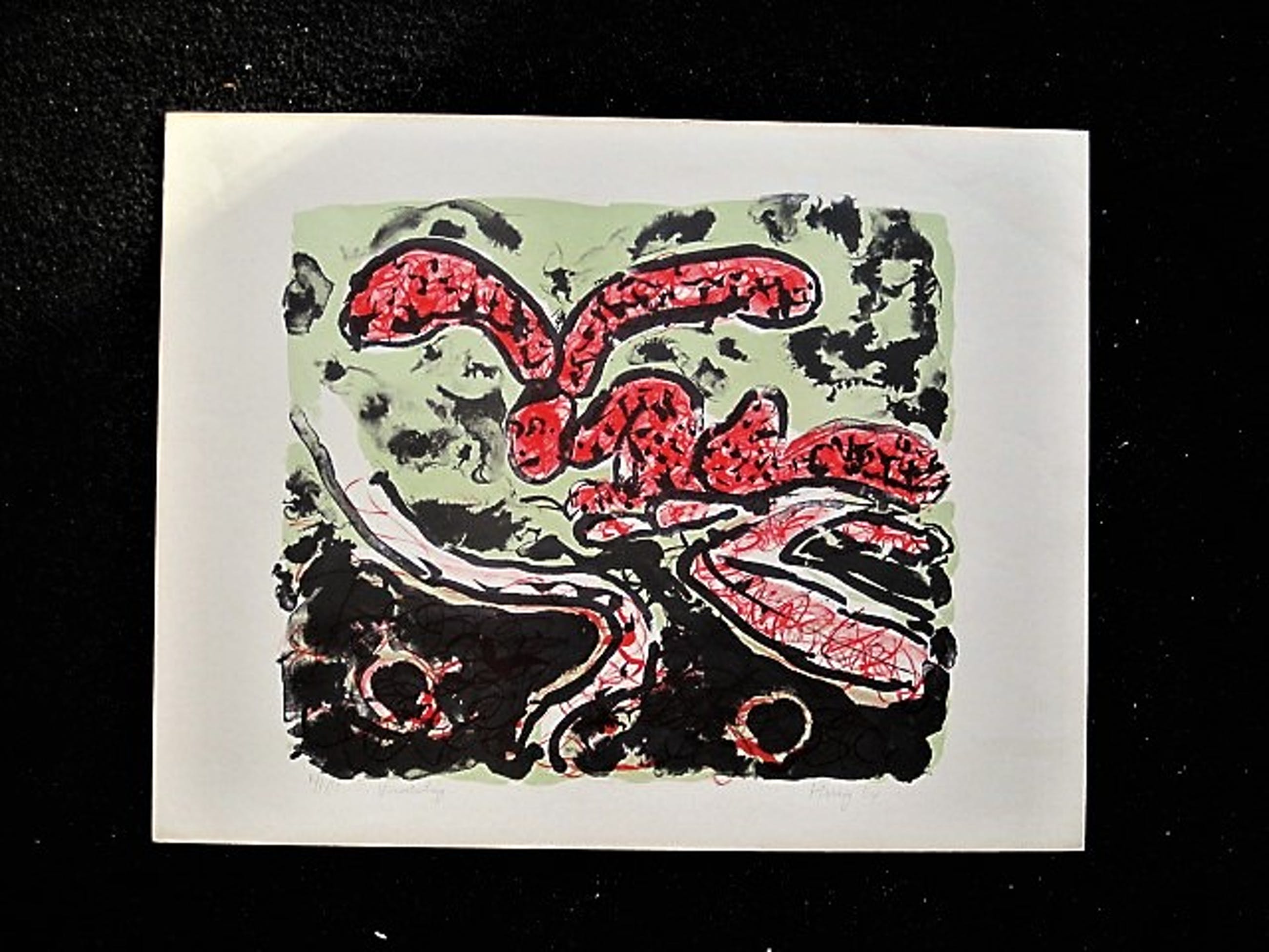 Gabriëlle Huig - Vroege (1964) Figuratieve "Rietveld Academie" Litho "Vuurvlieg" gesigneerd - Verkocht