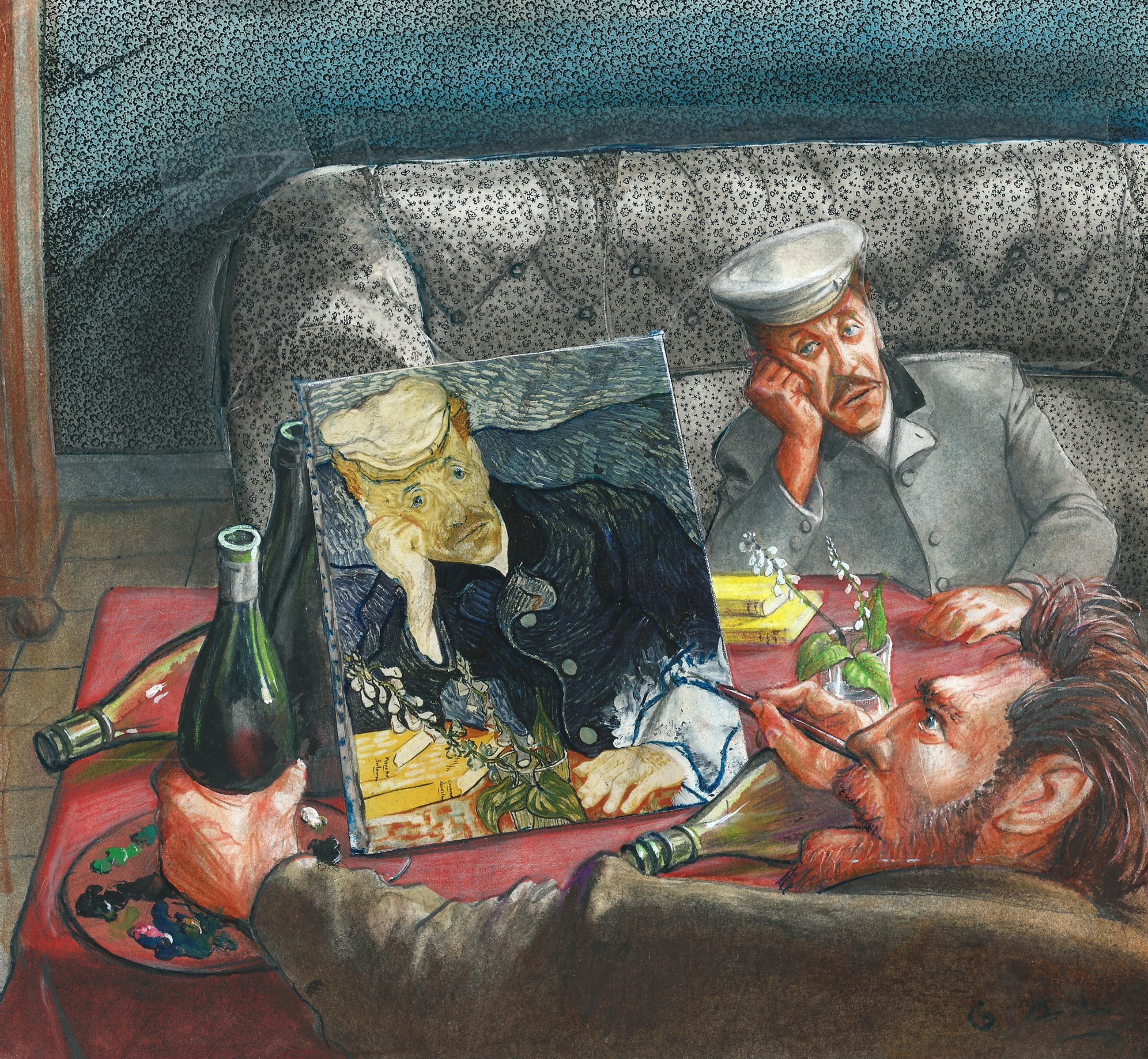 prent van de Belgische kunstenaar Gerard Alsteens / GAL die veel covers maakte voor het blad HUMO. Origineel fraai werk.