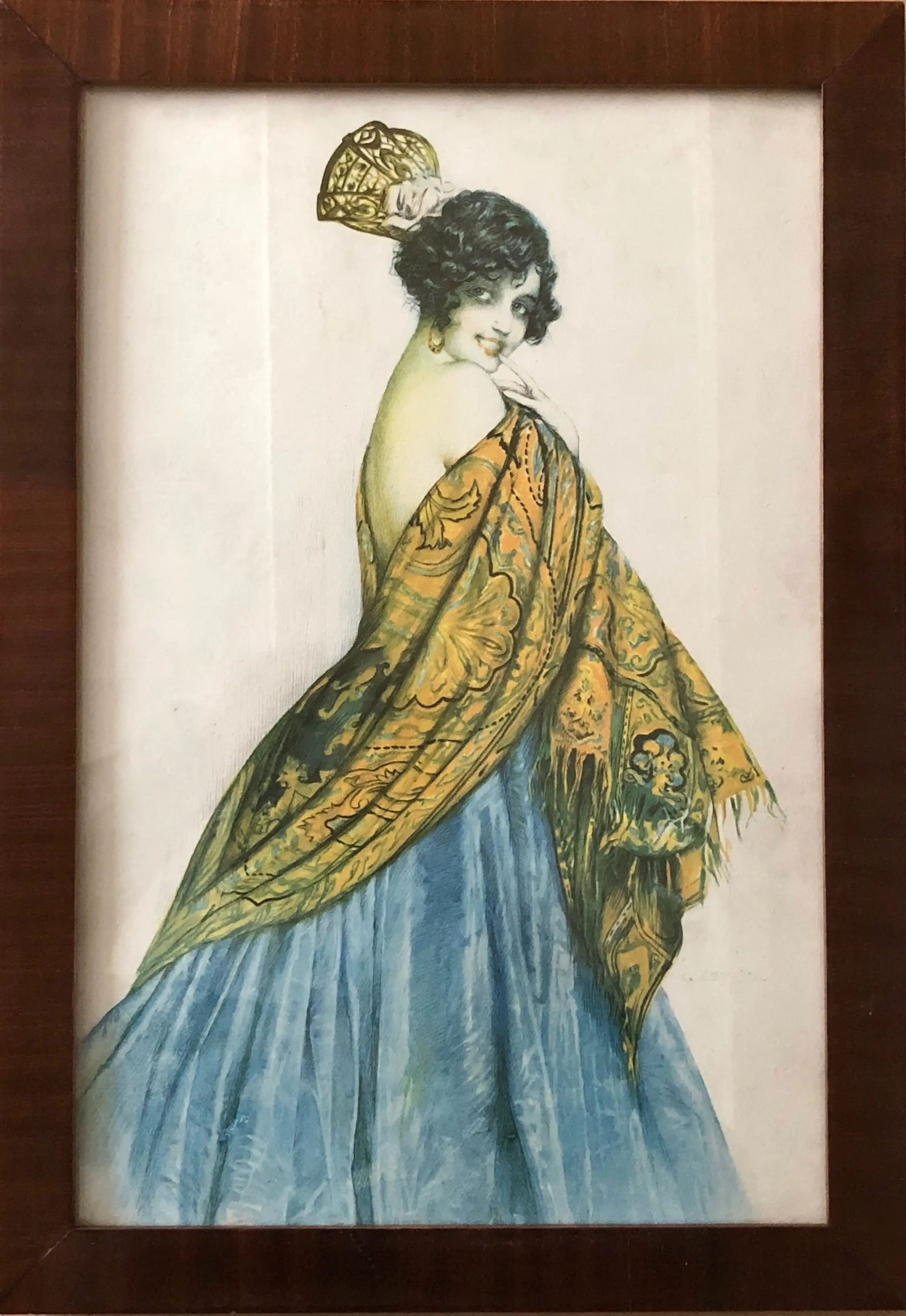 Klein plekje in jurk bijgewerkt. Mahoniehouten lijst.