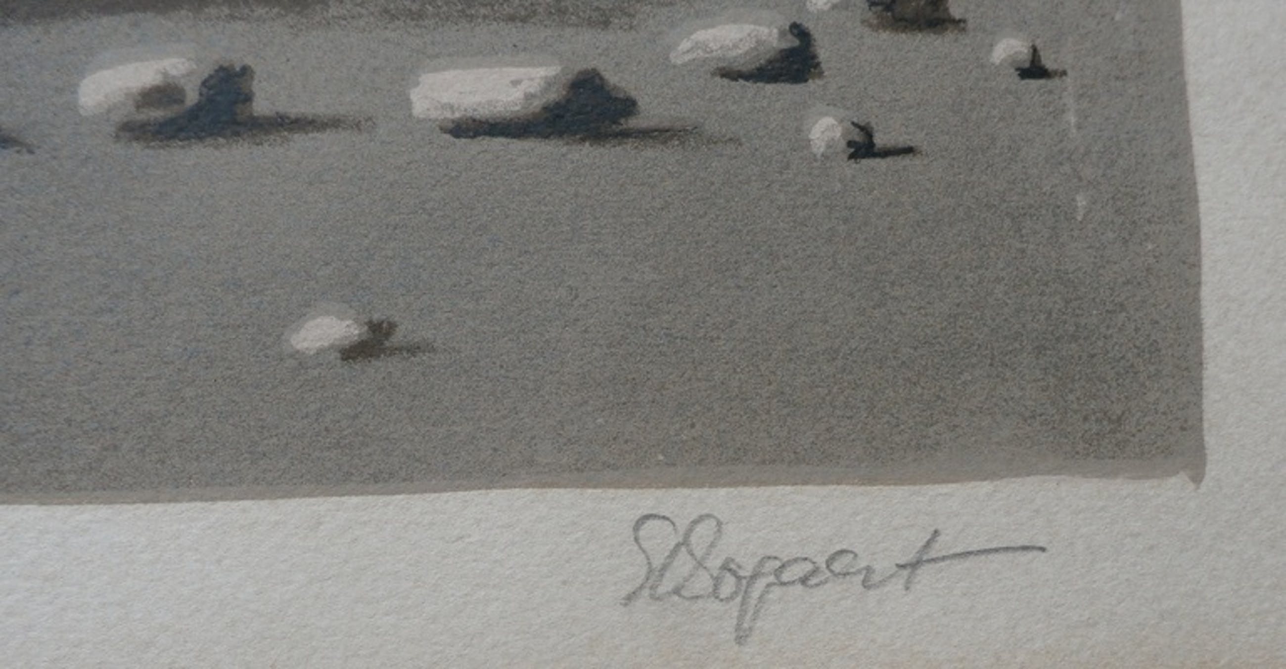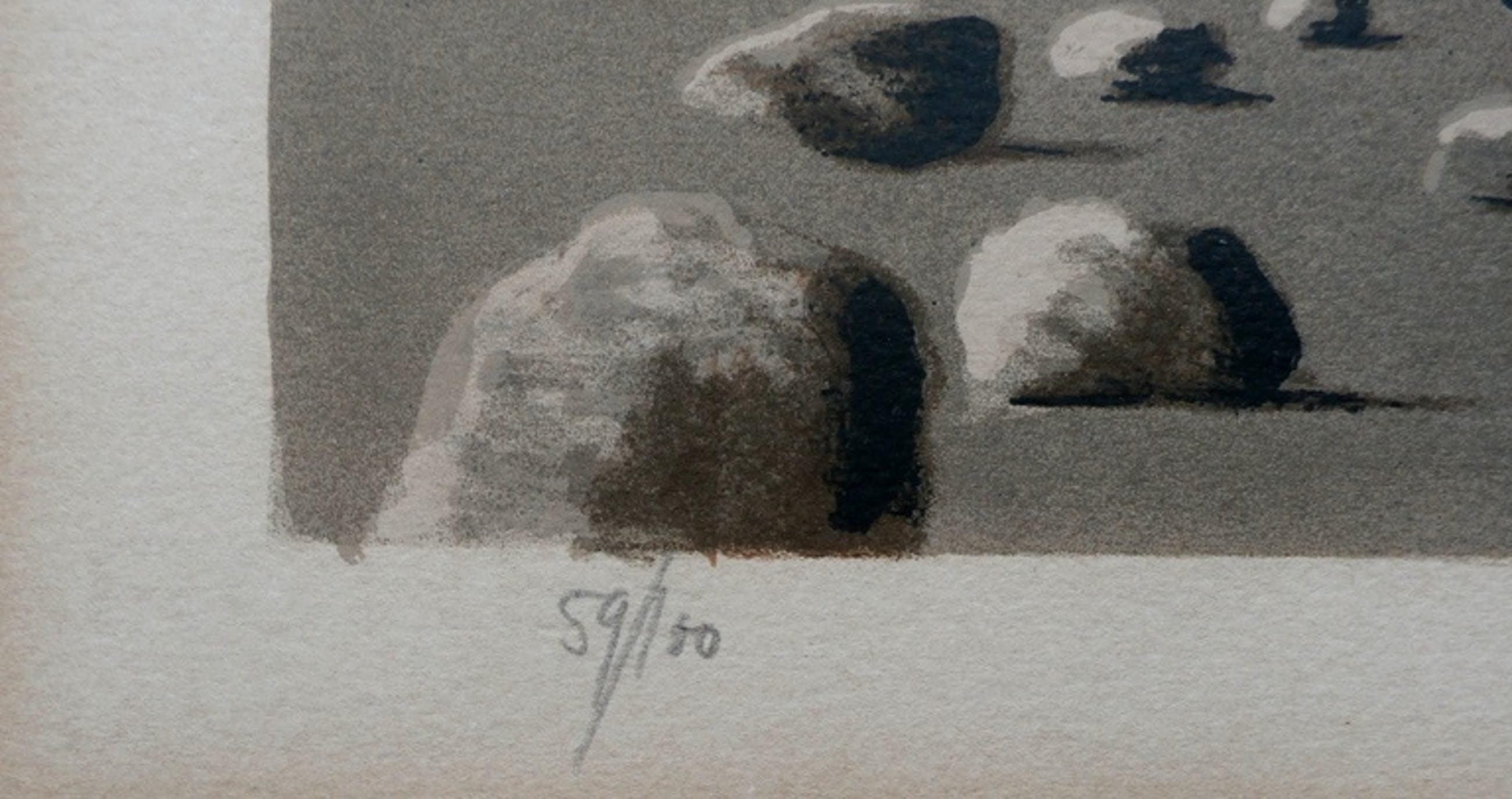 Conditie: in goede staat. Het werk heeft ingelijst gezeten en is verkleurd binnen de randen van het oude passepartout, goed ingelijst met nieuw passepartout valt dit niet meer op. OP de achterzijde zitten wat plakresten van een vorige inlijsting.