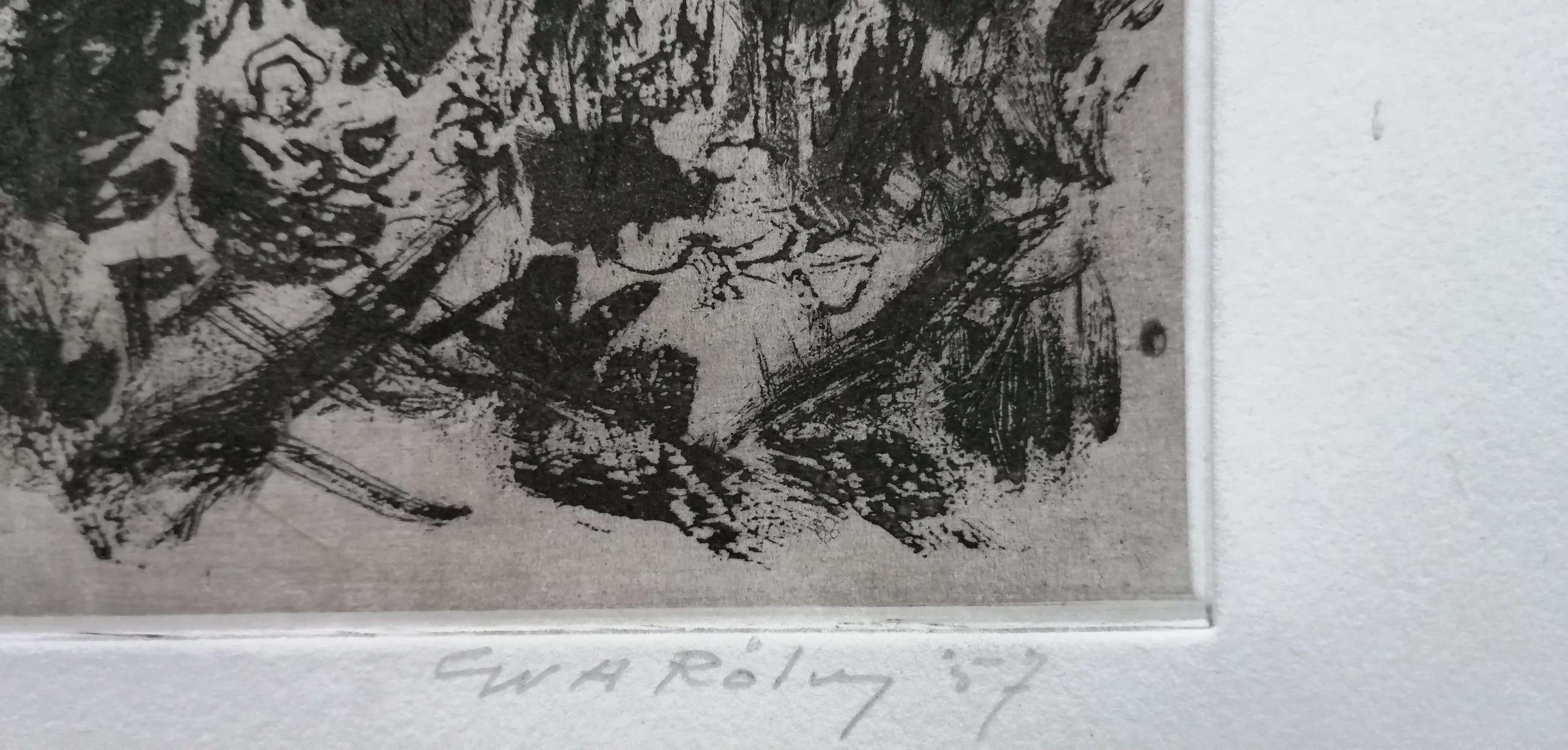 Mooie ets van Gerard Victor Alphons Röling.Potlood gesigneerd en gedateerd rechtsonder.Getiteld en genummerd 5/25 linksonder.Beeldmaat 24,5x34,5 cm.Bladmaat 40x55 cm.Losbladig.