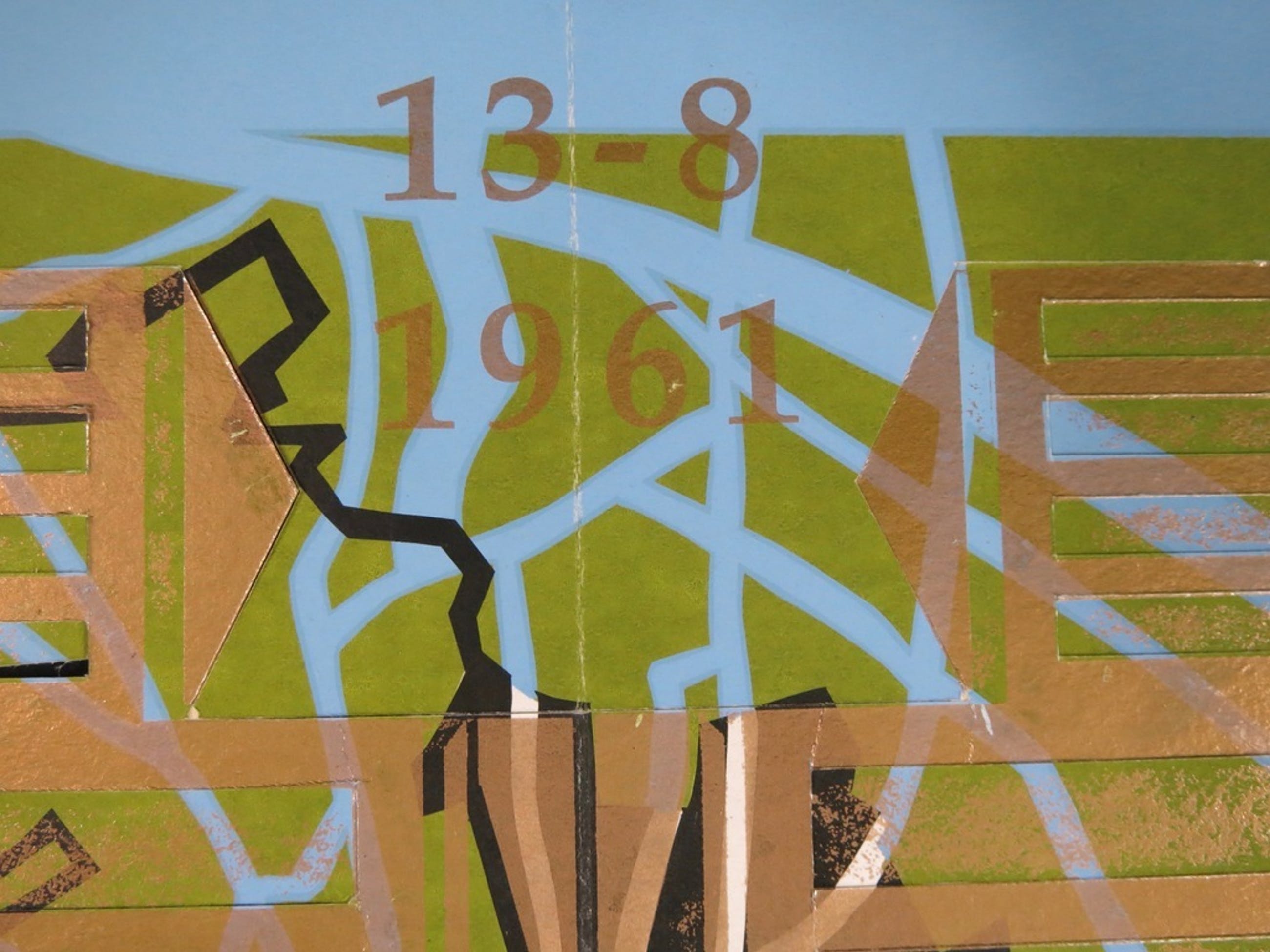 Zeer lichte beschadigingen langs de randen en hoeken. In het midden loopt een vouwlijn, deze is gebruikt. Aan de achterzijde zitten wat tape/lijmresten. Hier en daar in het beeld zitten lichte slijtplekjes. | |||