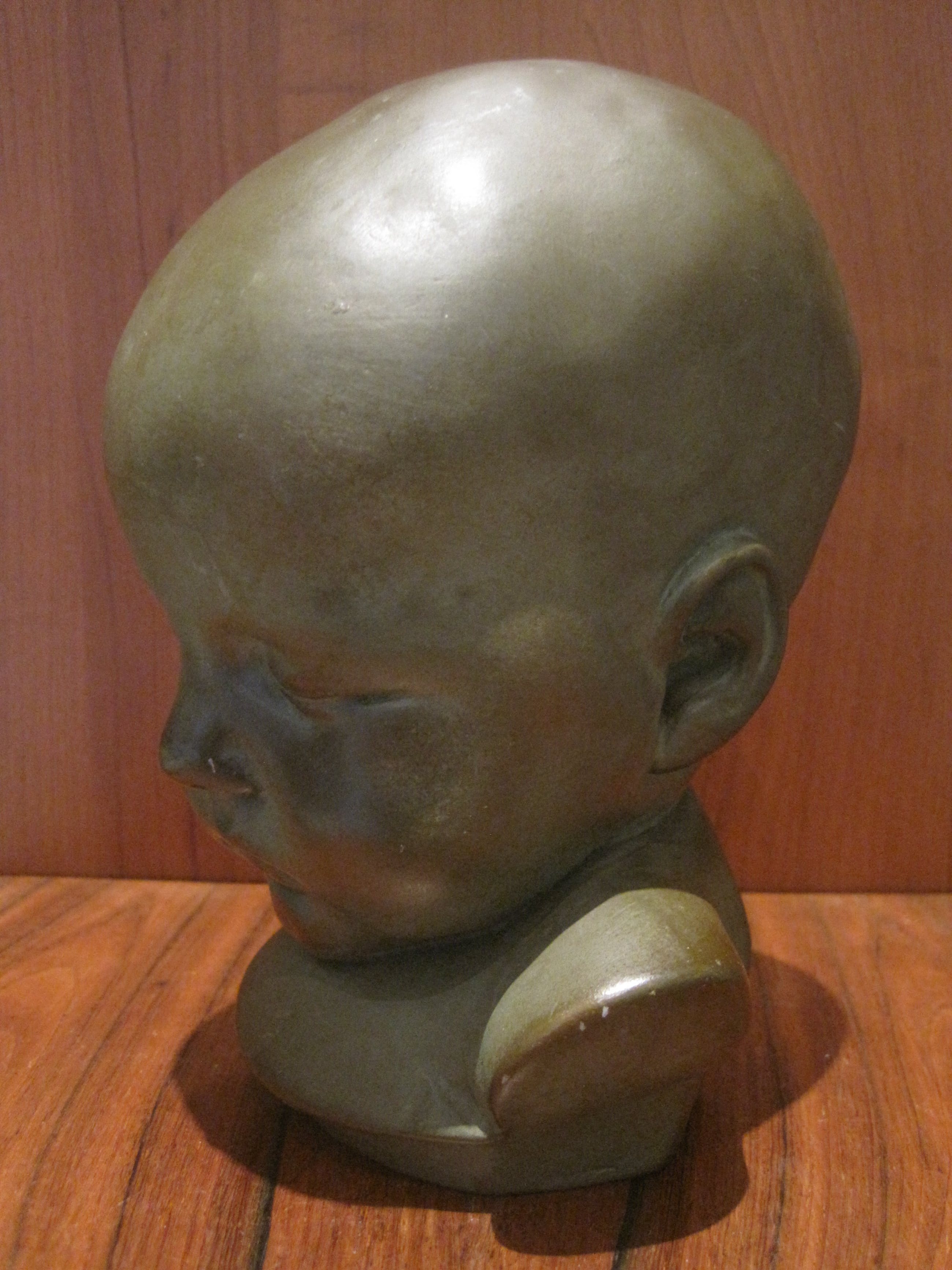Een heel mooi baby of kinderkopje gemaakt door de gebroeders van Paridon. Het is gemaakt van Paridur, een mengsel van gips en kunststof, uitgevonden door Paridon.