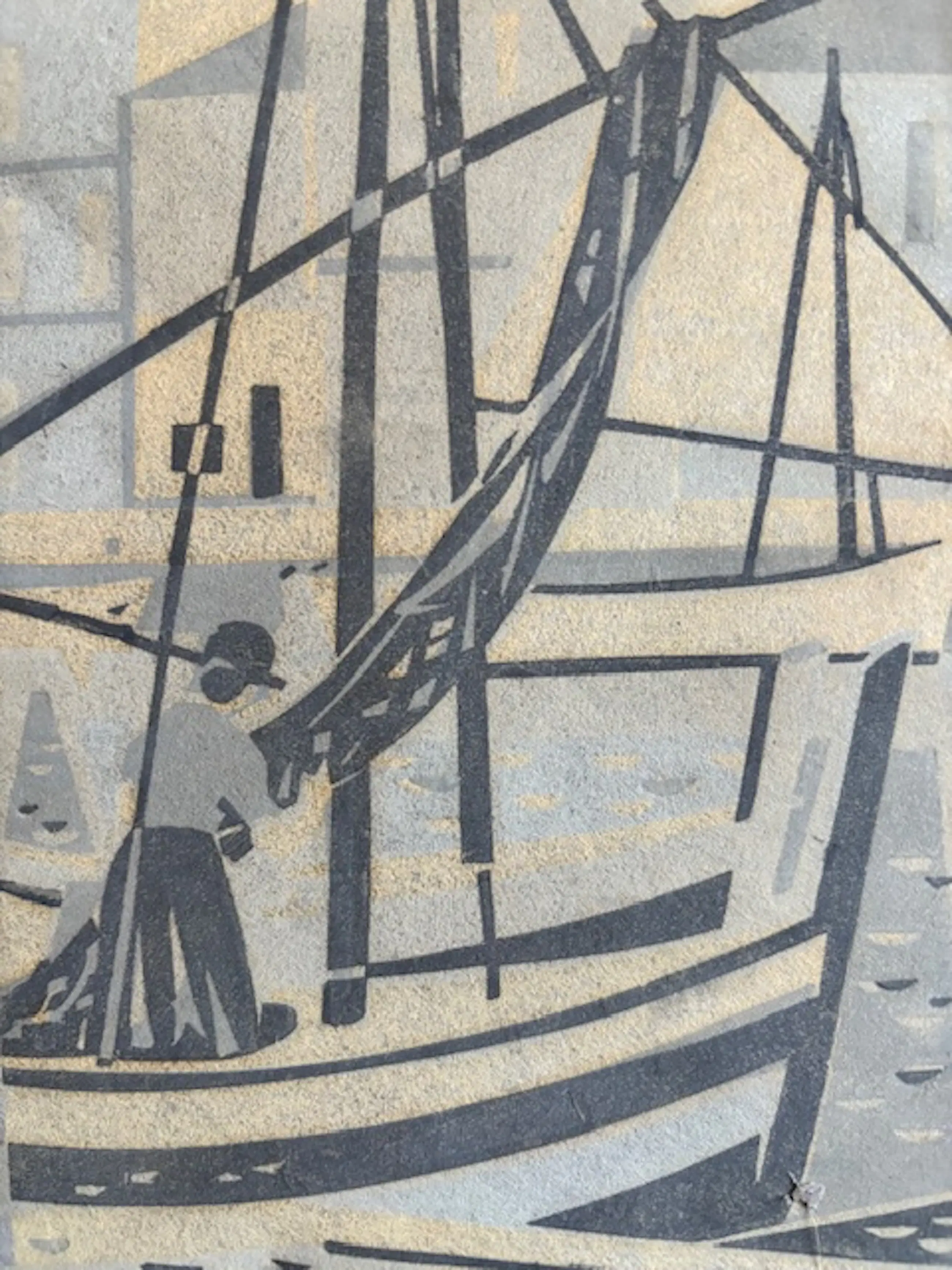 Een figuur op de kade, een visser in een bootje of een wandelaar in een bergstadje. Geert Geerligs laat zijn kleuren dansen.