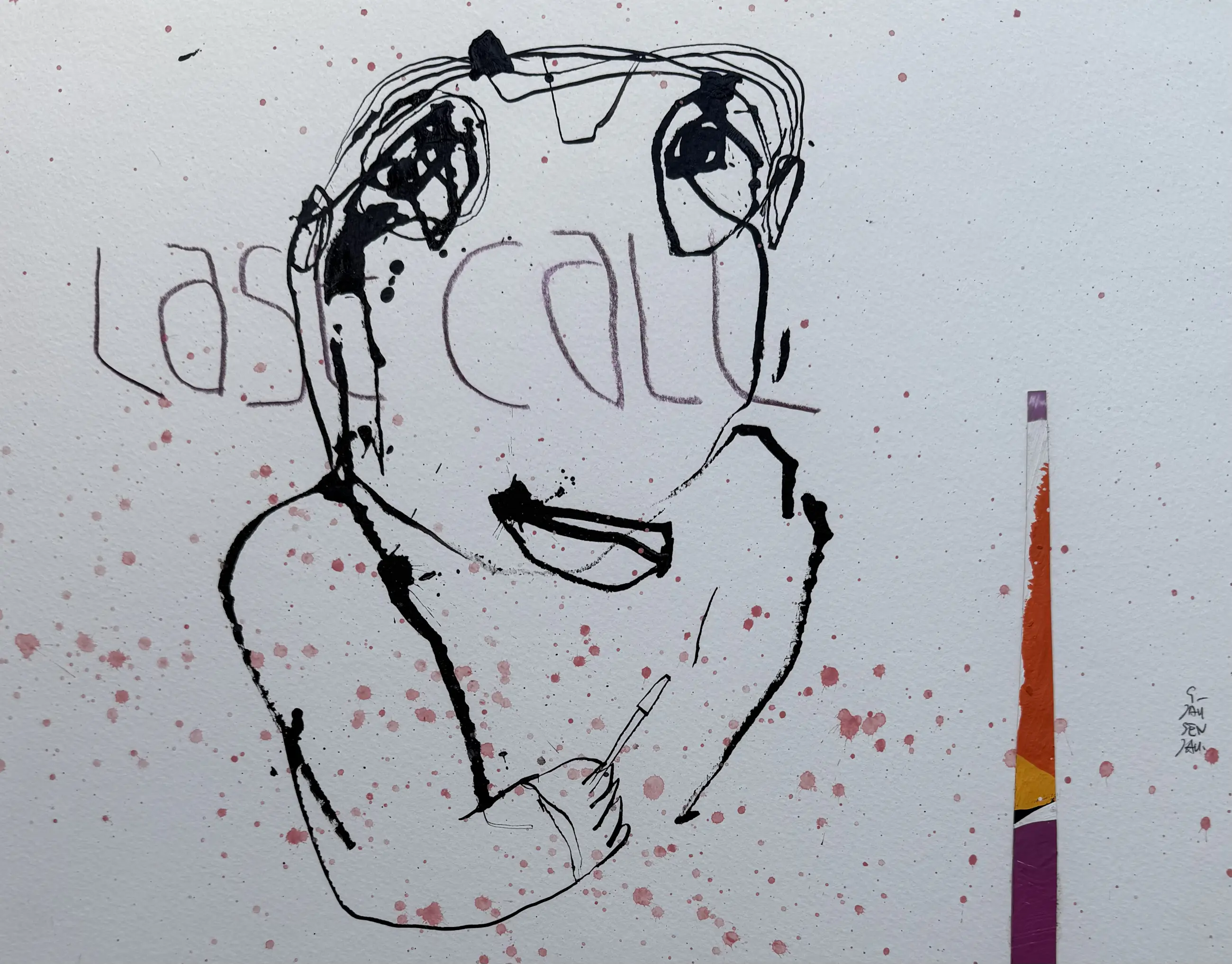 Geert Jan Jansen - gemengde techniek op papier | 'Last Call' - Verkocht