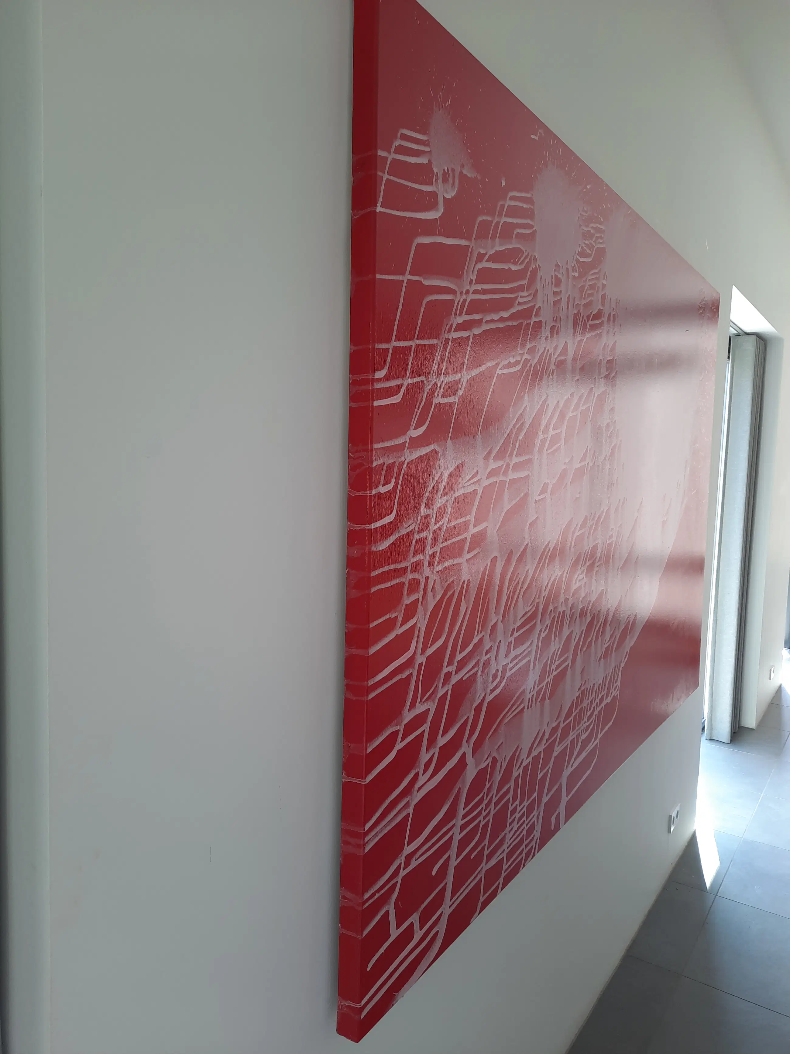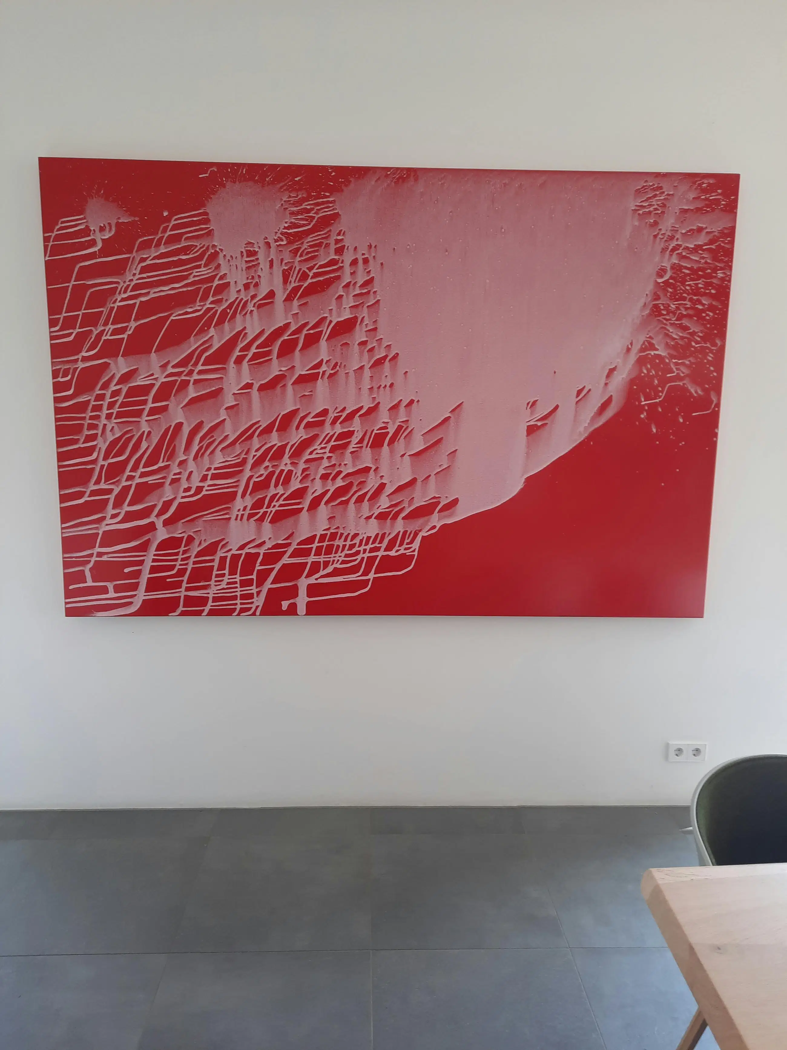 Prachtige moderne kunst. Geert Jan Jansen zijn eigen stijl. Modern, met theepot techniek gemaakt. Te koop wegens verhuizing en we hebben niet meer zo'n muur ter beschikking om deze grootte kwijt te kunnen.