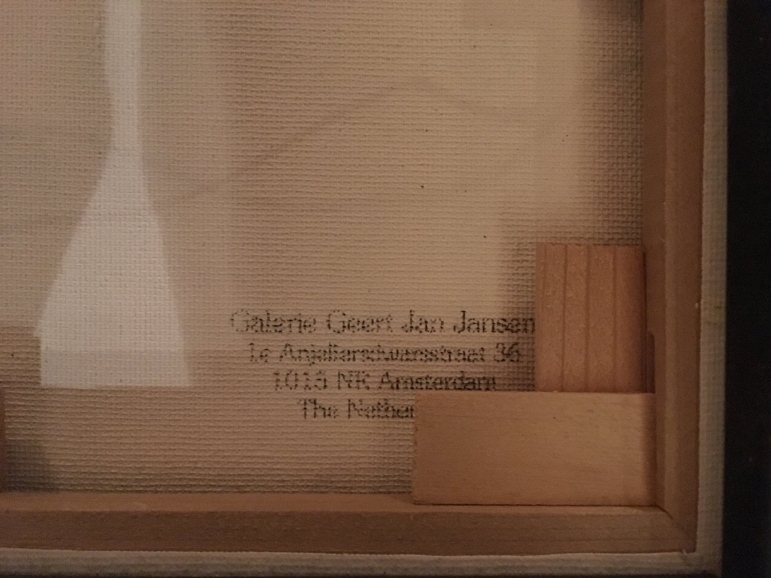 Geert jan Jansen is Nederlands meest beroemde meestervervalser. Sinds zijn veroordeling in Frankrijk schildert hij alleen nog in de stijl van anderen wanneer hij ook zijn eigen naam eronder zet. Dit betreft een orgineel schilderij waar je deze afbeelding normaal vaak in zeefdruk tegenkomt. De spikkels zijn in de verf gegoten glitters.Werk zit in originele baklijstOp de achterkant staat een galeriestempel