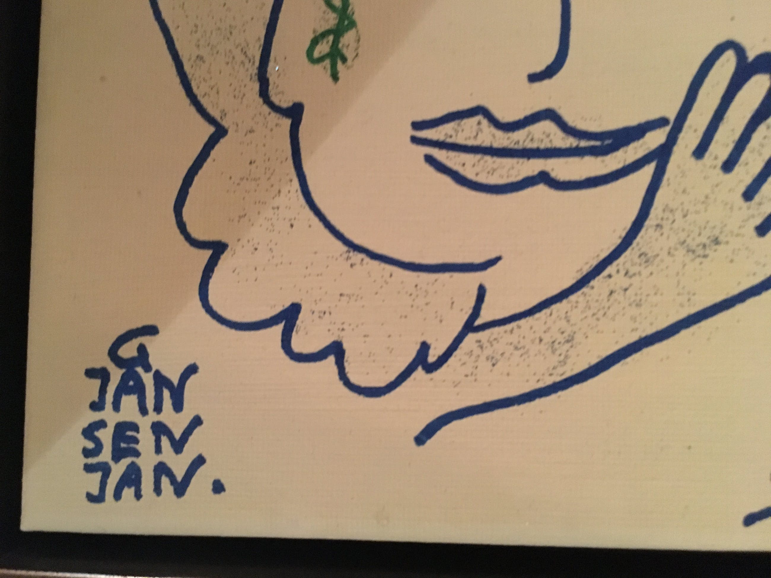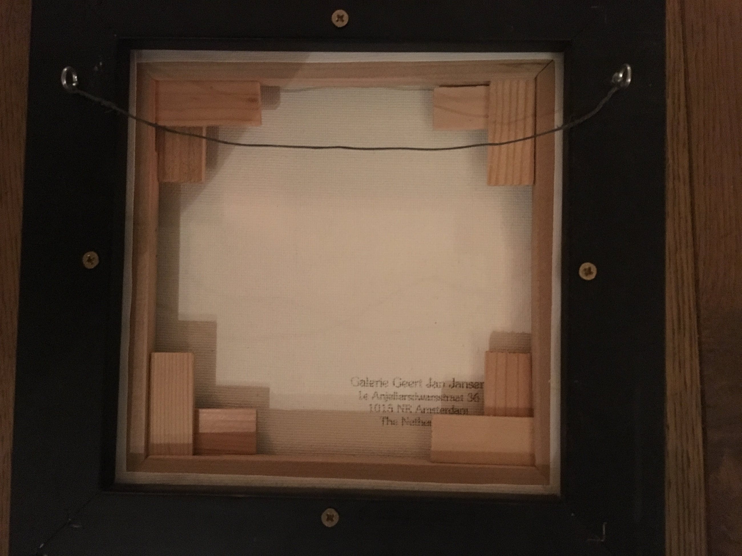 Doek heel klein beetje oneffen aan linker bovenkant. Zichtbaar op foto zes