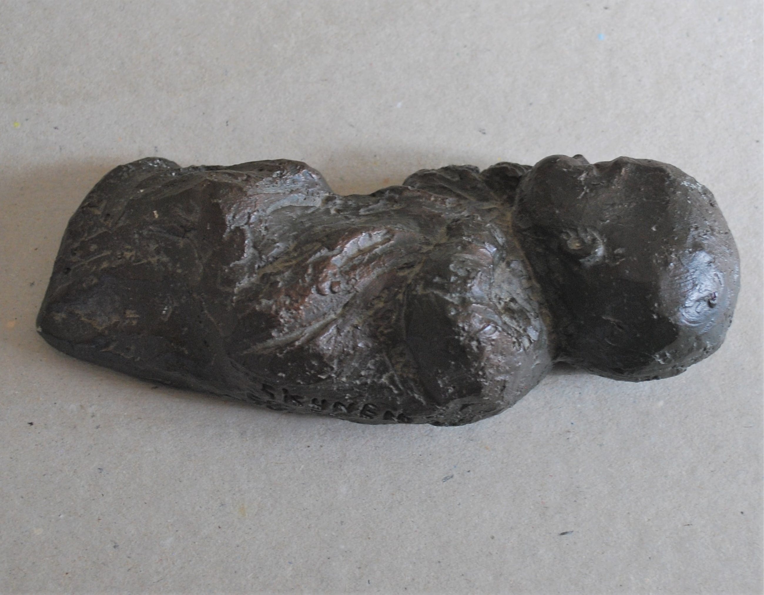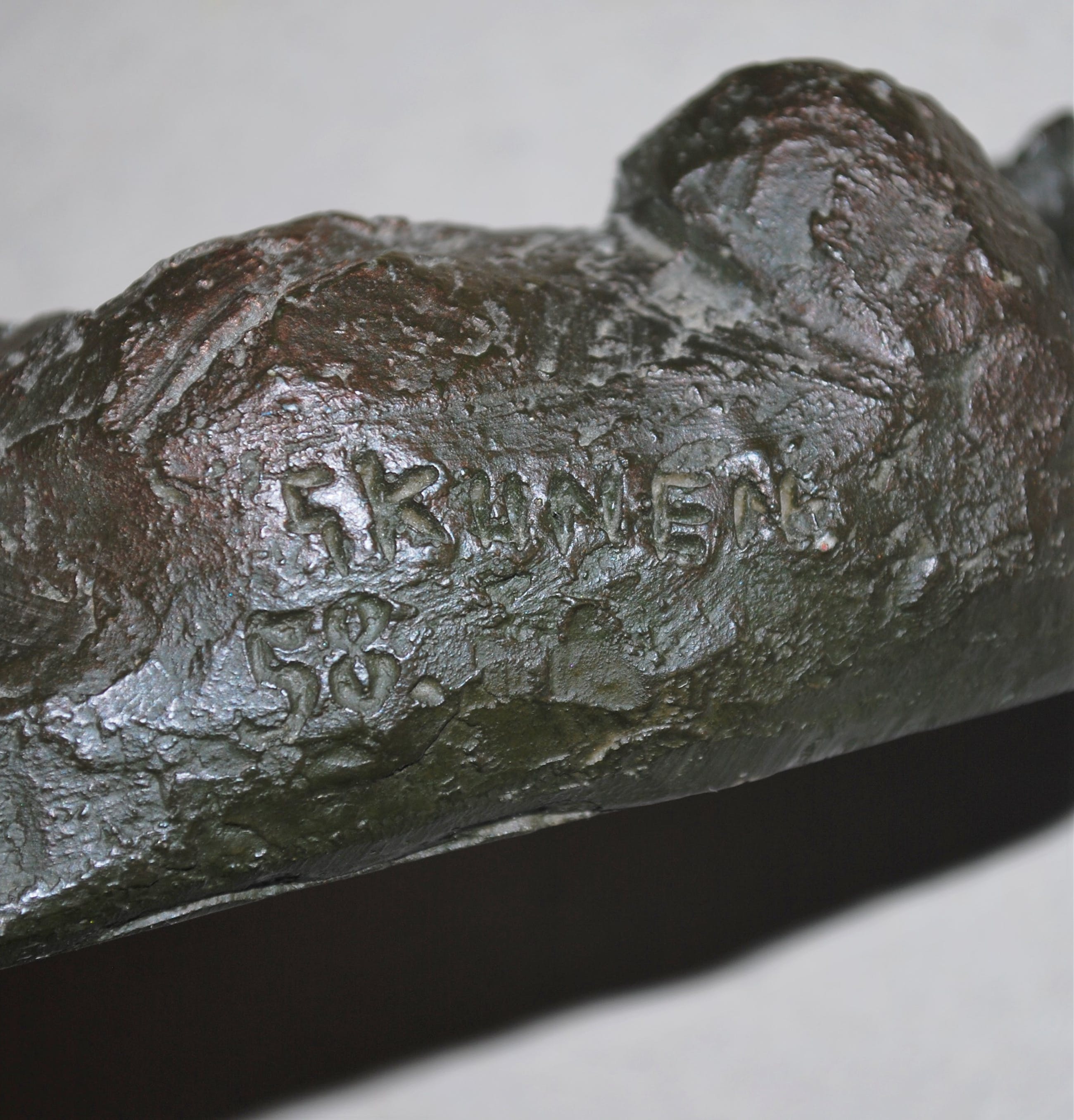 Verbronst keramieken beeldje, gesigneerd aan de achterzijde, met het nr. 58