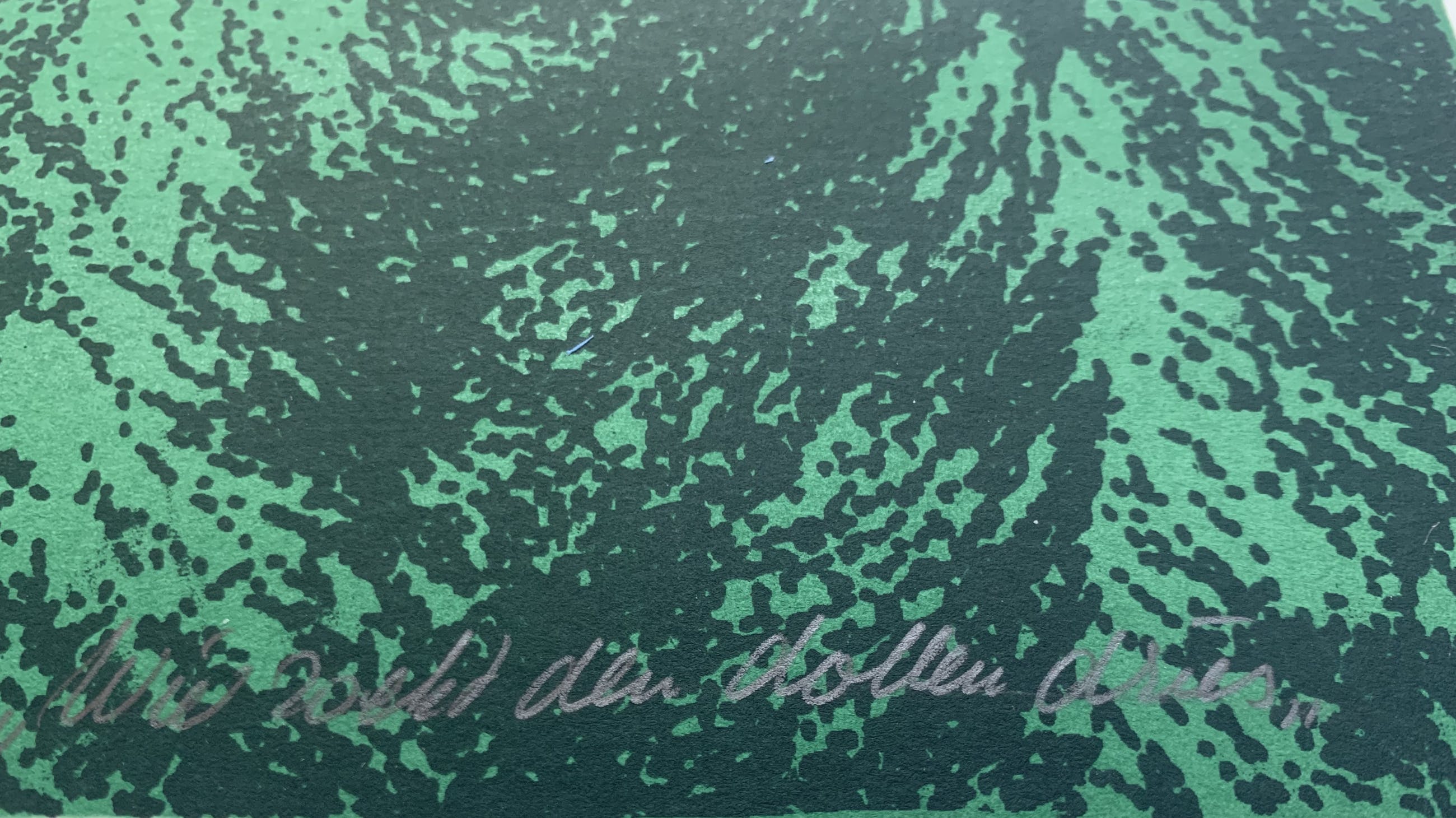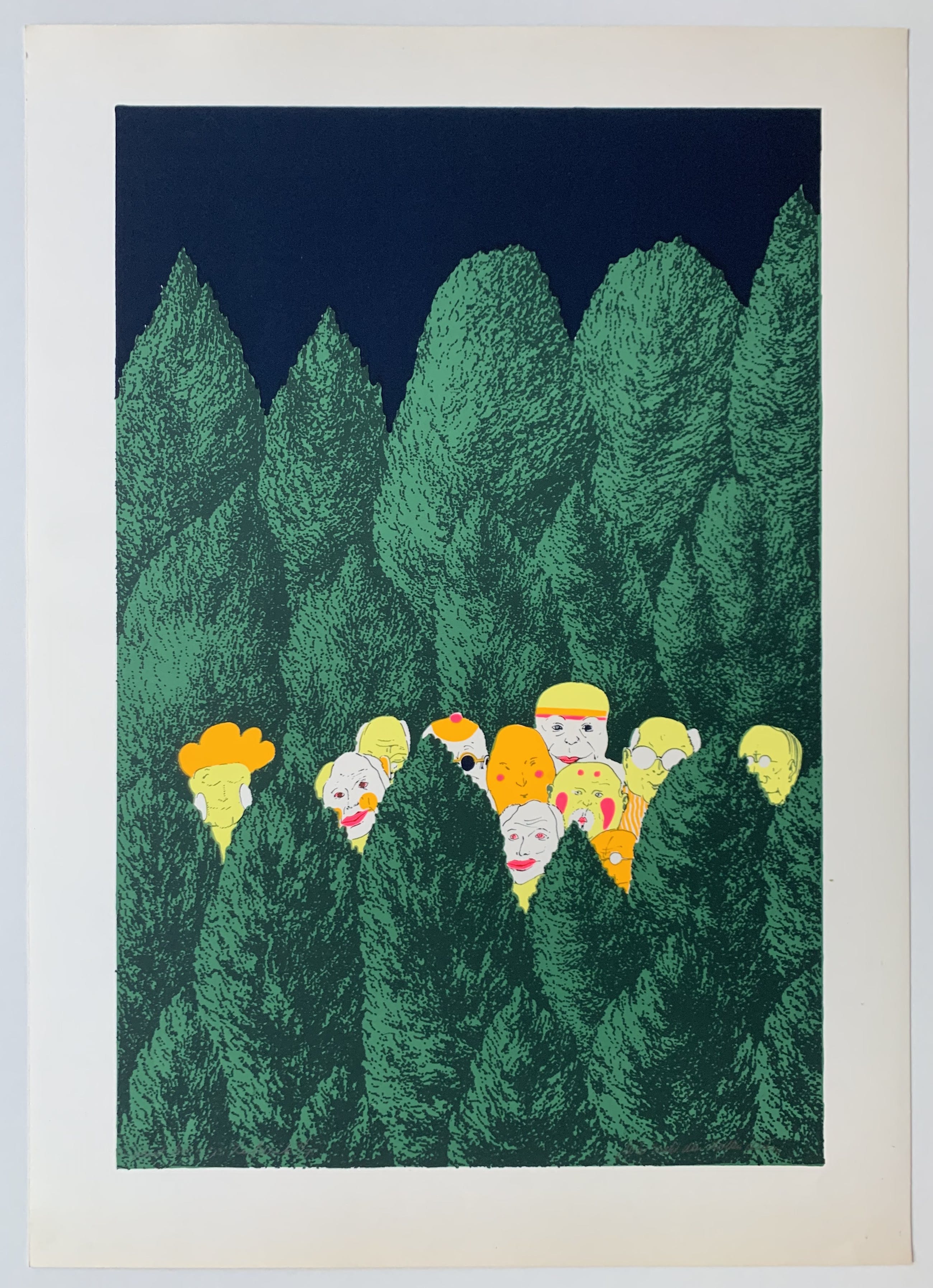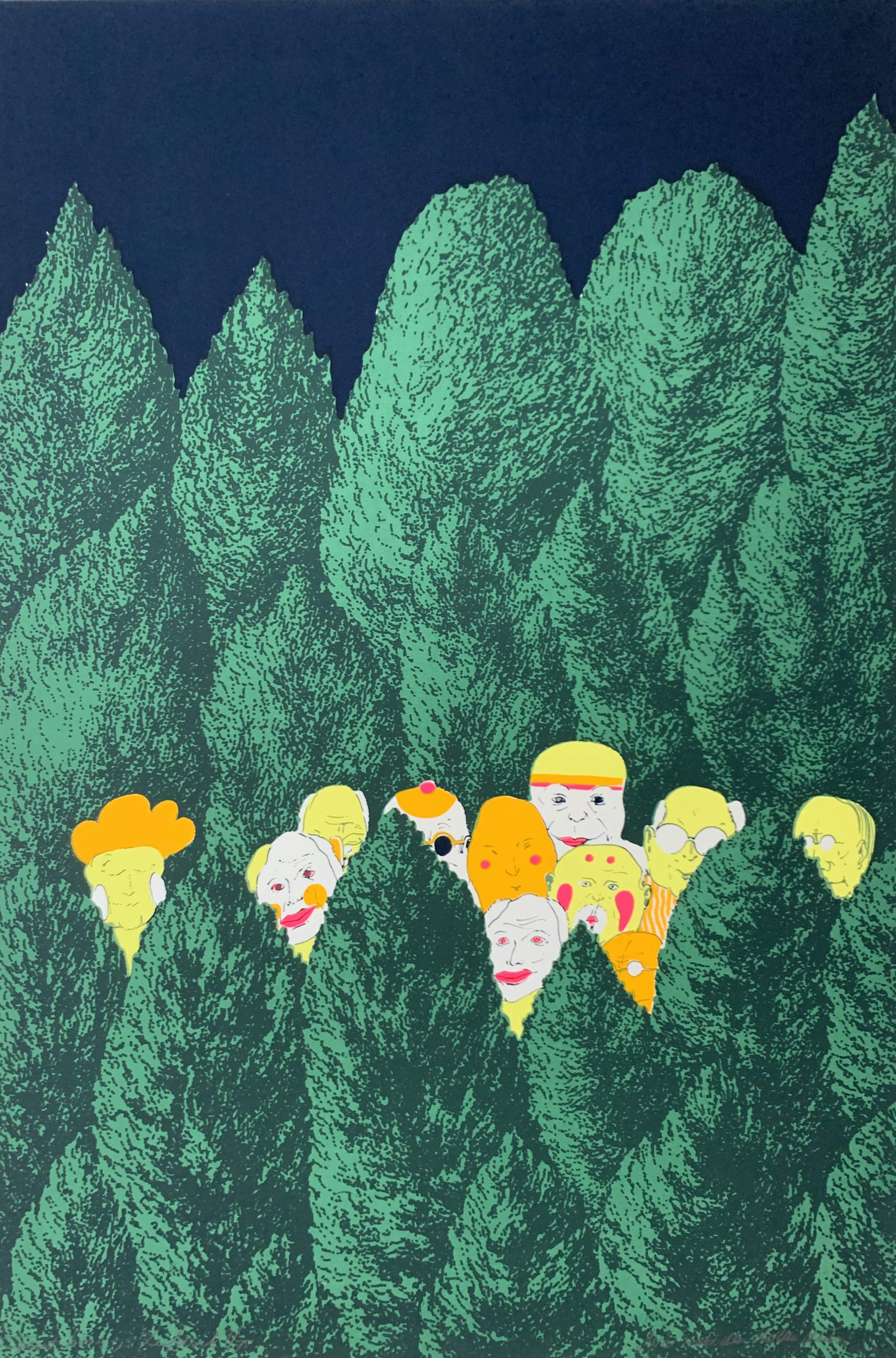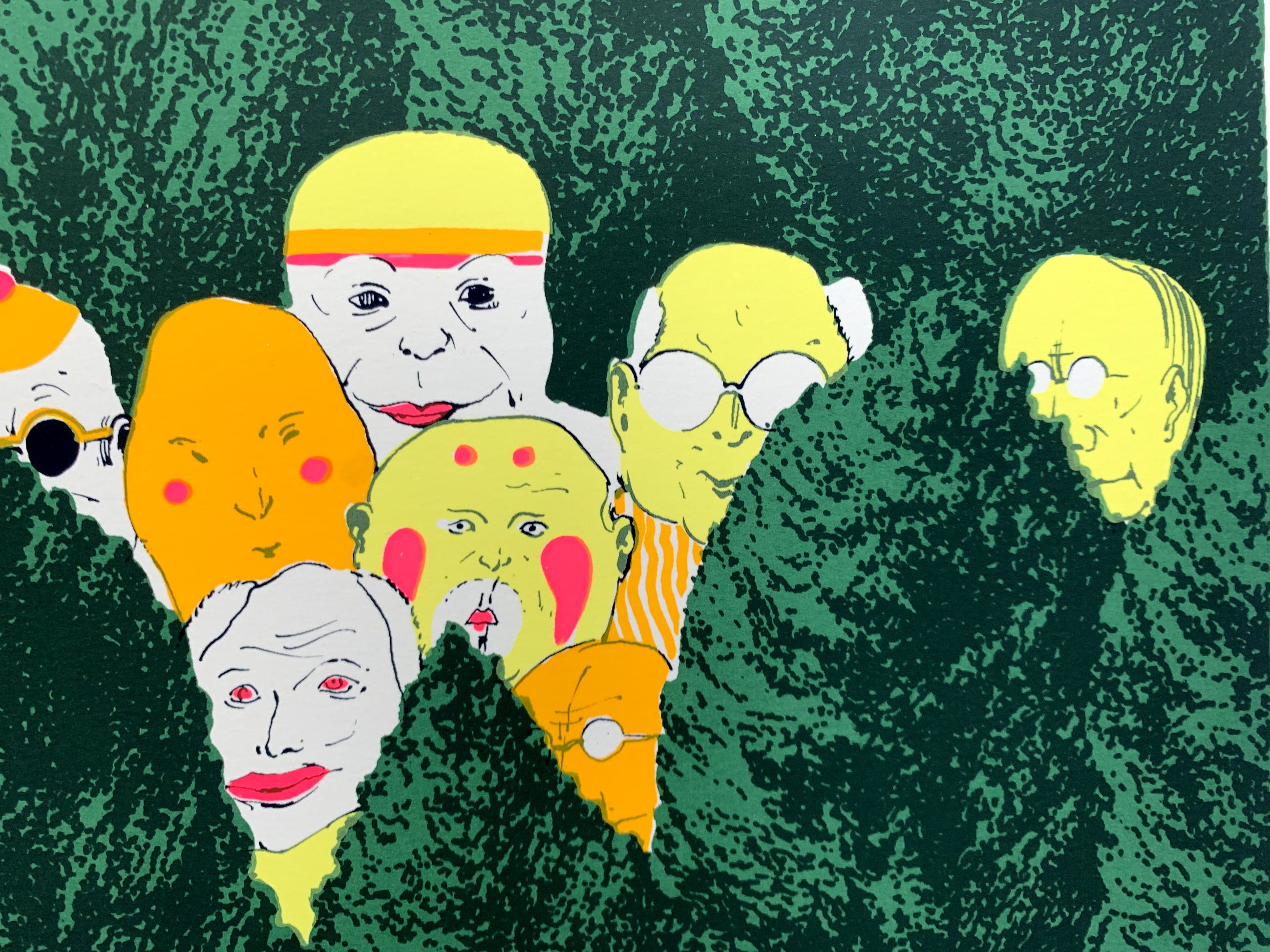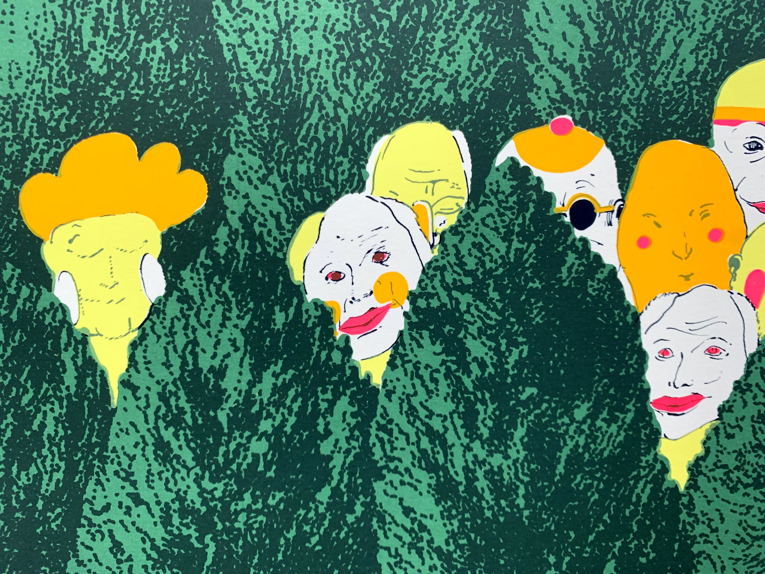 Mooie zeefdruk van de hand van Geert Mols. Prachtige heldere kleuren.