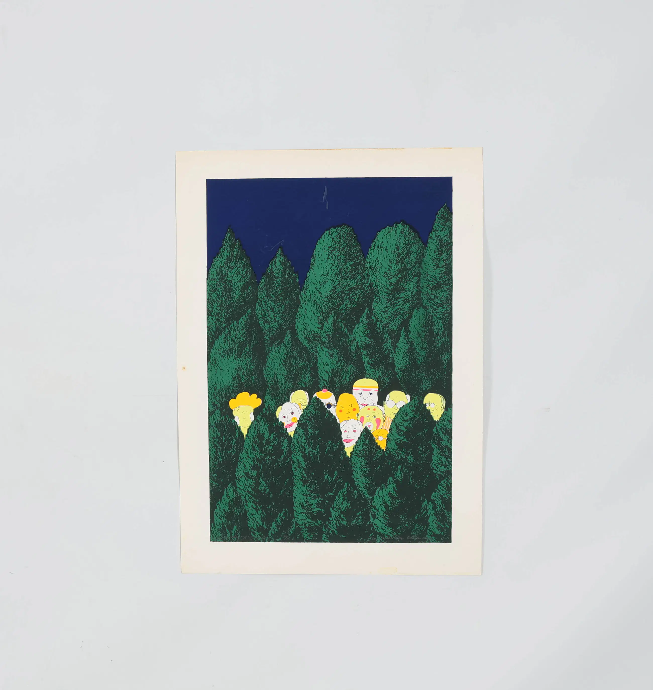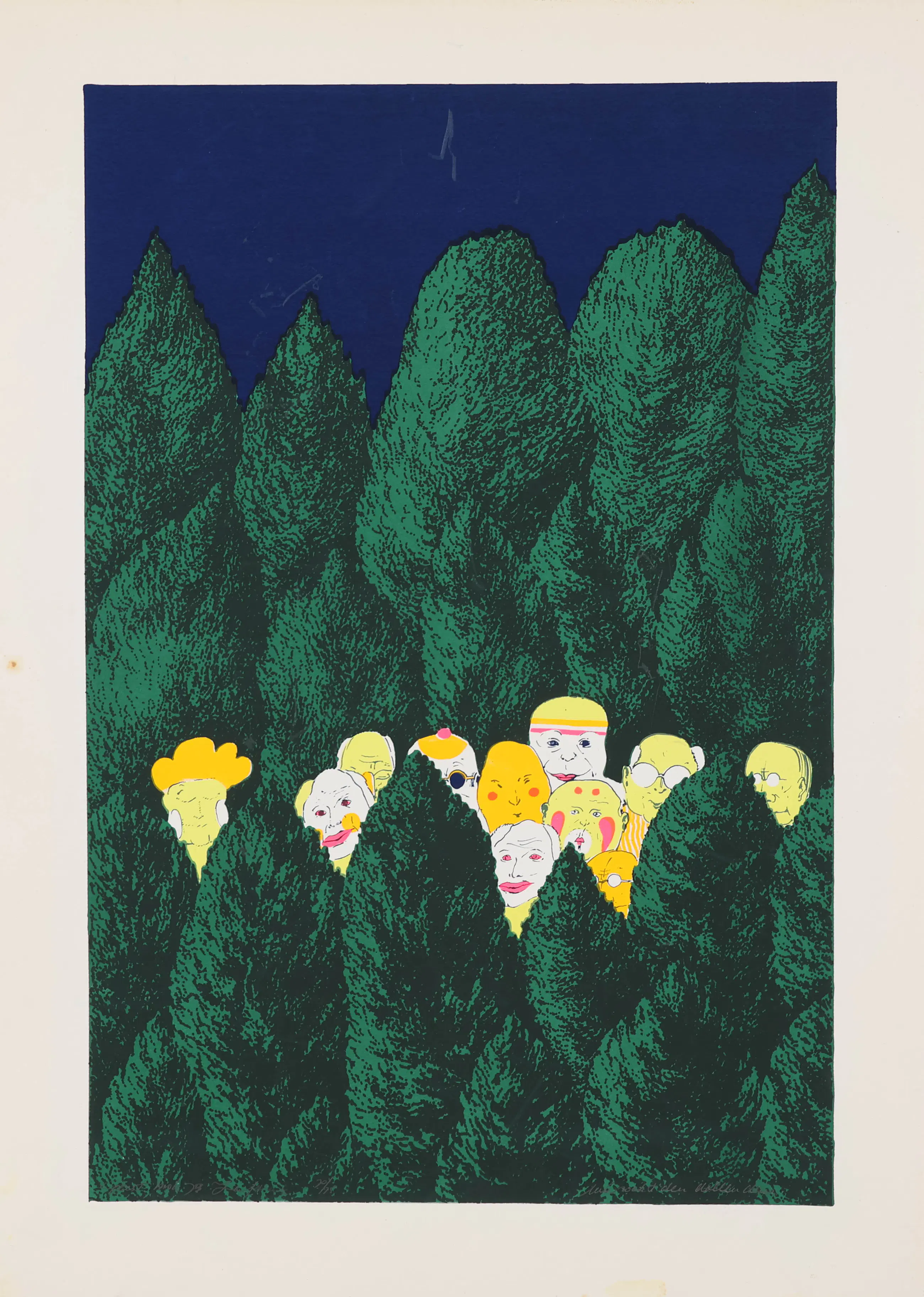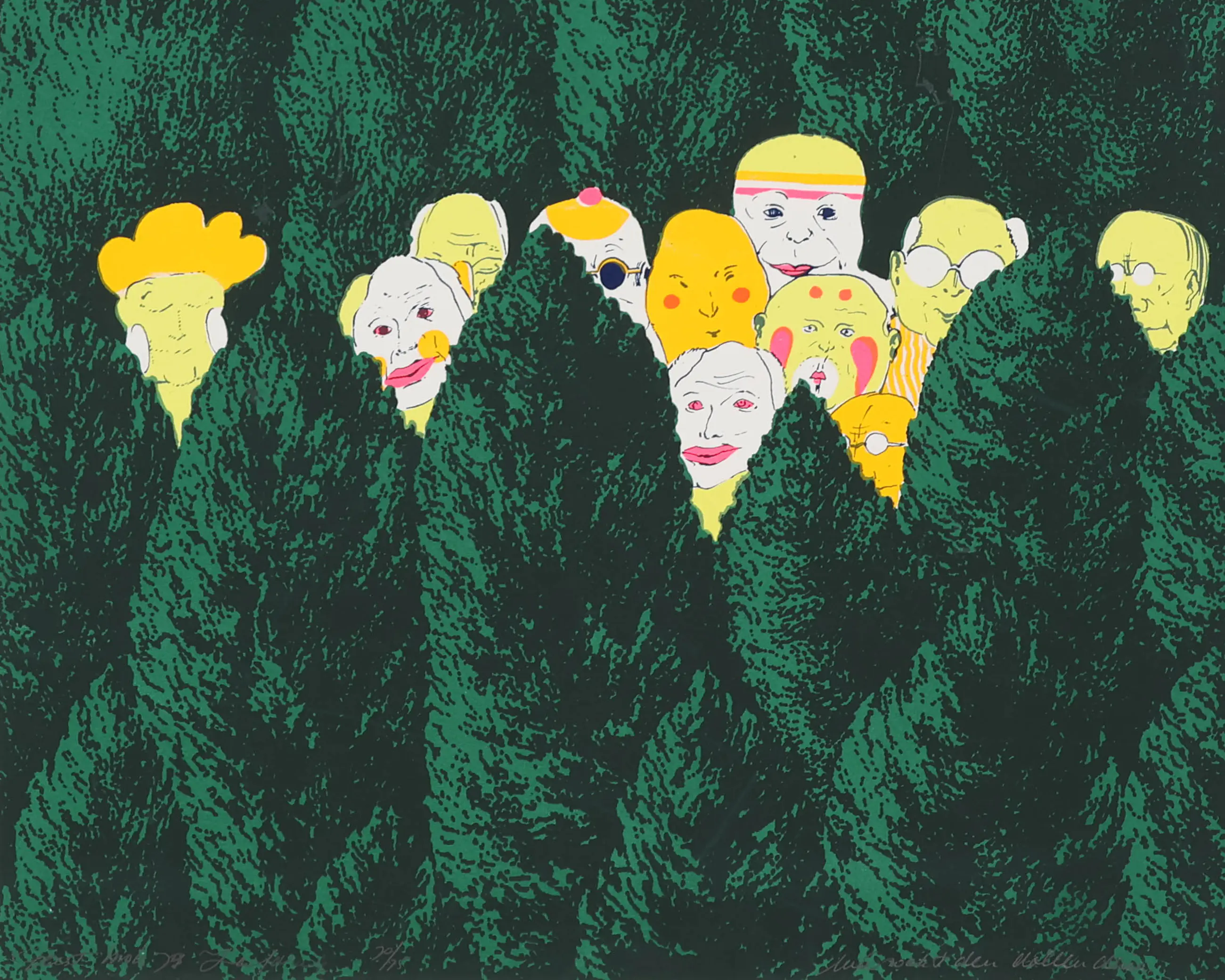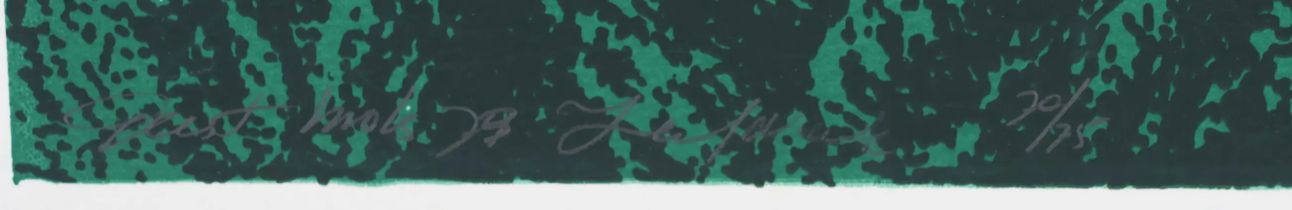 Wie zoekt den dollen Dries” van Geert Mols (1973) is een speelse zeefdruk met humoristische, folkloristische elementen. Het werk is grafisch, gesigneerd en laat Mols’ interesse in lokale tradities en verhalende details zien. Geert Mols was een Nederlandse kunstenaar en beeldhouwer, geboren in 1939 in Voerendaal (Limburg). Hij maakte vooral grafische kunst zoals zeefdrukken, maar ook tekeningen en beelden. Zijn werk werd tentoongesteld en opgenomen in verschillende kunstcollecties in Nederland.