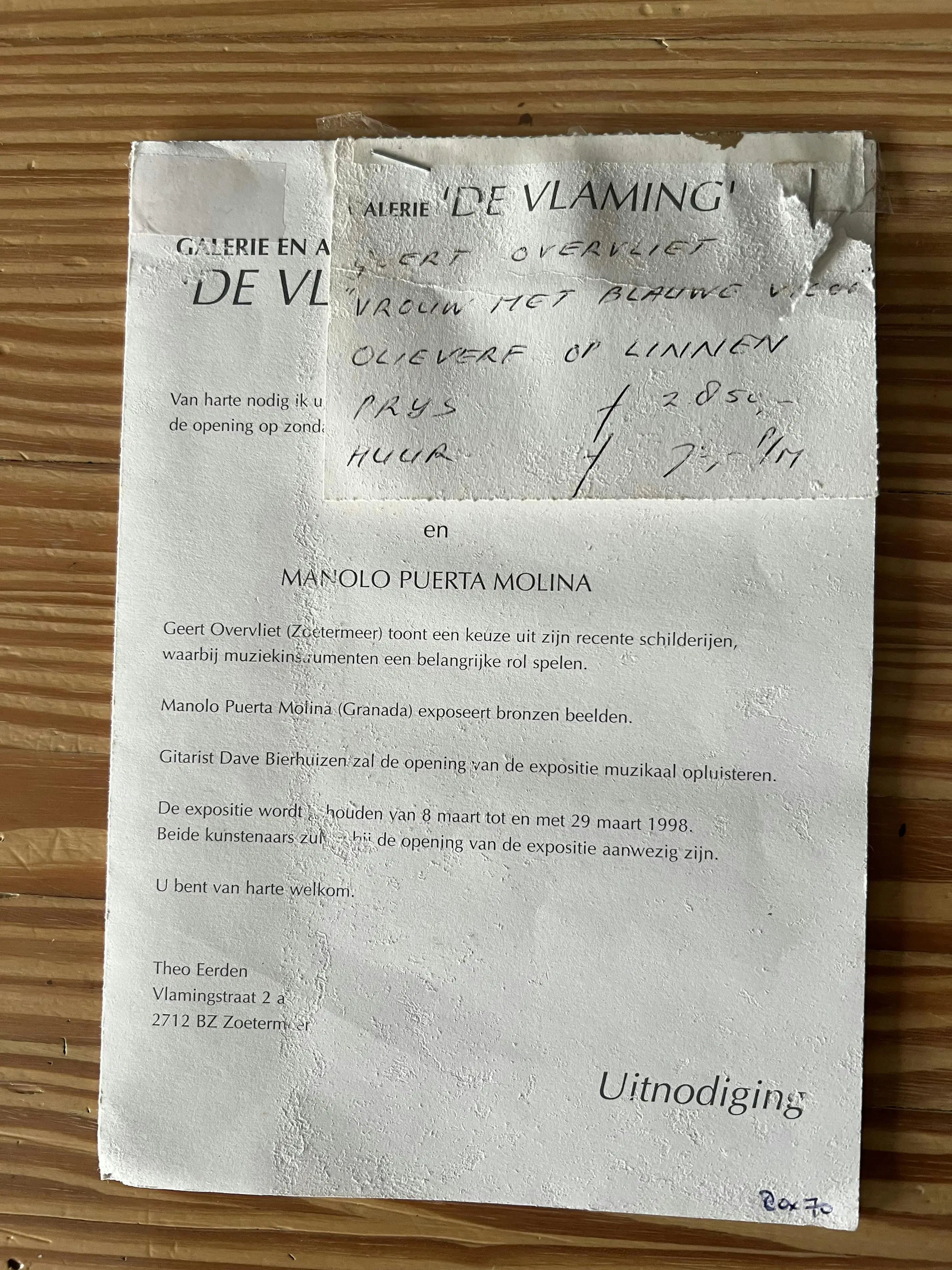 Ben u niet in staat om een werk zelf af te halen, dan kunt u een koeriersdienst inschakelen om het werk te laten afhalen. Klik hier voor meer informatie over hoe dit werkt en bekijk de tarieven.