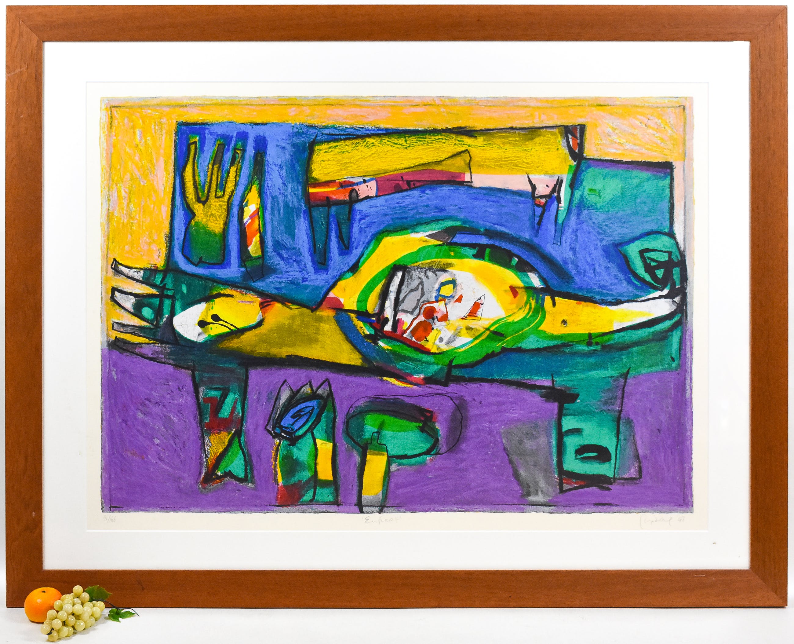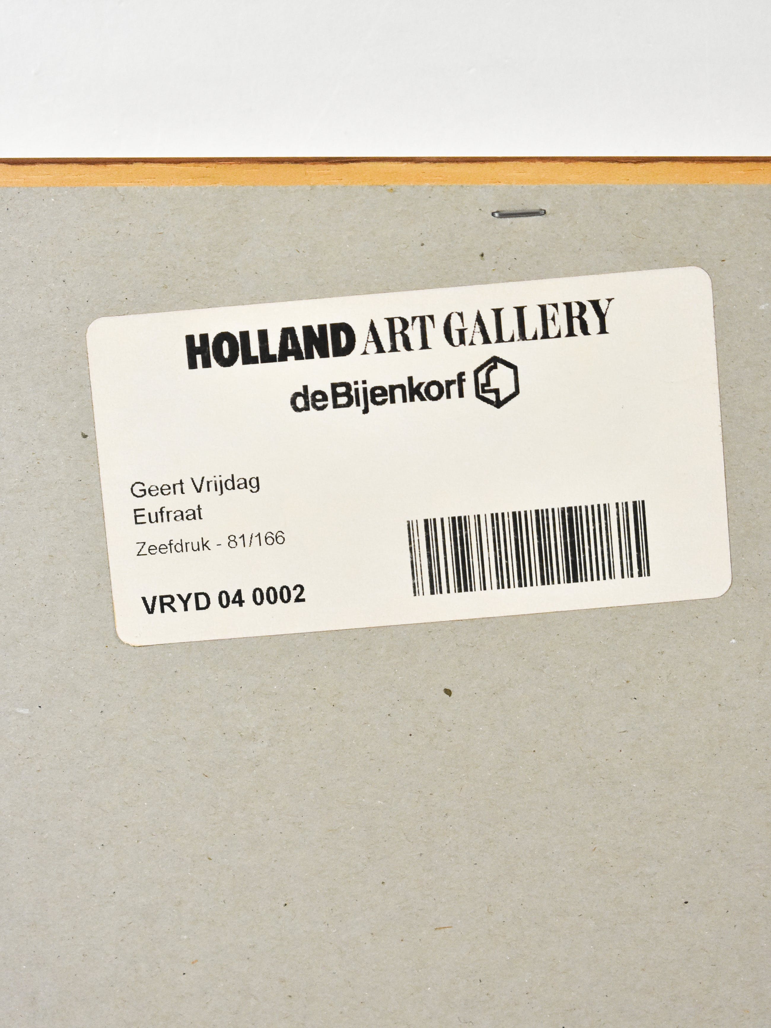 Aangezien het werk uit een bedrijfscollectie komt, kan de lijst wat gebruikssporen overeenkomstig met de leeftijd tonen, deze zijn eenvoudig te verwijderen door de houten lijst licht op te schuren. Eventuele schade en oneffenheden zichtbaar op de foto’s maken onderdeel van de beschrijving. In geval van verzending behoudt Art Dumay het recht en de mogelijkheid het glas te verwijderen zodat een goede zending te allen tijde kan worden gegarandeerd. Bezichtiging van het kavel is altijd mogelijk. Alle contactinformatie kunt op onze eigen website vinden.
