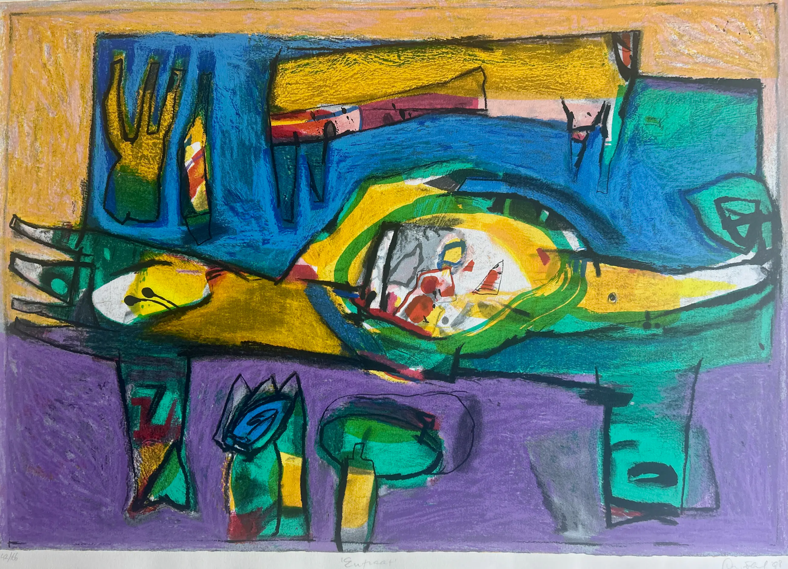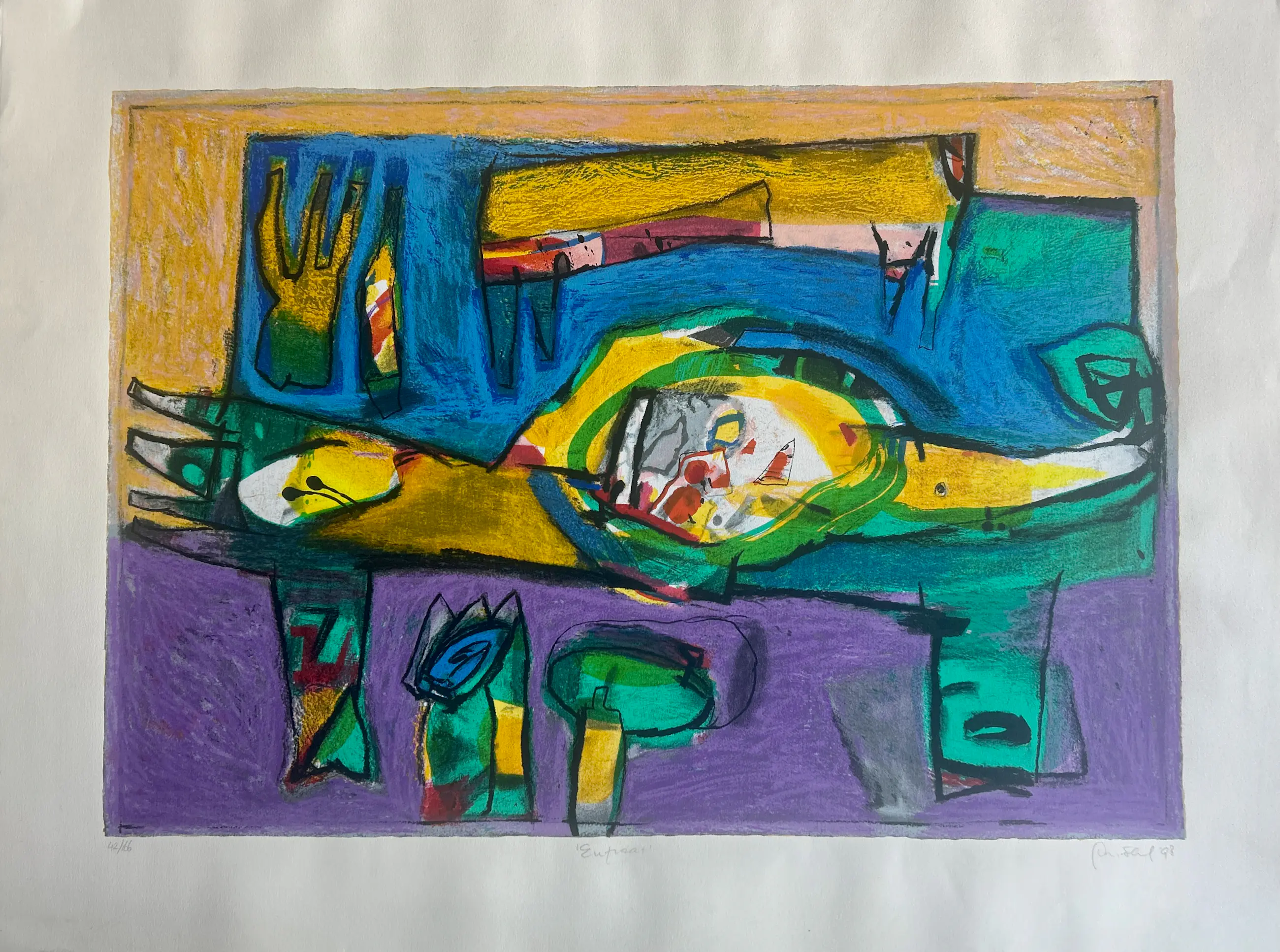 Conditie: zeer goed. Vel heeft lichte deukjes en licht vlekje onderaan vel links, zie foto's. Oplage: 42/166. Afmeting: afbeelding 70 x 99 cm. Wordt zorgvuldig verpakt en verzekerd verzonden.