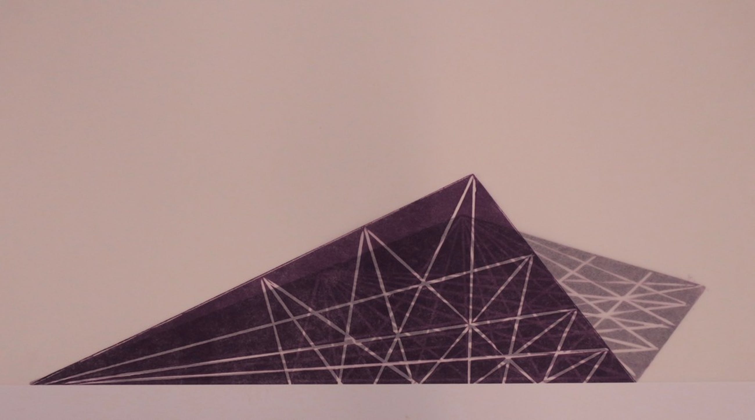 Materiaal: Gemengde techniek, o.a. houtdruk op Japans papier en collage bevestigd op onderblad