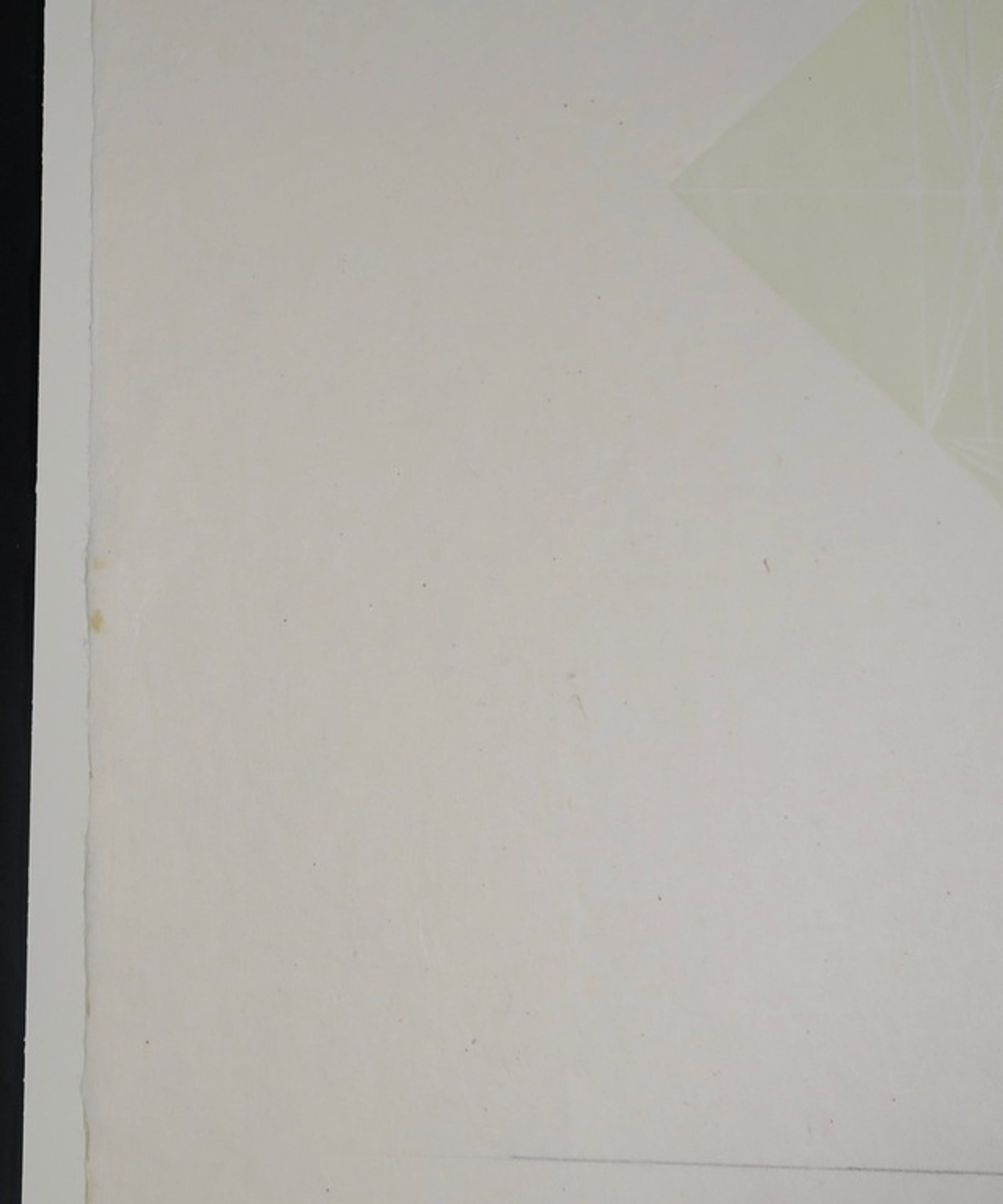 Materiaal: Lino op Rijstpapier, bovenrand op onderblad geplakt.