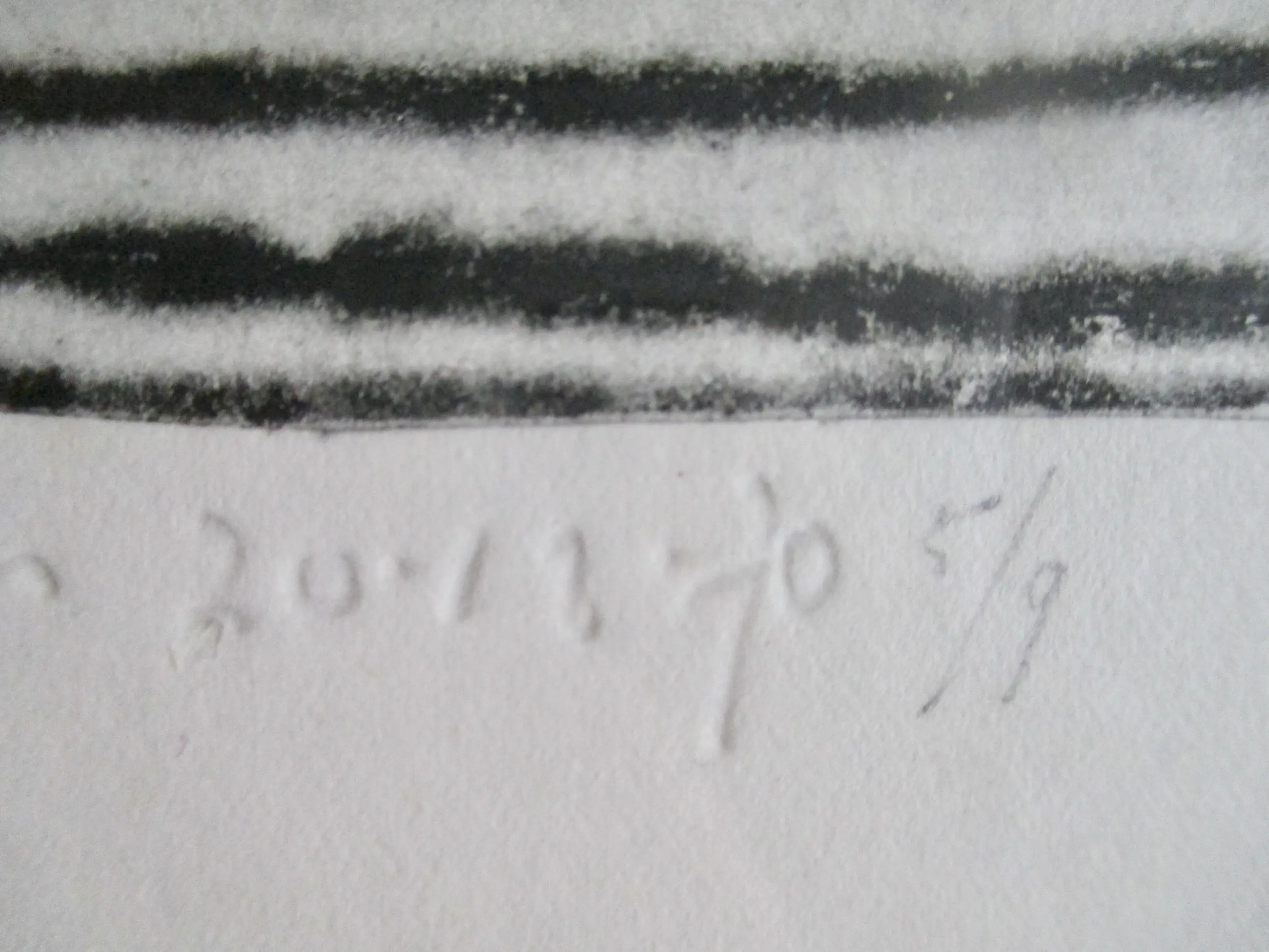 Ets van Geertjan van Oostende, gesigneerd, gedateerd, getiteld en genummerd in potlood. Ingelijst achter glas in aluminium lijst. verzending aangetekend en verzekerd 19 euro. Bij verzending is glasbreuk voor risico van de koper. Verzending alleen binnen Nederland