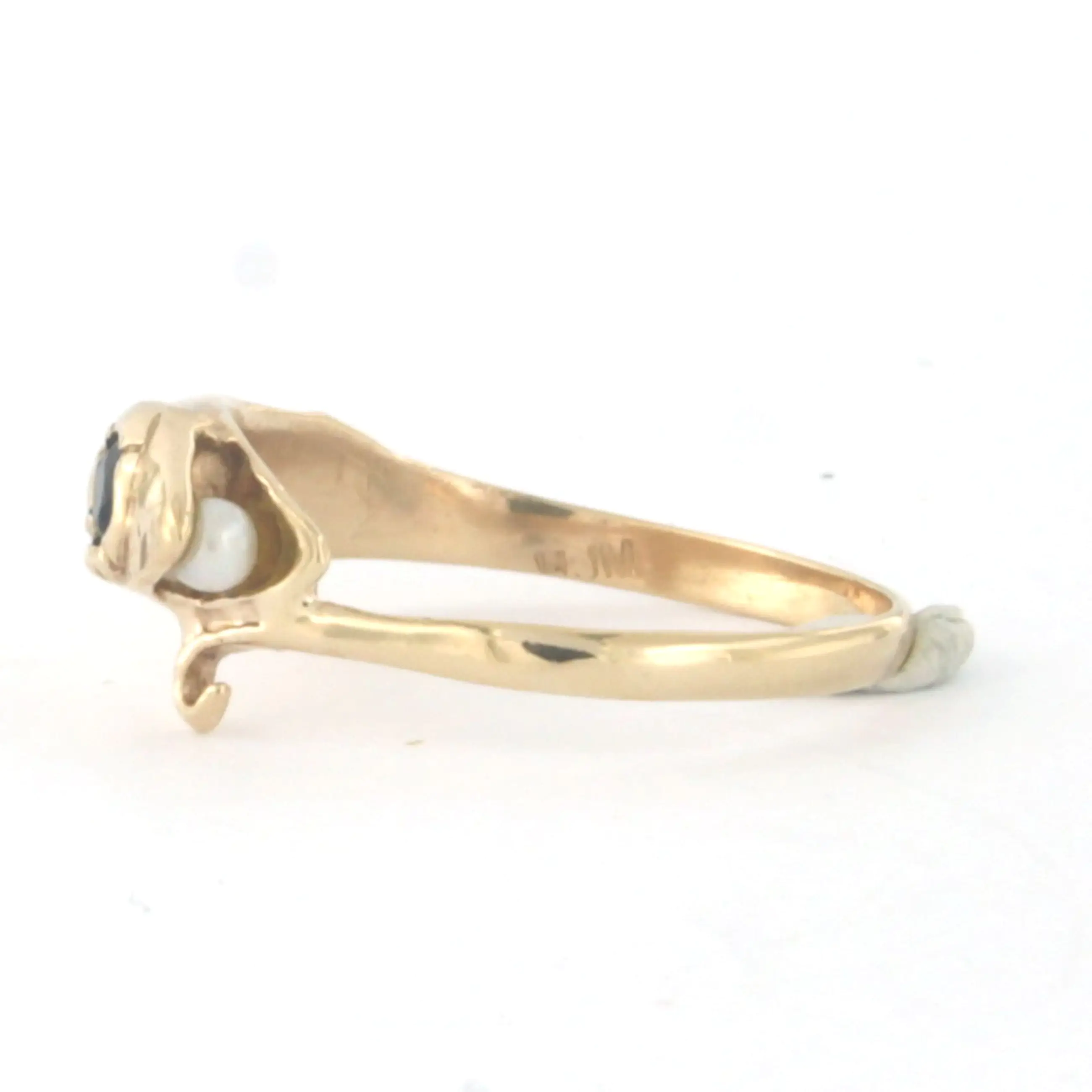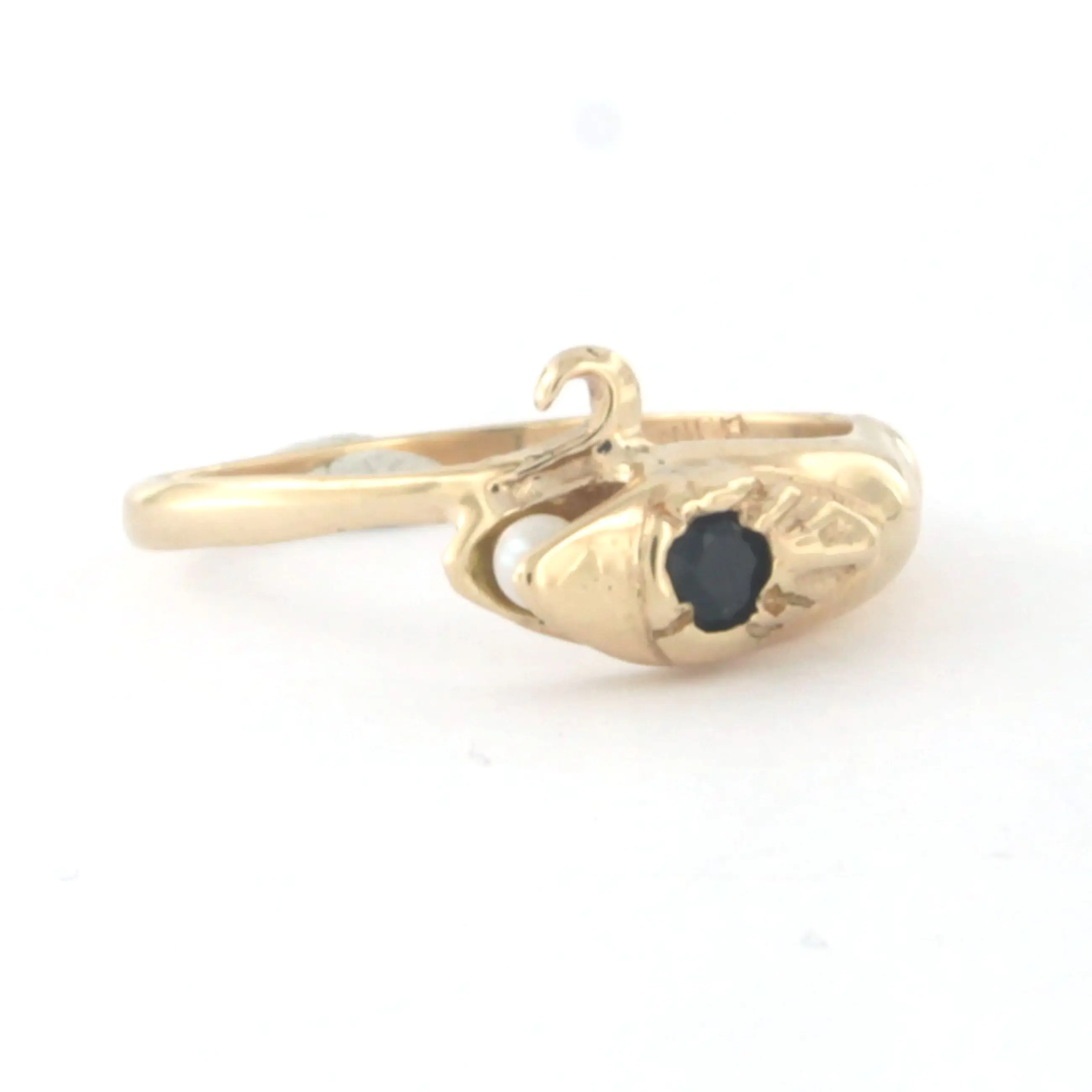 Gele BWG (333) ring bezet met parel en saffier - ringmaat 16.75 (52)