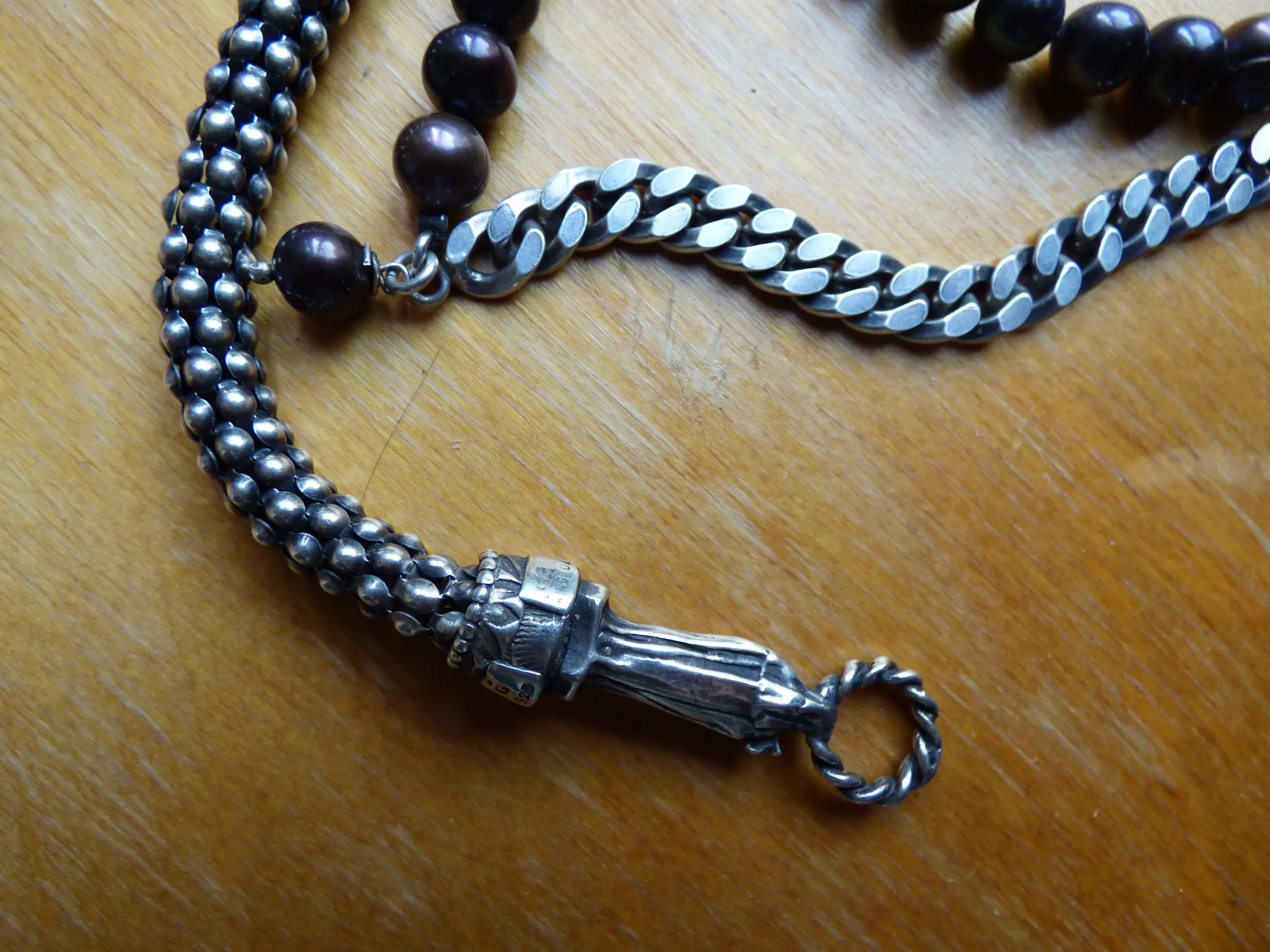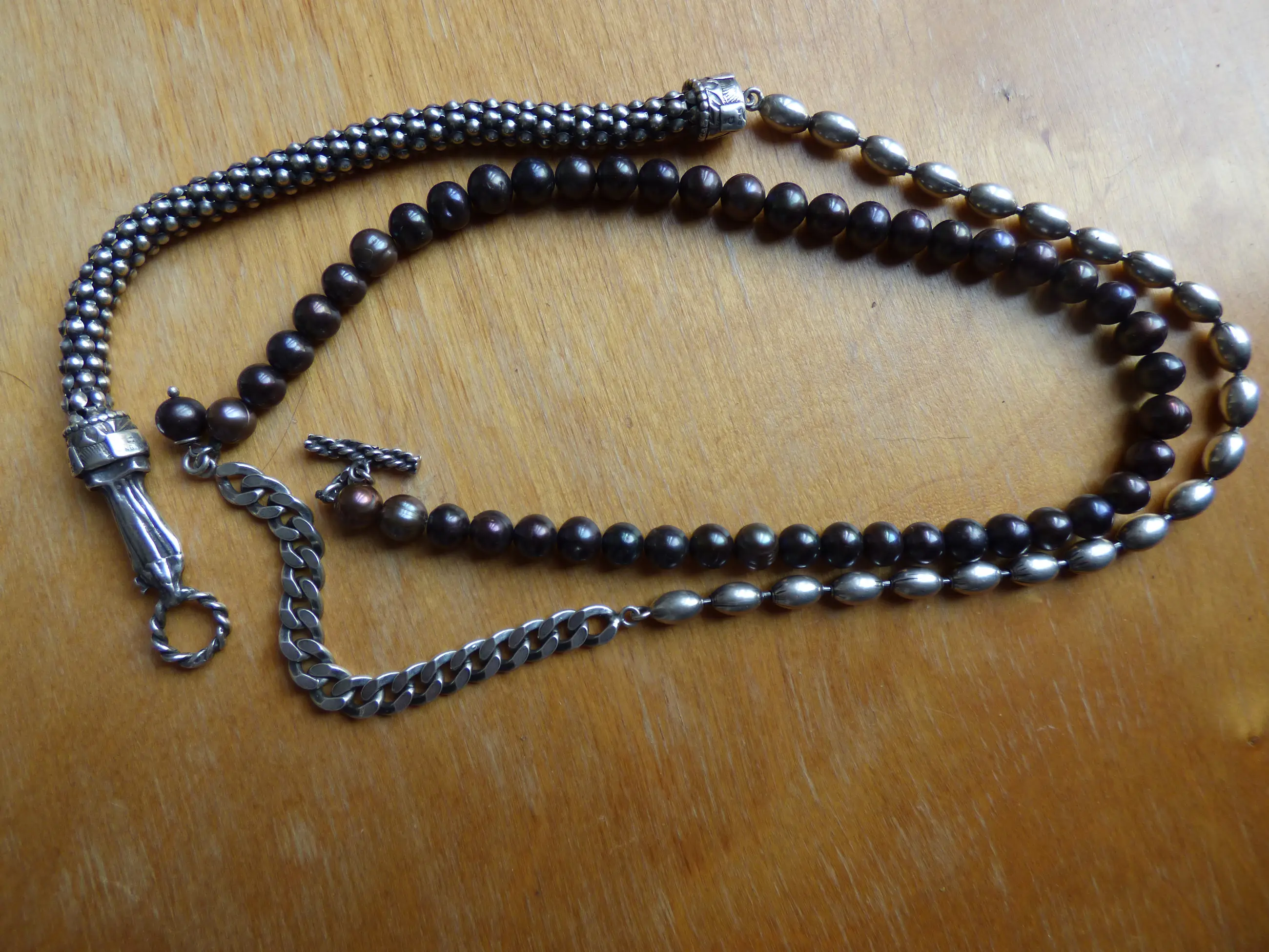 Prachtige lange ketting van sterling zilver en onyx, kan kort en lang gedragen worden