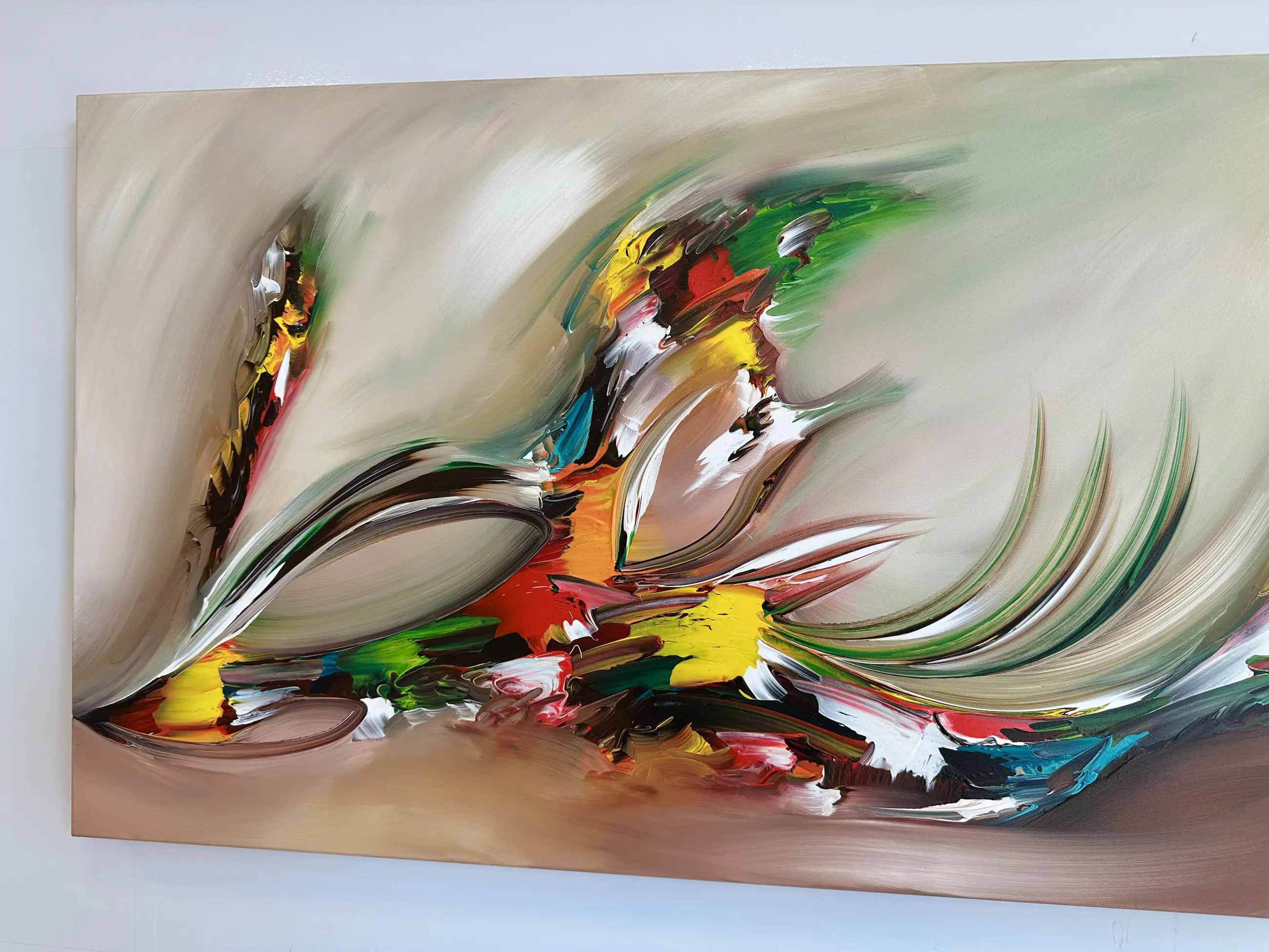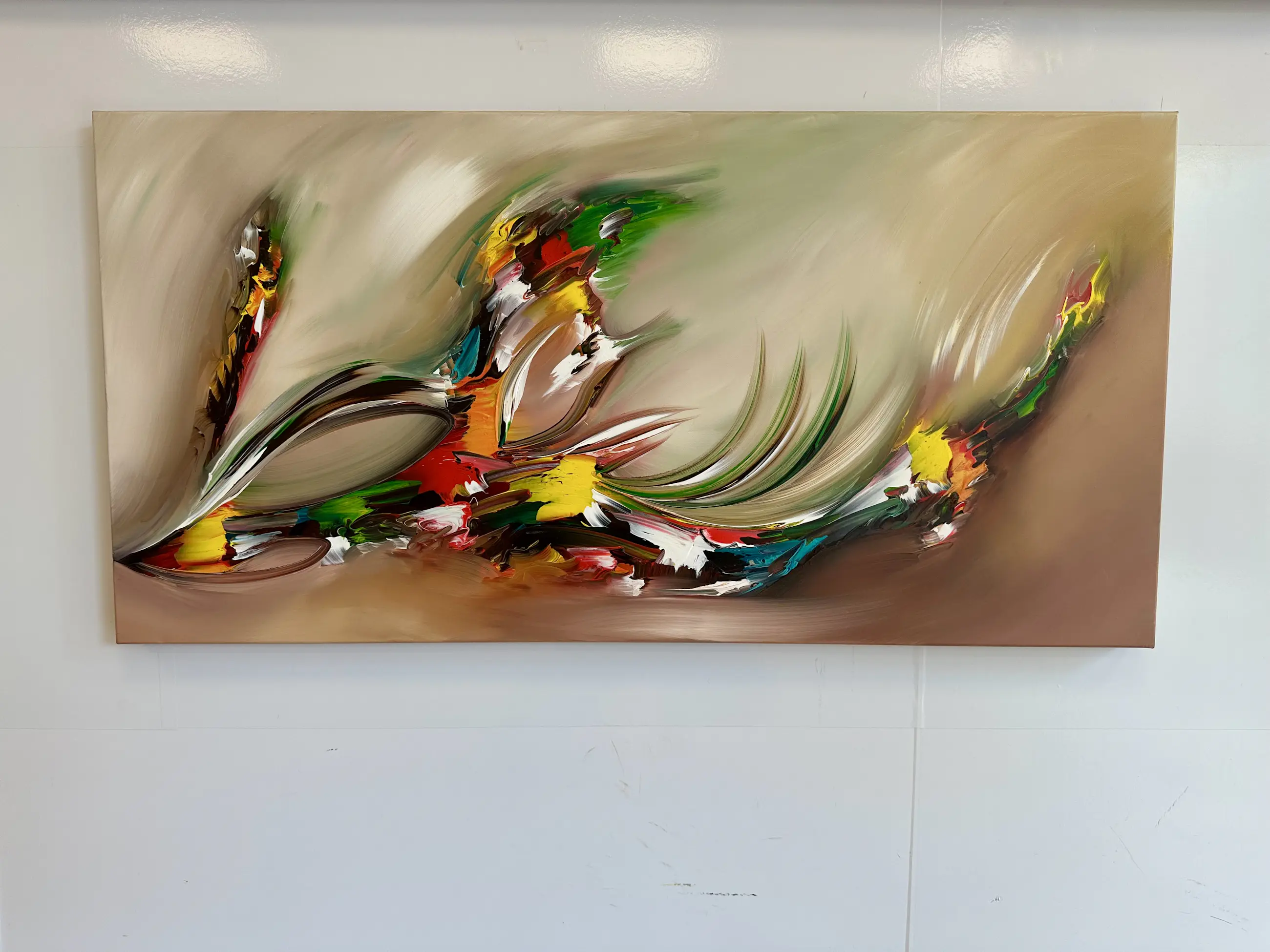 Origineel schilderij van kunstenaar Gena. Wordt geleverd met een certificaat van echtheid. Acrylverf Amsterdam op doek.Zijkanten zijn mee geschilderd, zodat geen lijst nodig direct op te hangen.Het schilderij is voorzien van een vernislaag, dus extra beschermd tegen stof, vuil en vochtinvloed! Formaat: 60x120cm 3D