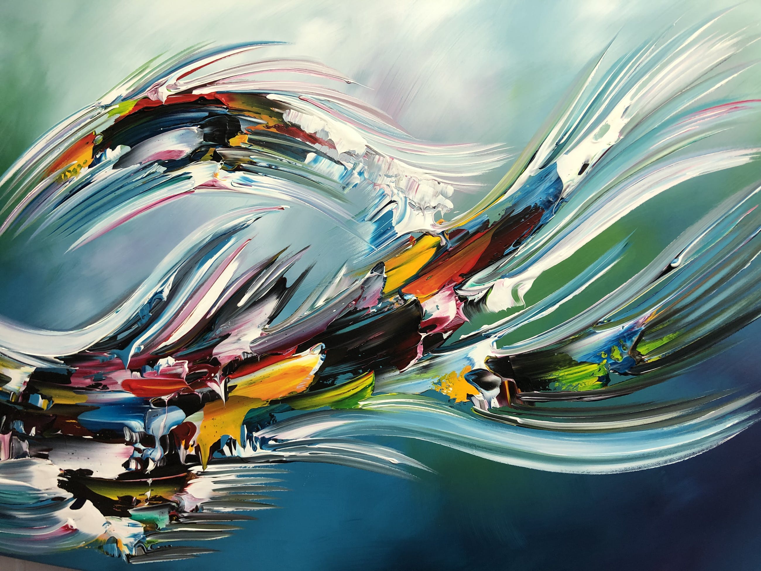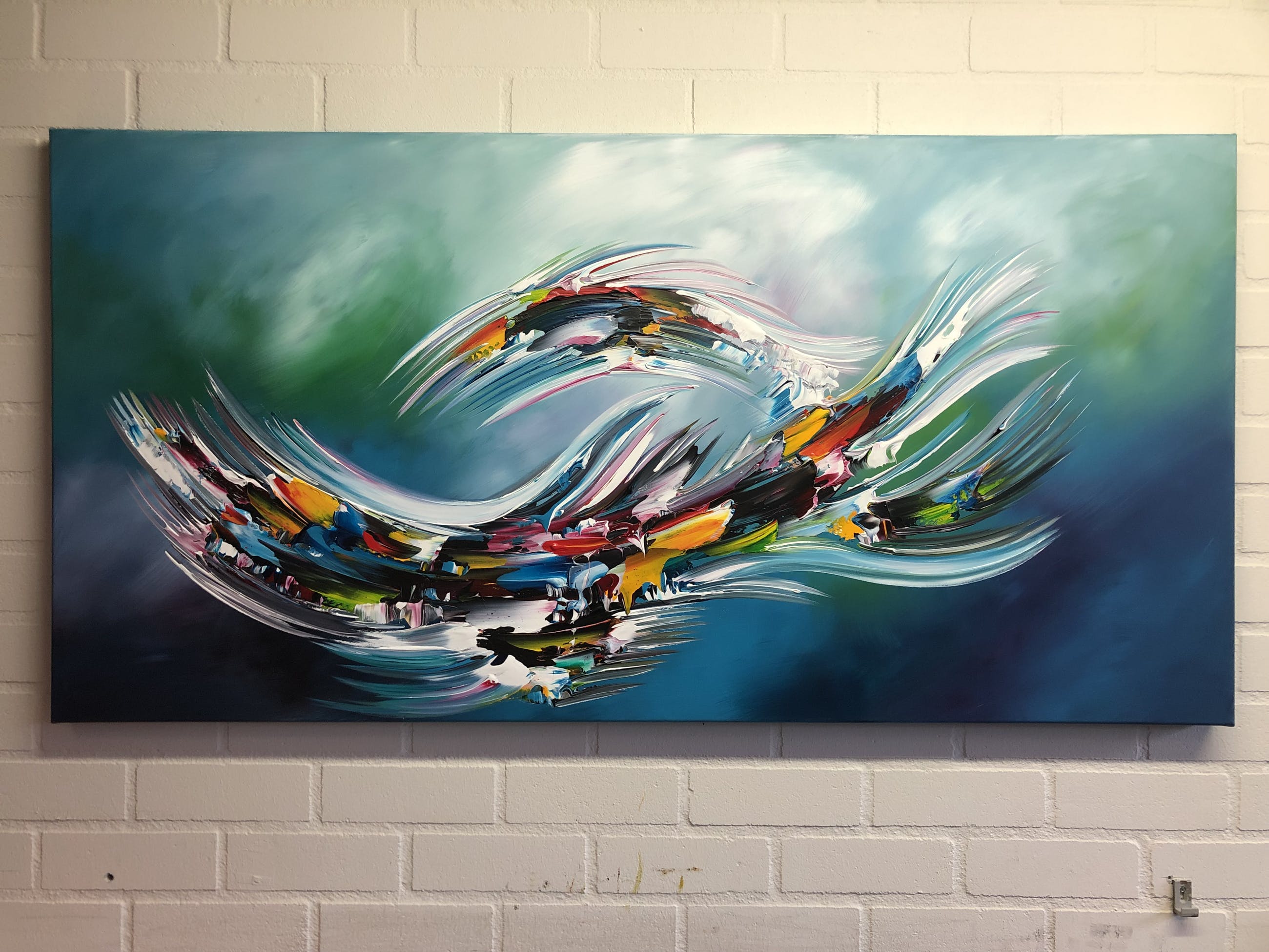 Origineel schilderij van kunstenaar Gena. Wordt geleverd met een certificaat van echtheid. Acrylverf Amsterdam op doek.Zijkanten zijn mee geschilderd, zodat geen lijst nodig -direct op te hangen.Het schilderij is voorzien van een vernislaag, dus extra beschermd tegen stof, vuil en vochtinvloed! Formaat 70x140cm3D