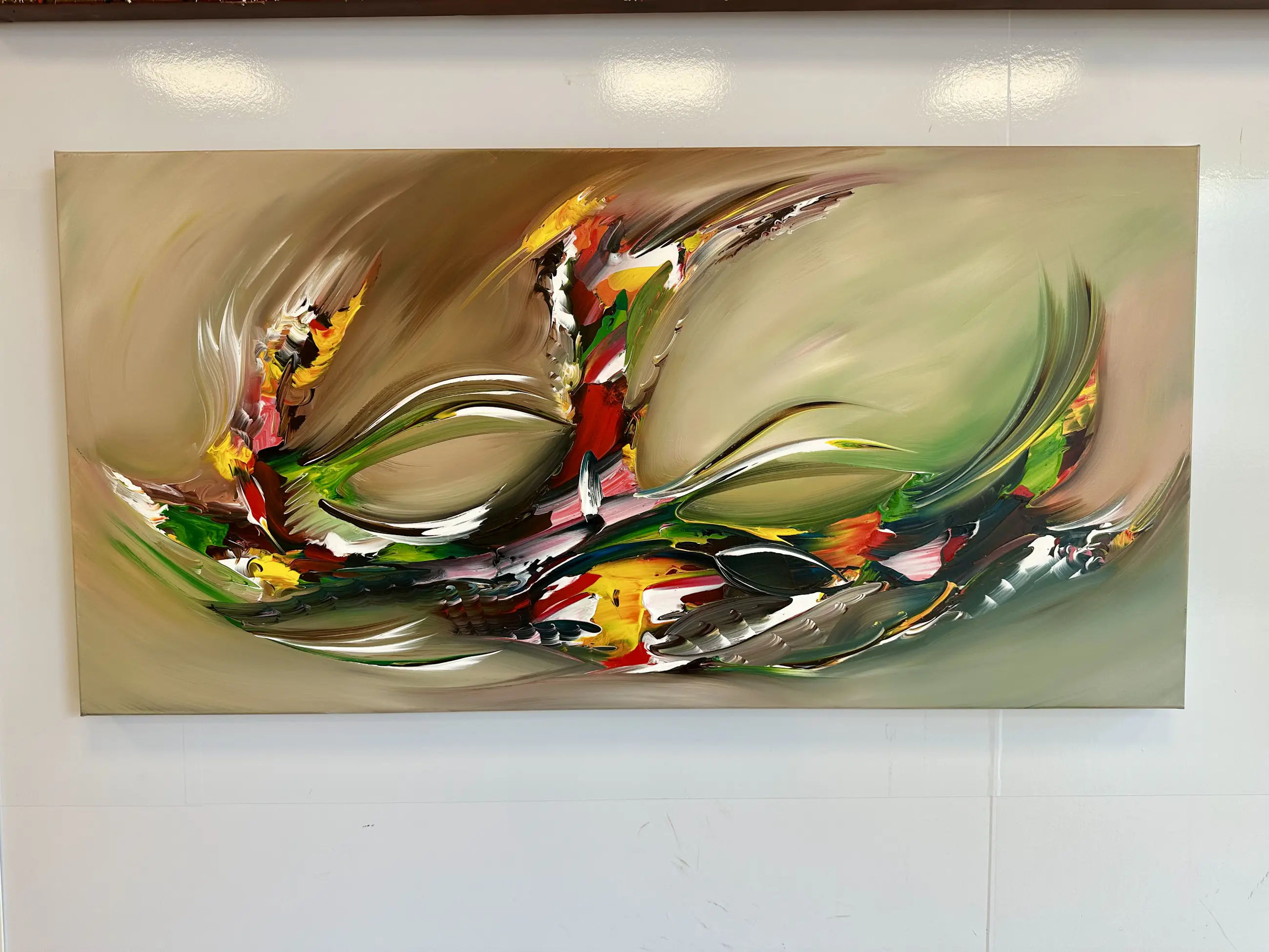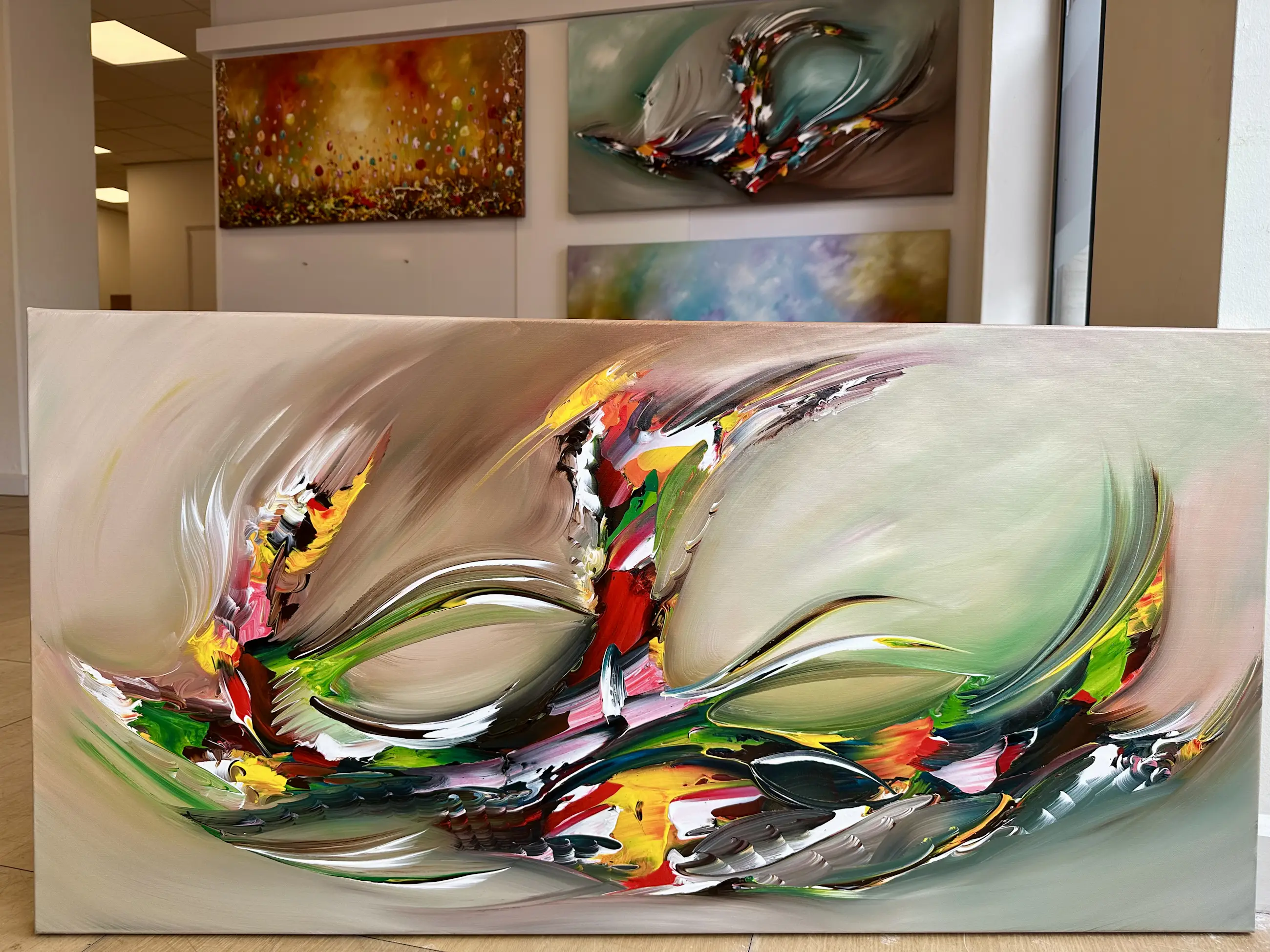 Origineel schilderij van kunstenaar Gena. Wordt geleverd met een certificaat van echtheid. Acrylverf Amsterdam op doek.Zijkanten zijn mee geschilderd, zodat geen lijst nodig direct op te hangen.Het schilderij is voorzien van een vernislaag, dus extra beschermd tegen stof, vuil en vochtinvloed! Formaat: 60x120cm 3D