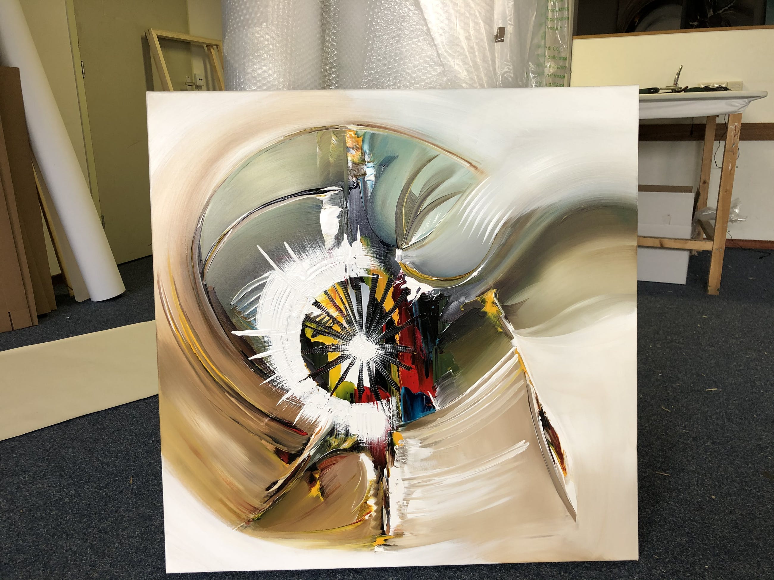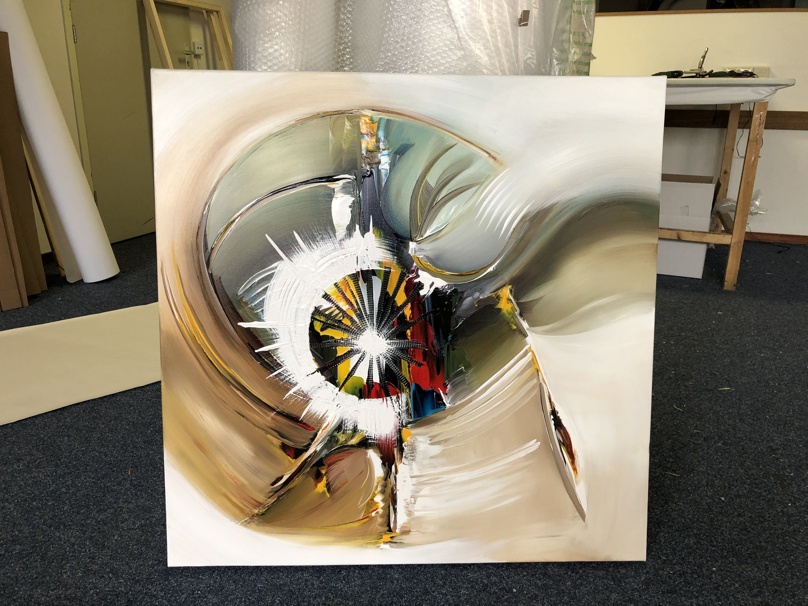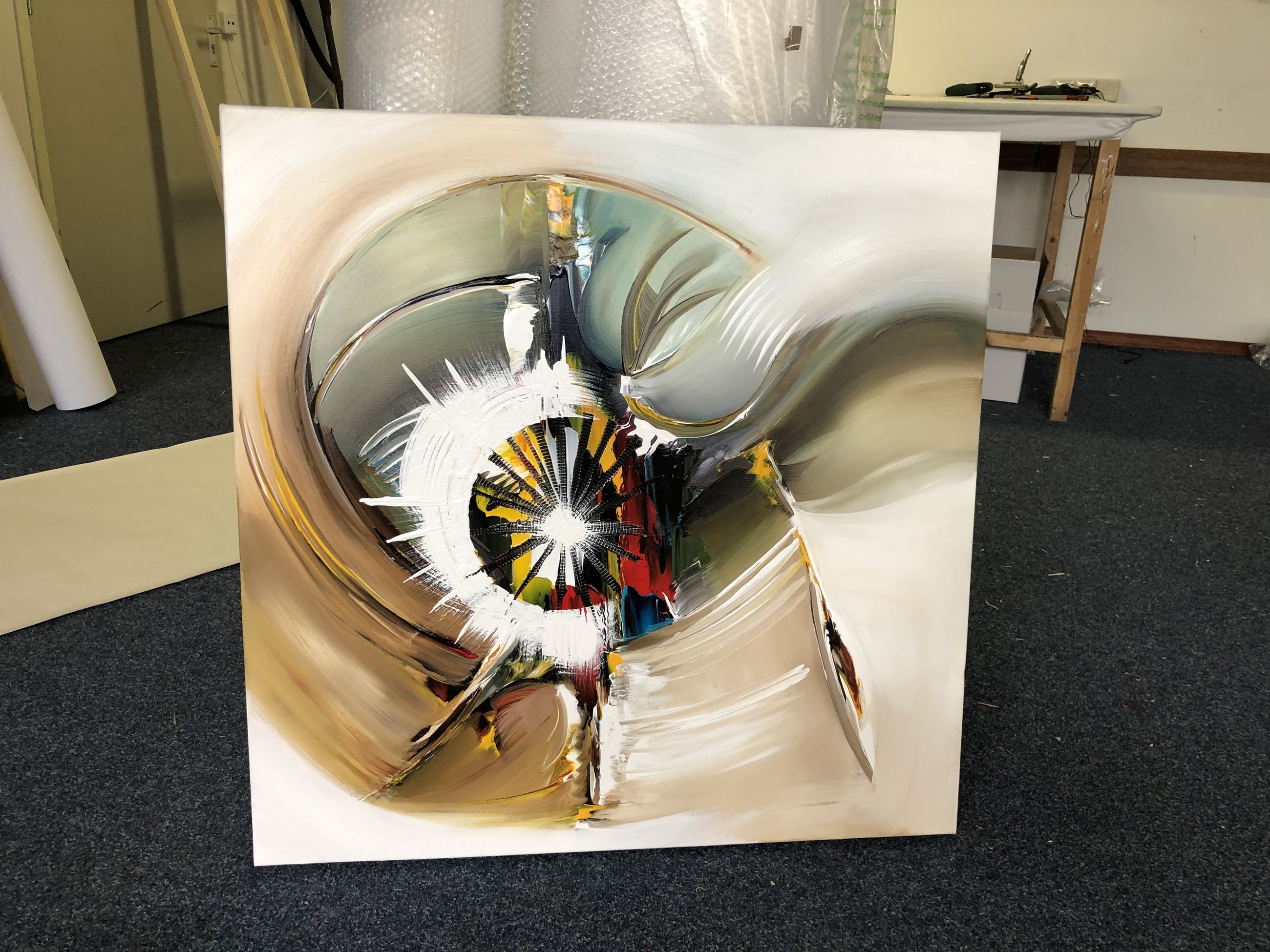 Origineel unique schilderij van kunstenaar Gena. Wordt geleverd met een certificaat van echtheid. Acrylverf Amsterdam op doek.Zijkanten zijn mee geschilderd, zodat geen lijst nodig direct op te hangen.Het schilderij is voorzien van een vernislaag, dus extra beschermd tegen stof, vuil en vochtinvloed! Formaat : 90x90cm3D
