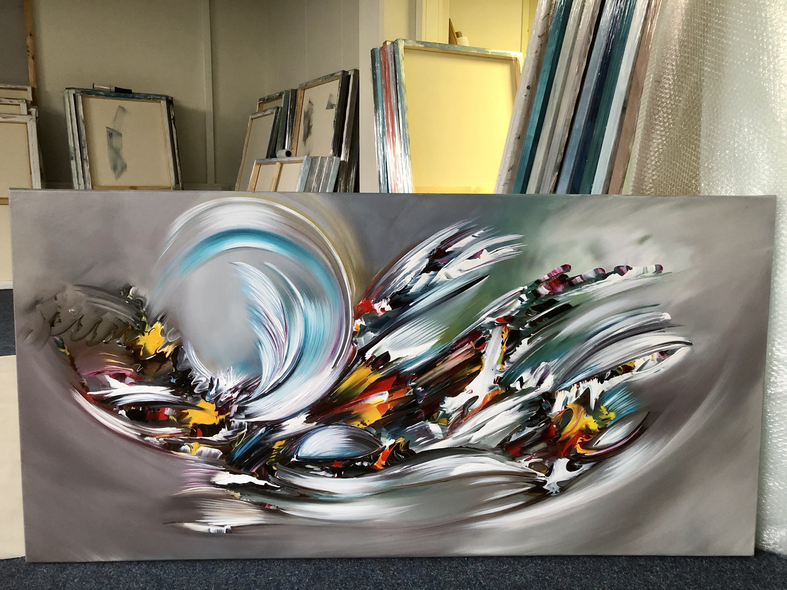 Origineel unique schilderij van kunstenaar Gena. Wordt geleverd met een certificaat van echtheid. Acrylverf Amsterdam op doek.Zijkanten zijn mee geschilderd, zodat geen lijst nodig direct op te hangen.Het schilderij is voorzien van een vernislaag, dus extra beschermd tegen stof, vuil en vochtinvloed! Formaat : 70x140cm3D