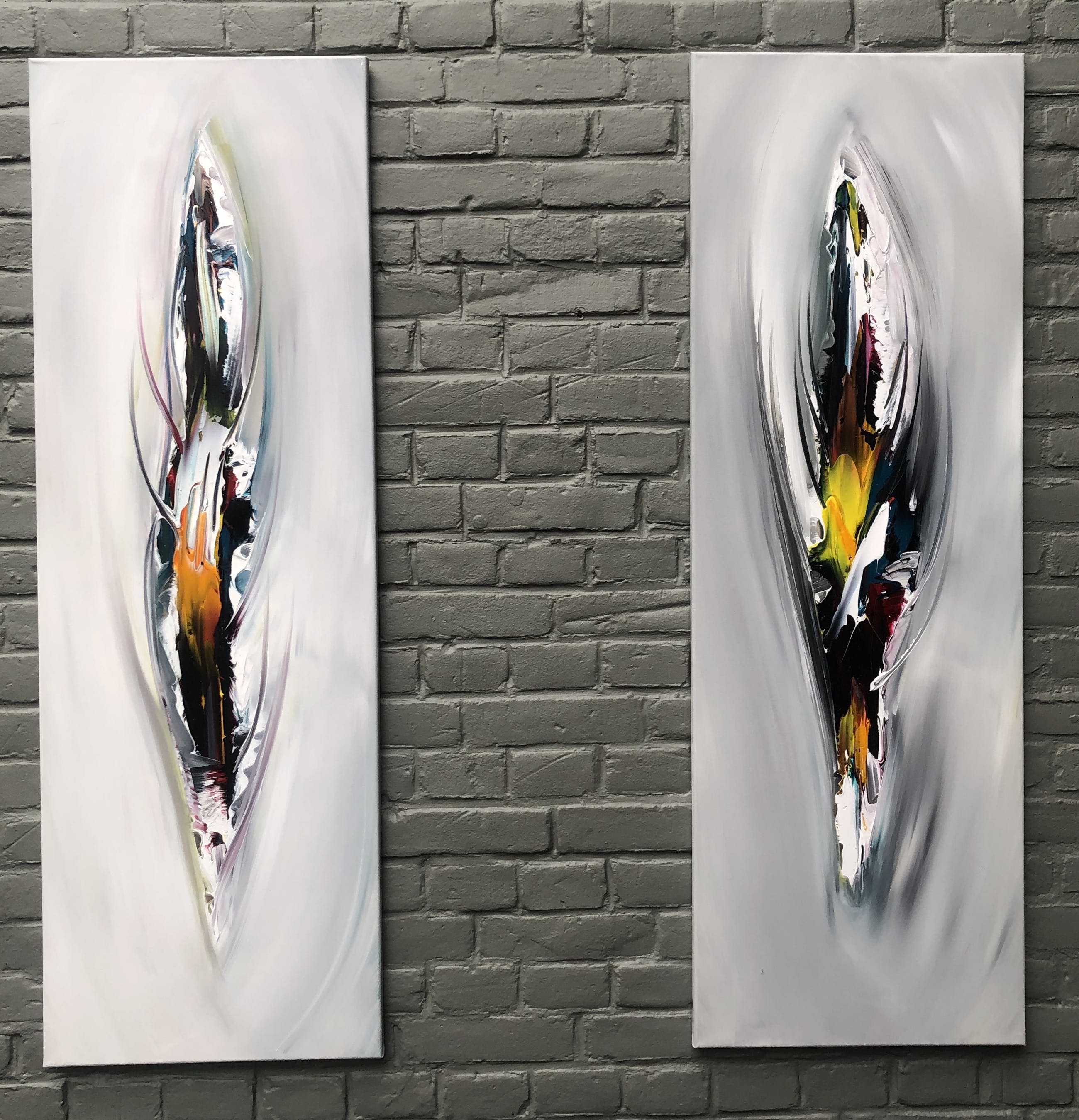 Origineel werk van kunstenaar Gena. Wordt geleverd met een certificaat van echtheid. Acrylverf op doek.Zijkanten zijn mee geschilderd, zodat geen lijst nodig - direct op te hangen.Het schilderij is voorzien van een vernislaag, dus extra beschermd tegen stof, vuil en vochtinvloed! Formaat : 40 x 100 cm x 2 st.