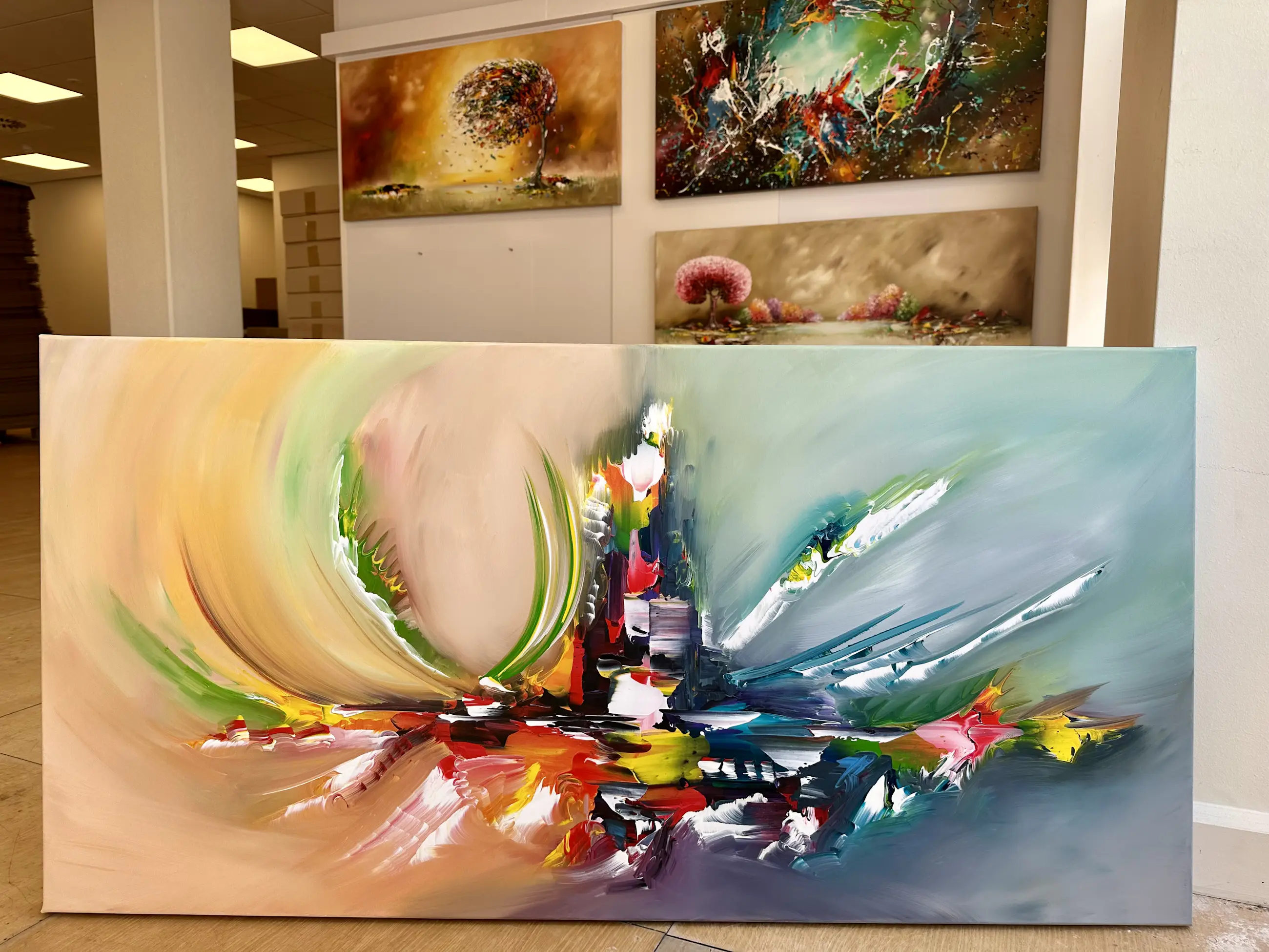 Origineel schilderij van kunstenaar Gena. Wordt geleverd met een certificaat van echtheid. Acrylverf Amsterdam op doek.Zijkanten zijn mee geschilderd, zodat geen lijst nodig direct op te hangen.Het schilderij is voorzien van een vernislaag, dus extra beschermd tegen stof, vuil en vochtinvloed! Formaat: 60x120cm 3D