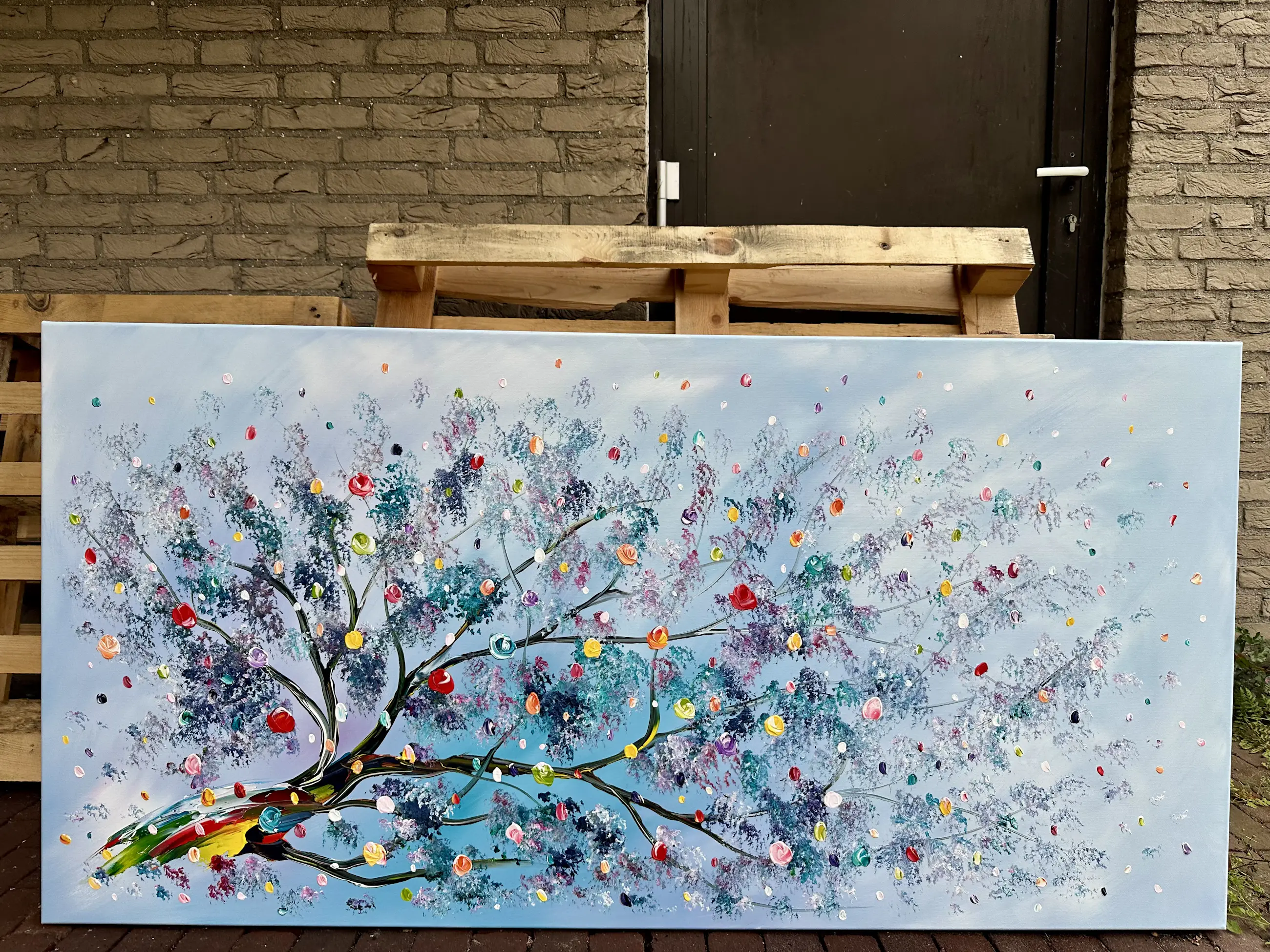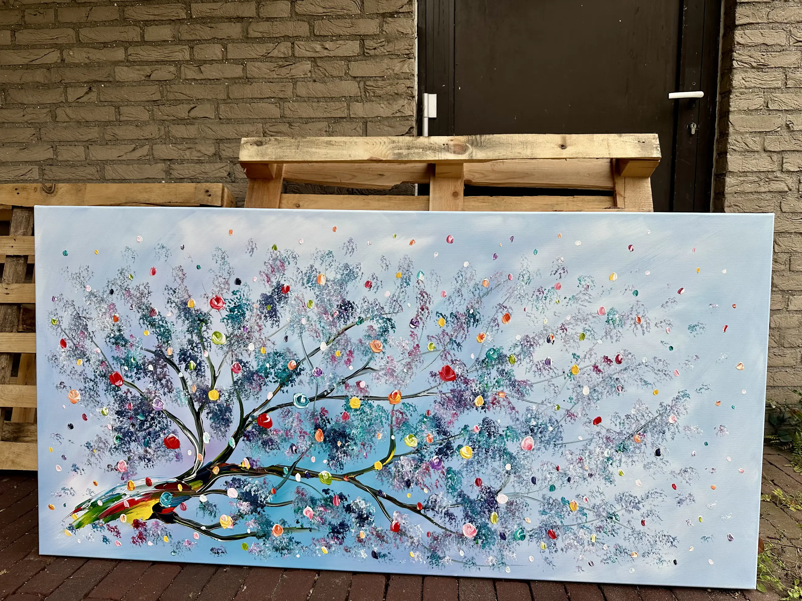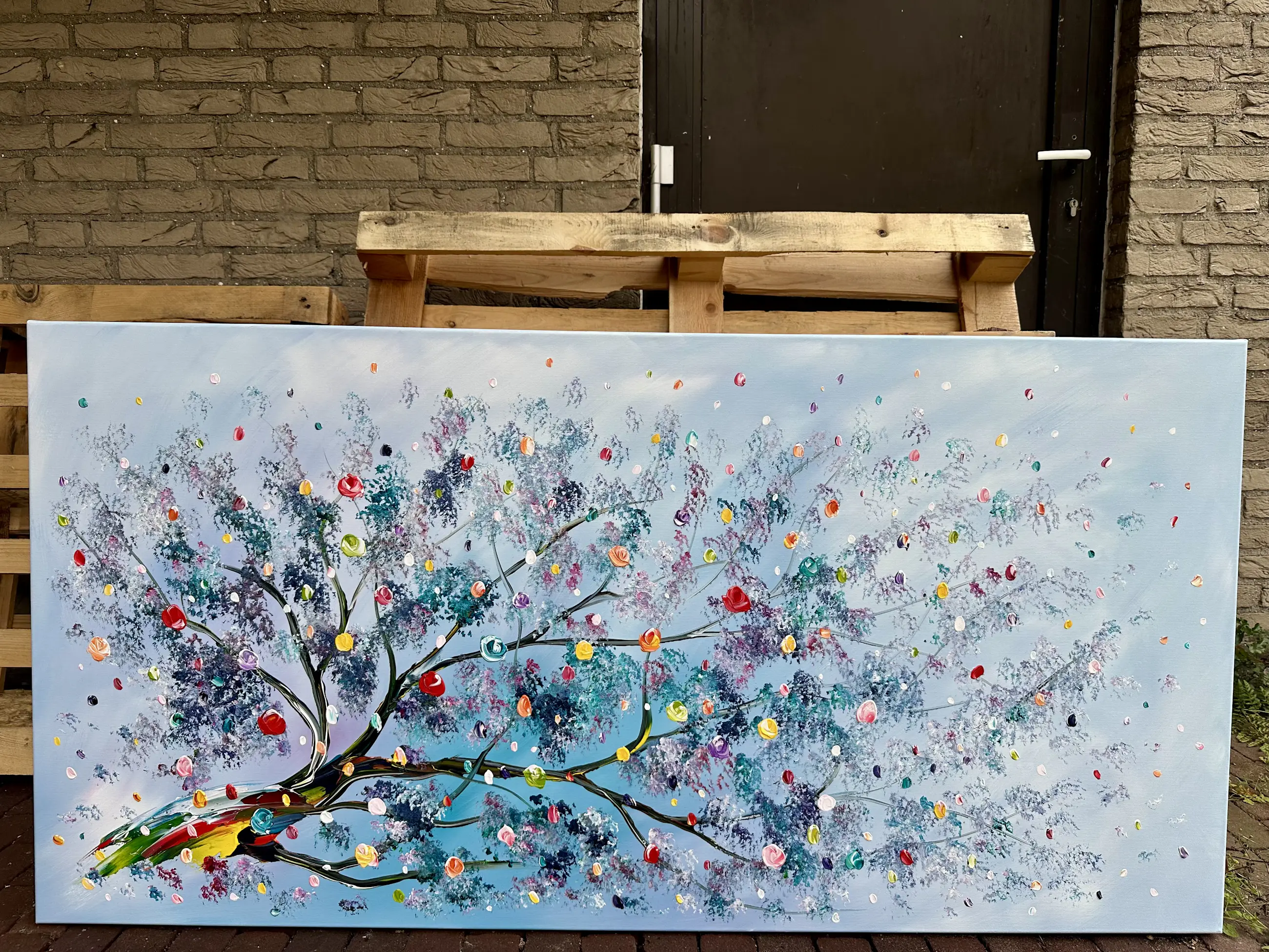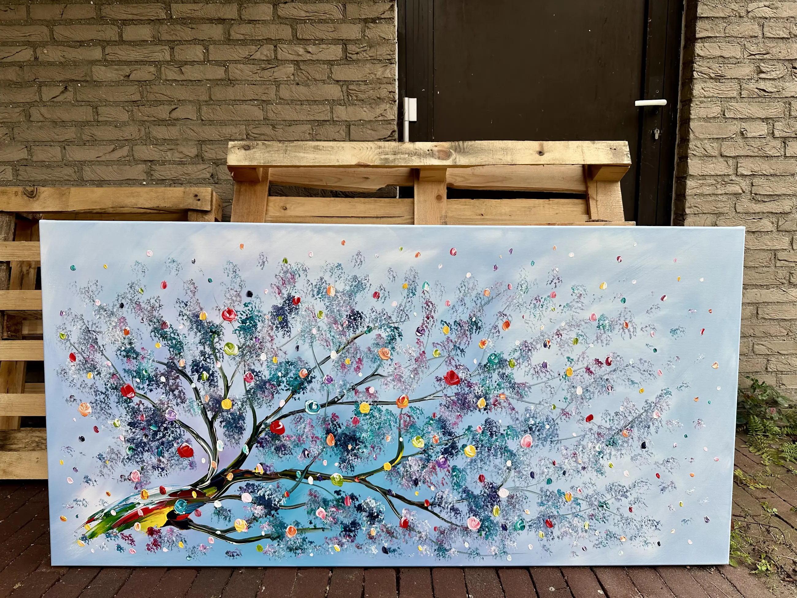 Origineel schilderij van kunstenaar Gena. Wordt geleverd met een certificaat van echtheid. Acrylverf Amsterdam op doek.Zijkanten zijn mee geschilderd, zodat geen lijst nodig direct op te hangen.Het schilderij is voorzien van een vernislaag, dus extra beschermd tegen stof, vuil en vochtinvloed! Formaat: 70x140cm 3D